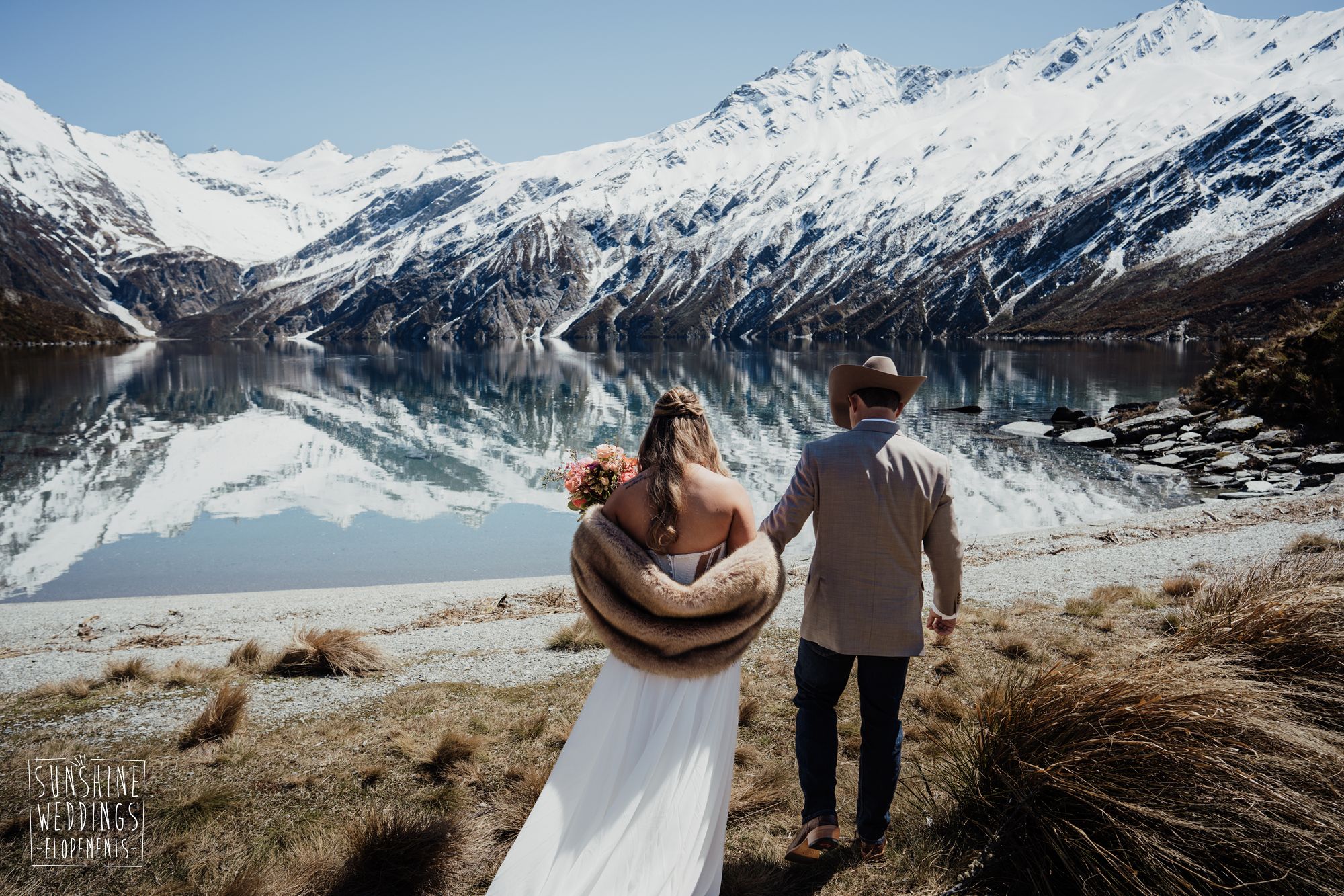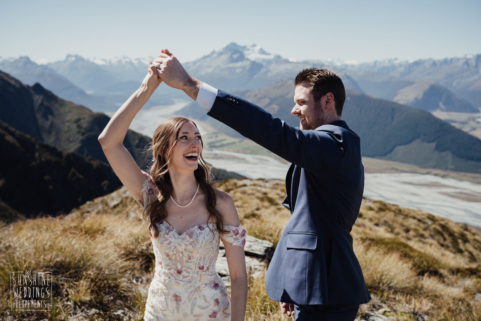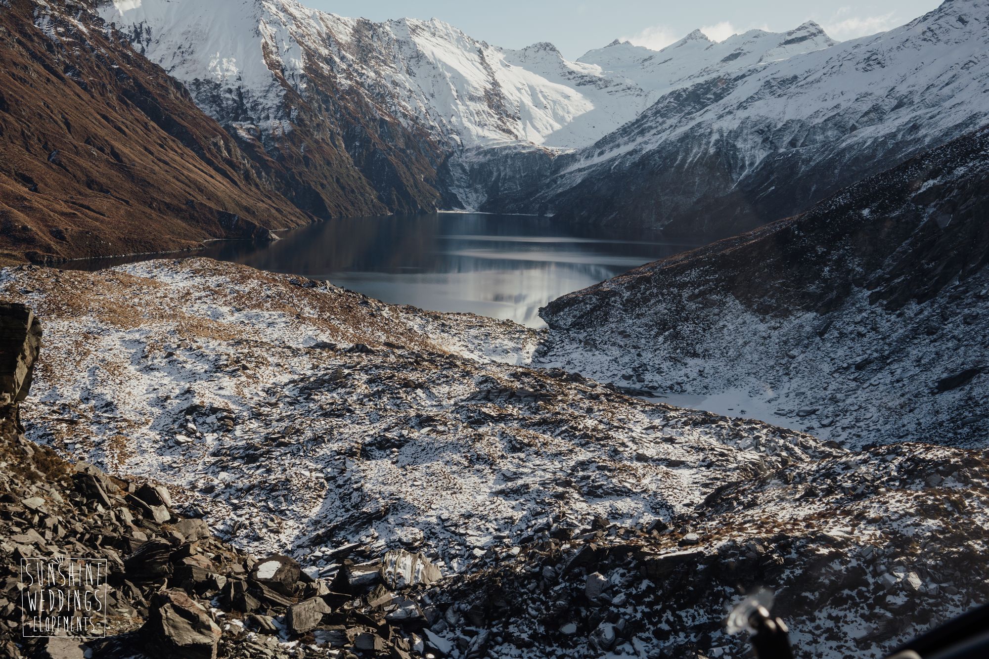 The Alps Adventure is our premium package for ultimate explorers and lovers of adventure looking for something entirely unique and individual! Put your explorers hat on and fly around the Southern Alps on an incredible sight-seeing helicopter flight and three landings. Find undiscovered peaks, tiny alpine tarns or pristine native bush and land somewhere completely new and unexpected for your elopement. You’ll landing in three separate locations and have plenty of time to wander around and explore at each location.