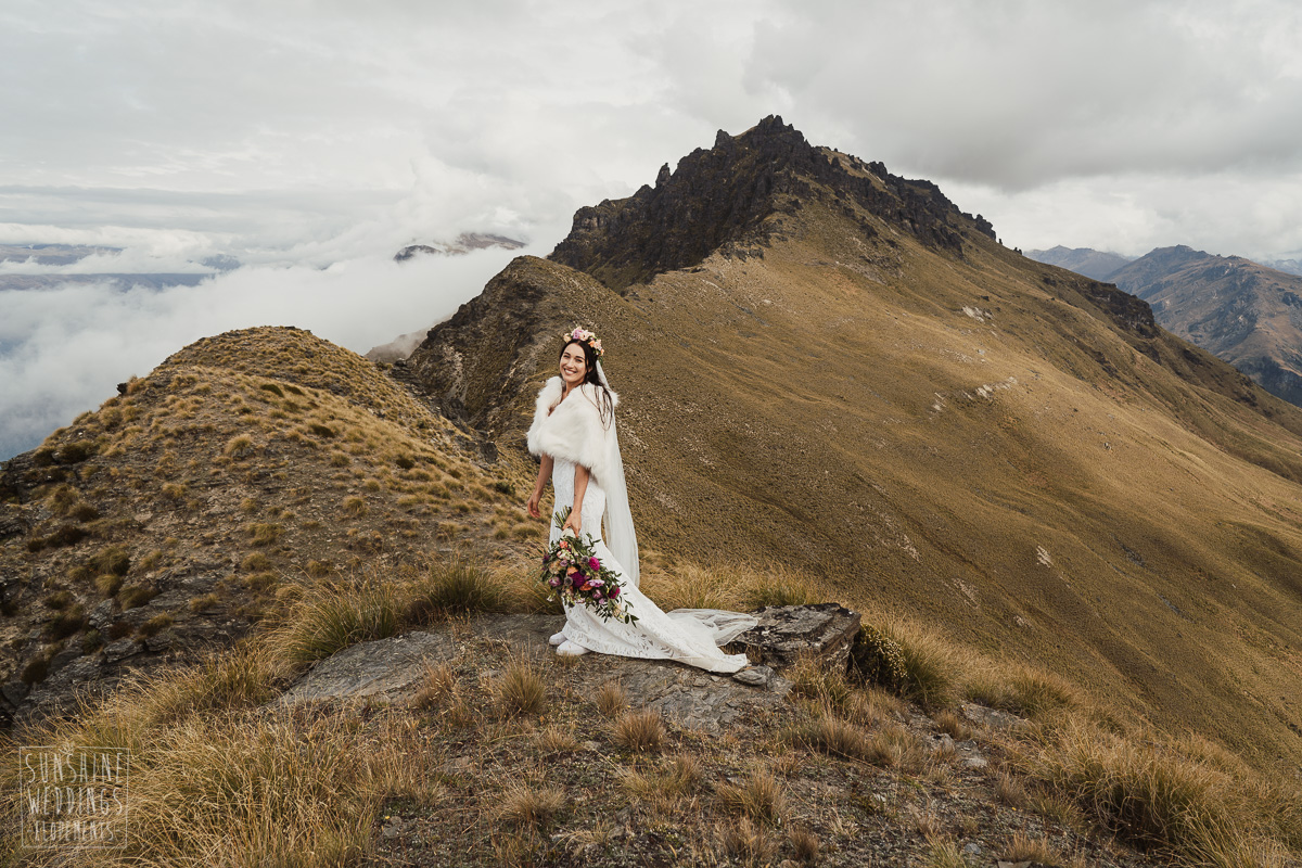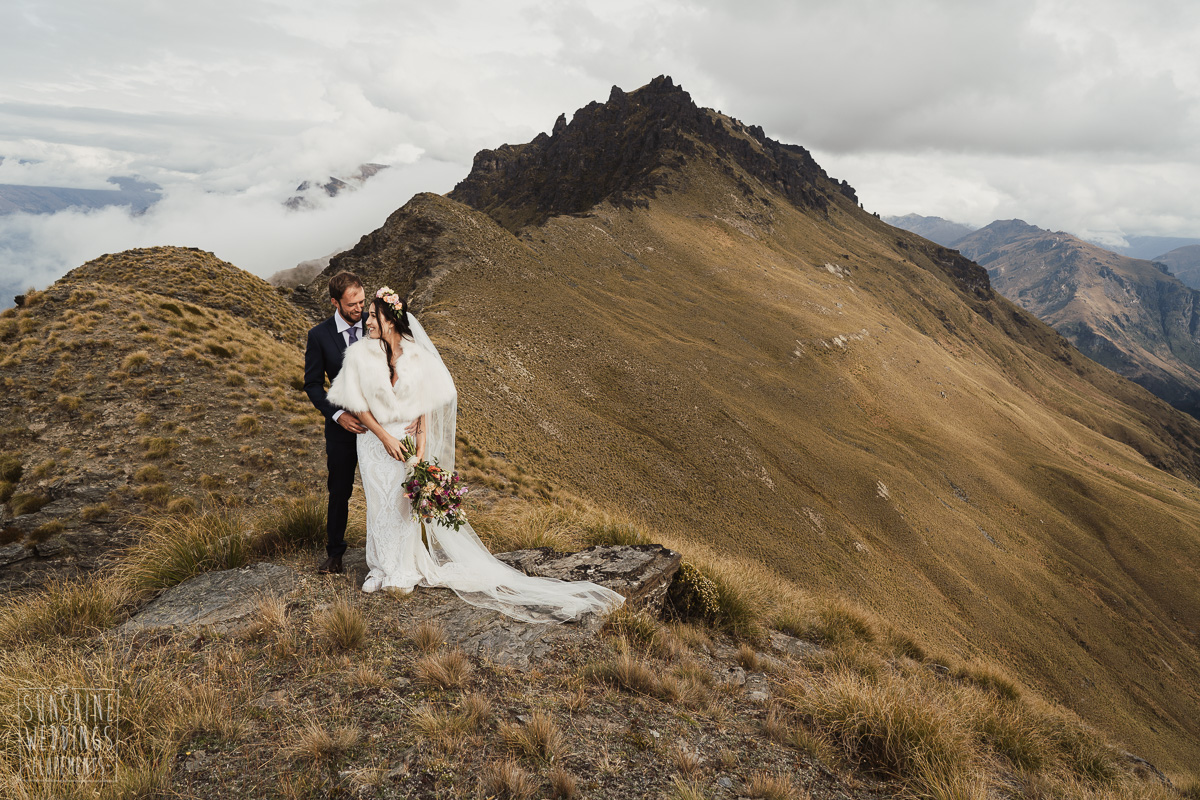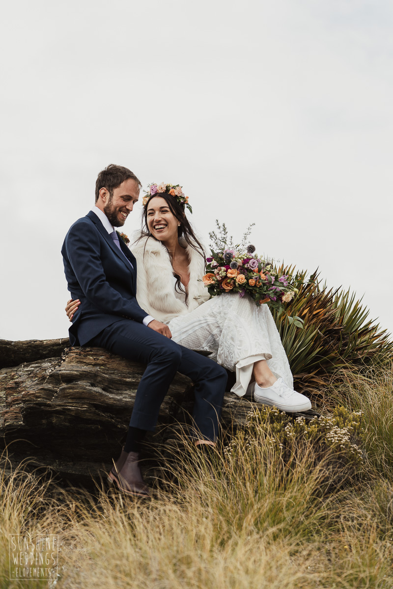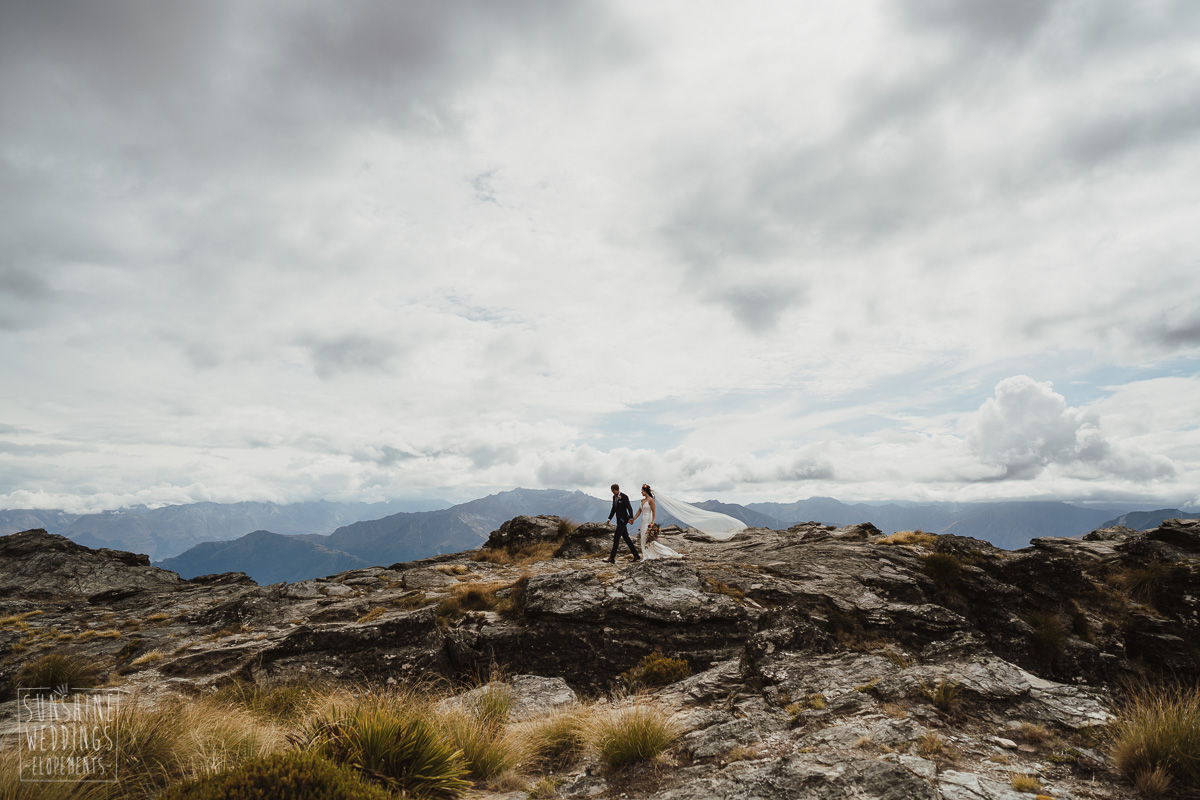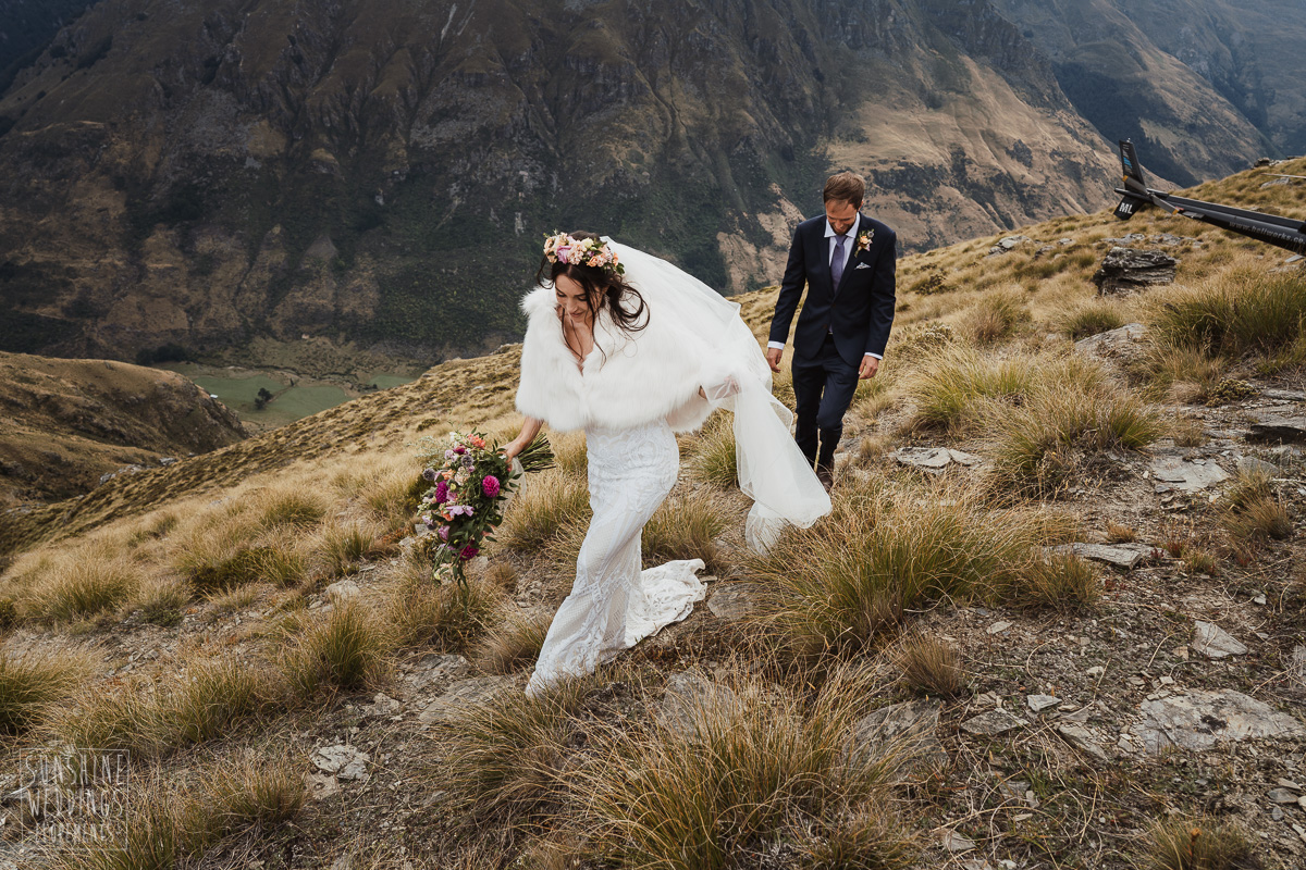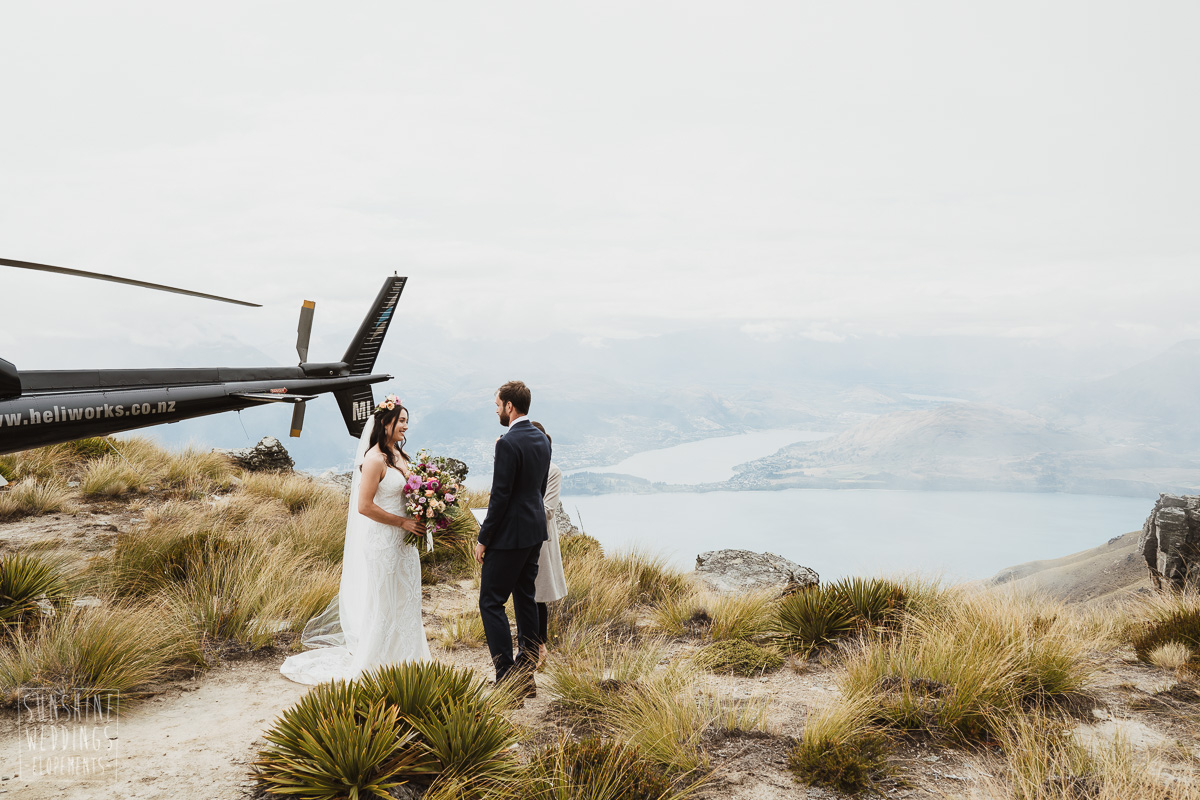 Jade and Joseph could not stop smiling all day. And who could blame them! Their ceremony was at The Ledge on Cecil Peak, followed by a second landing at Bayonet Peak. Jade’s beautiful flowers and flower crown suited the setting perfectly and we can’t go past a good veil shot or two.