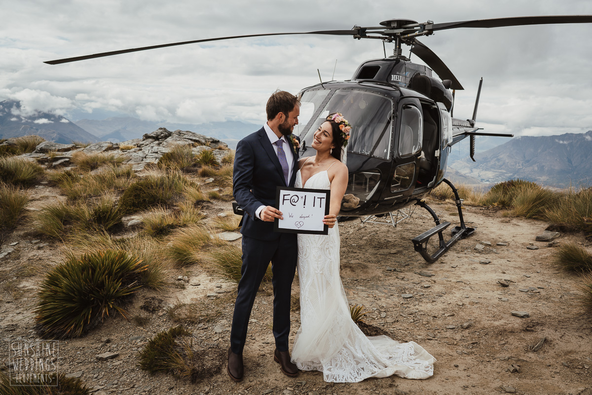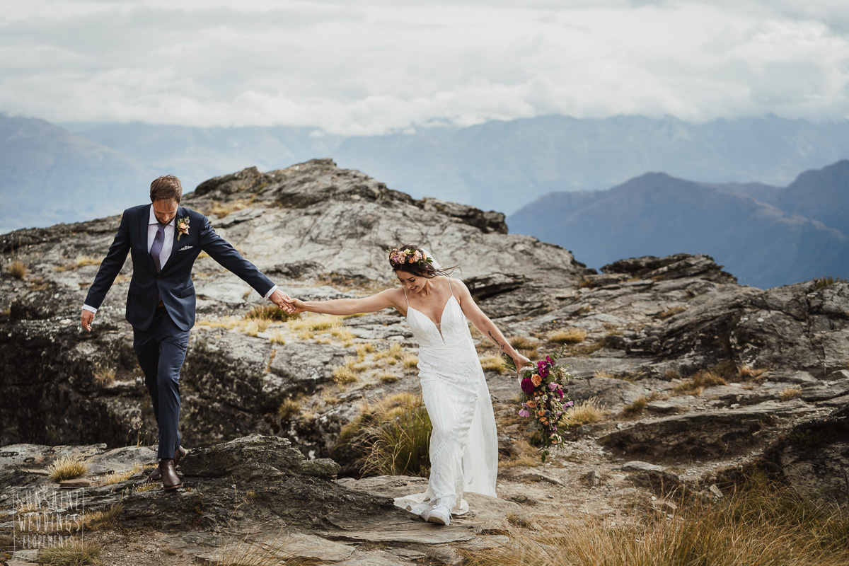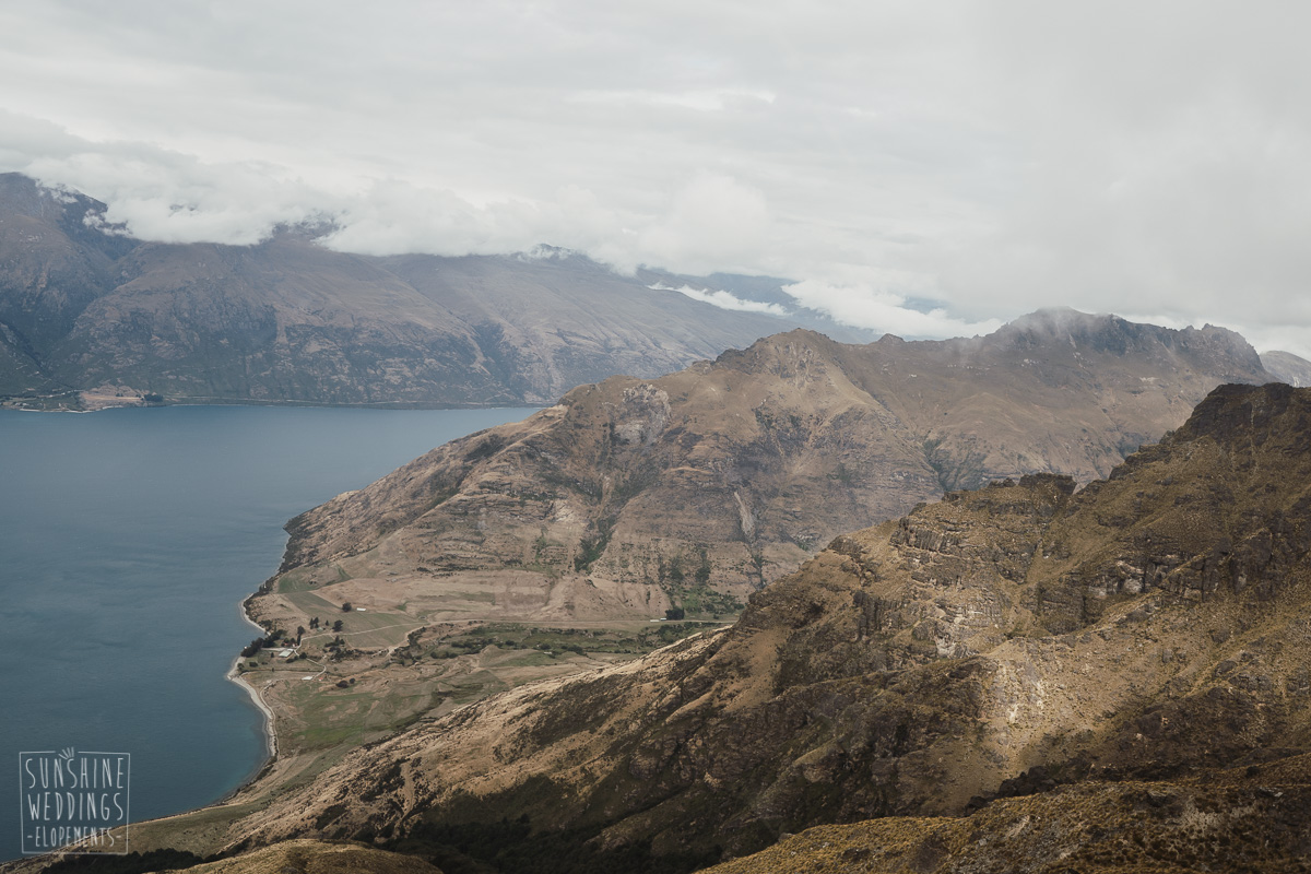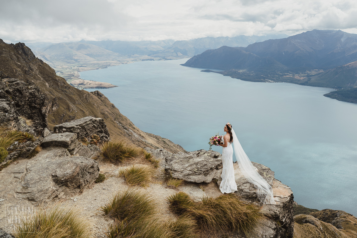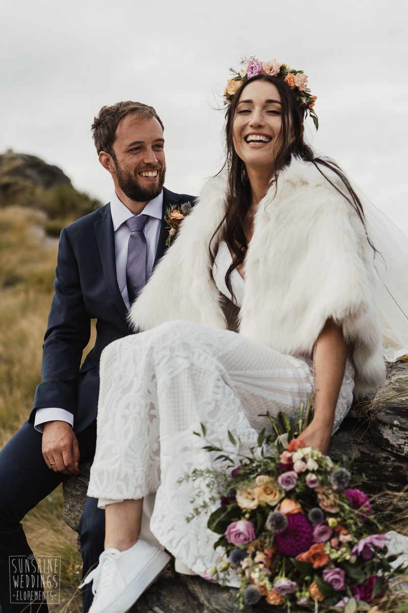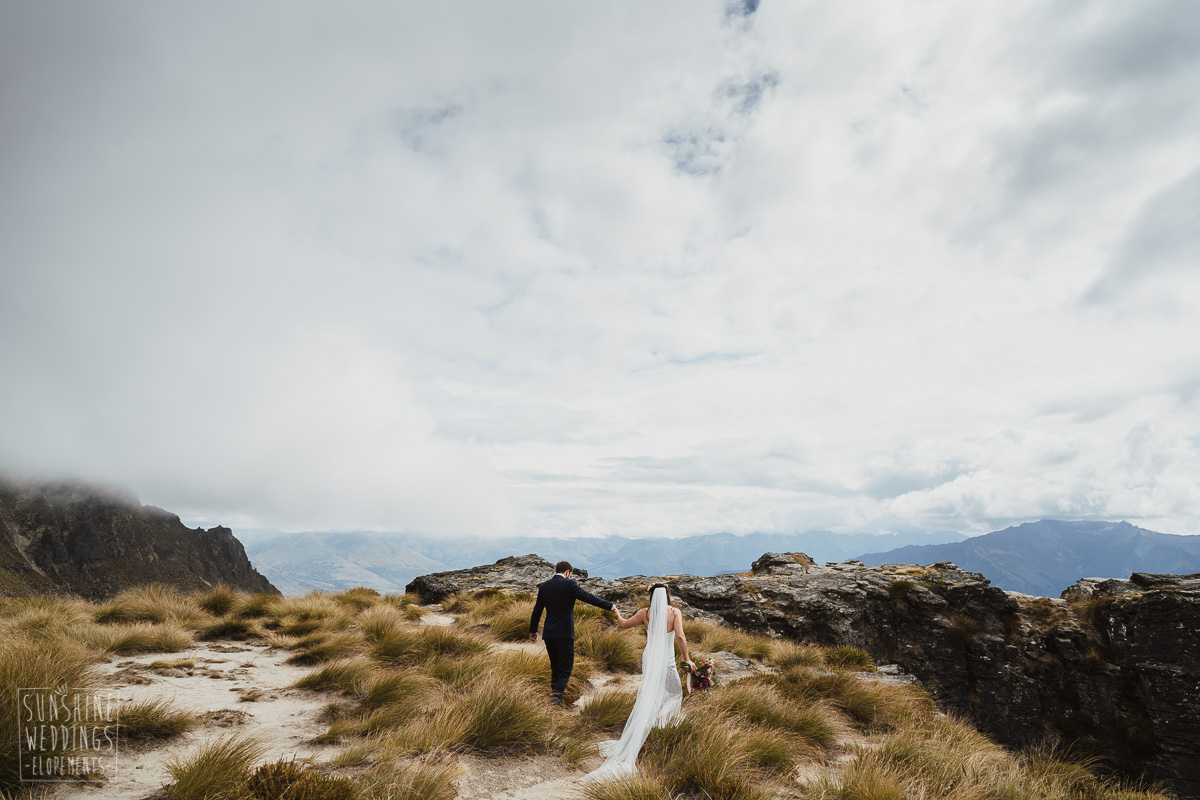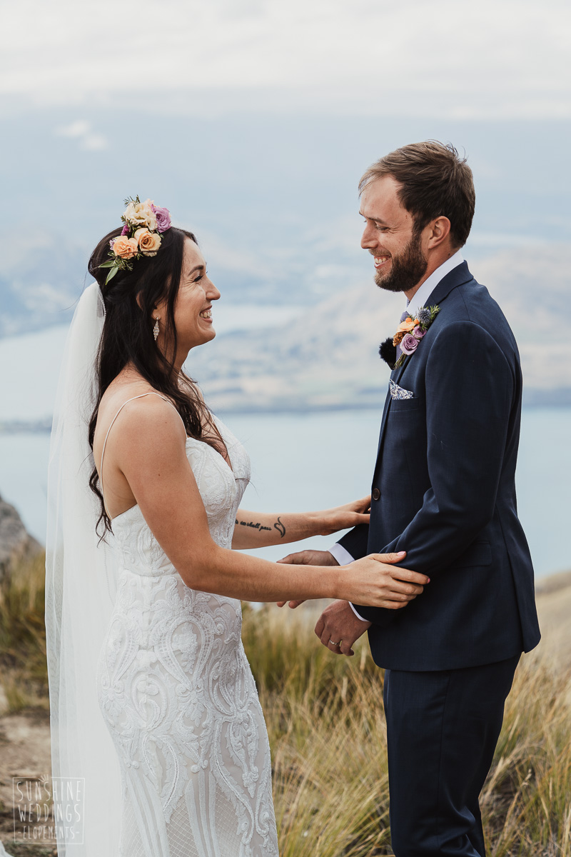 Jade and Joseph could not stop smiling all day. And who could blame them! Their ceremony was at The Ledge on Cecil Peak, followed by a second landing at Bayonet Peak. Jade’s beautiful flowers and flower crown suited the setting perfectly and we can’t go past a good veil shot or two.