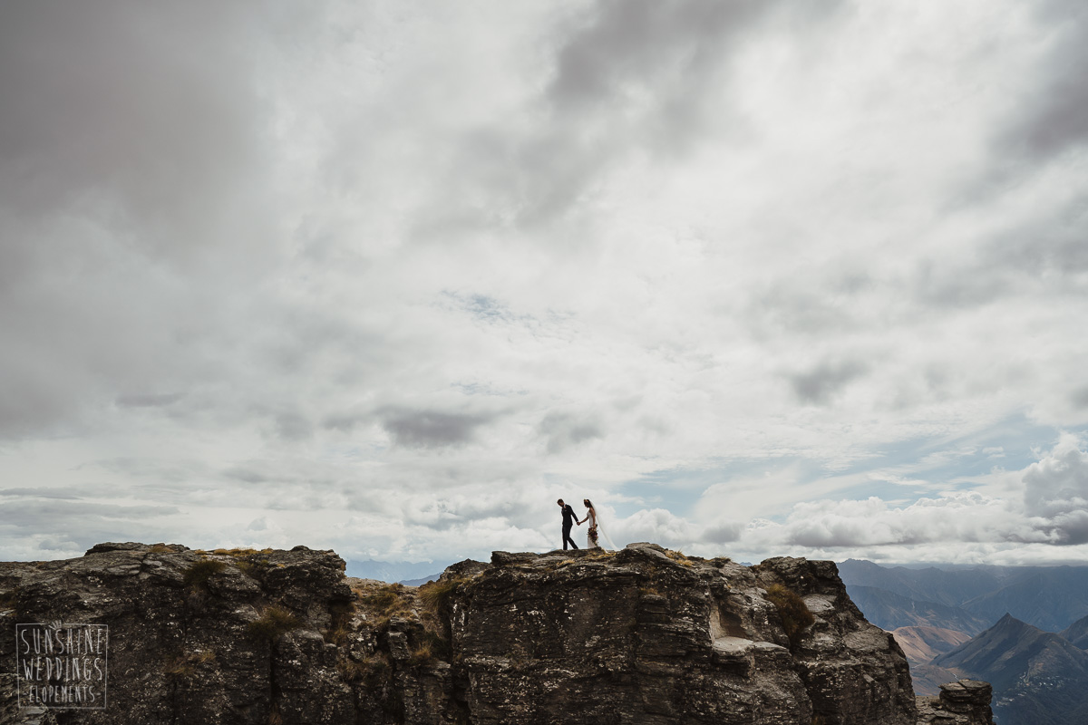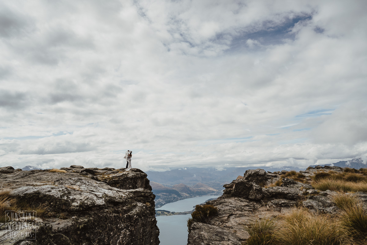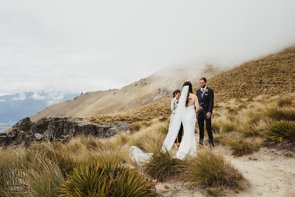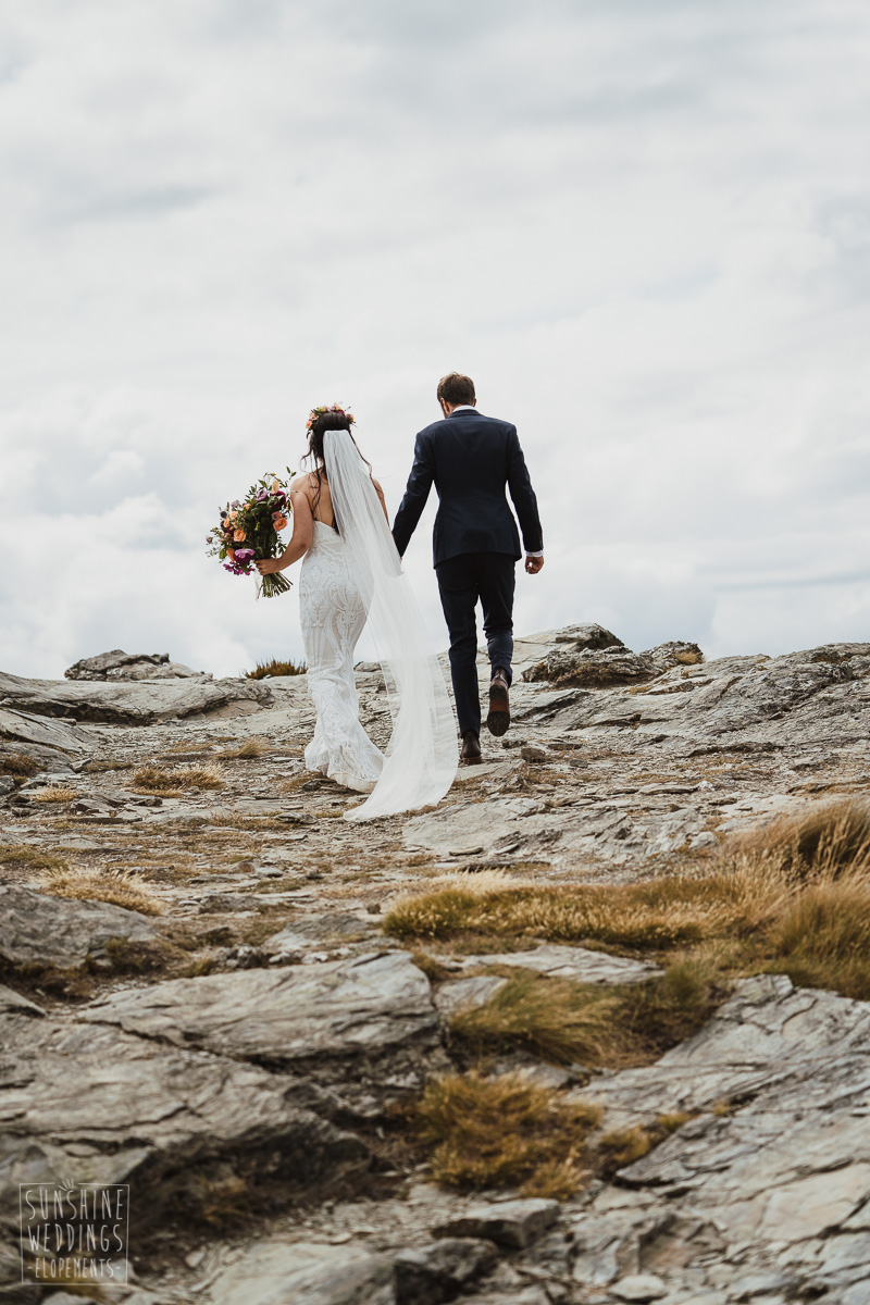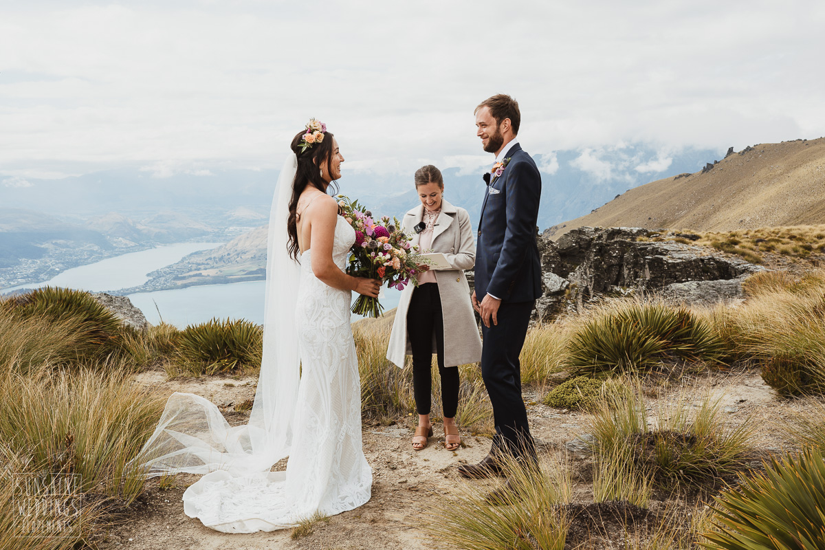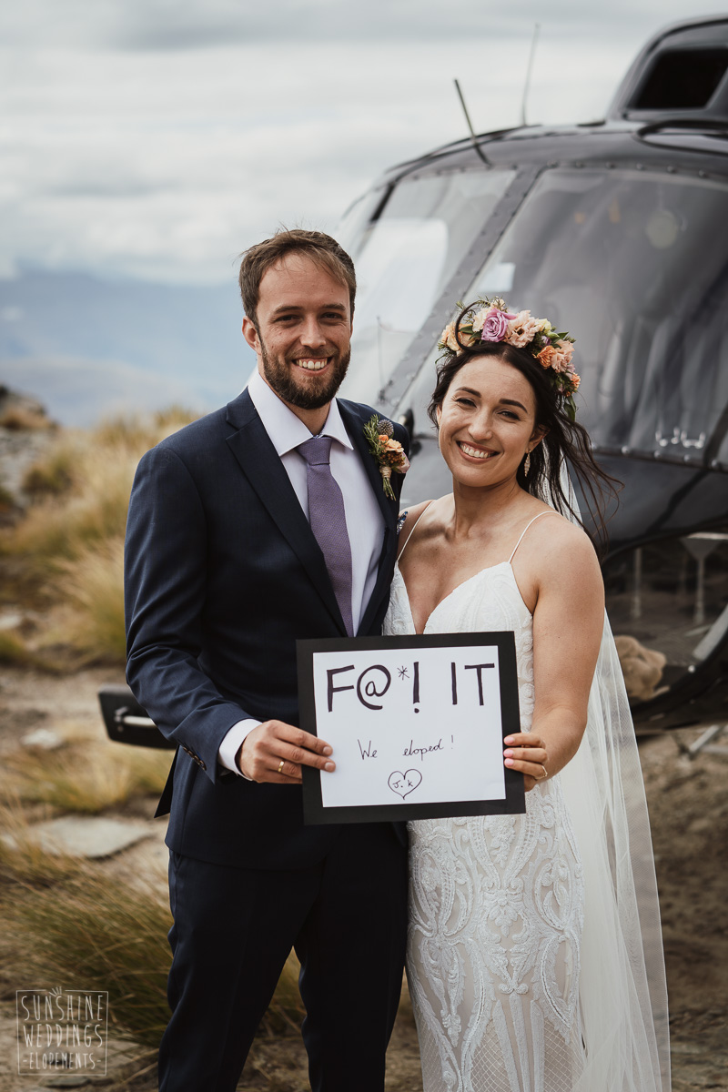 Jade and Joseph could not stop smiling all day. And who could blame them! Their ceremony was at The Ledge on Cecil Peak, followed by a second landing at Bayonet Peak. Jade’s beautiful flowers and flower crown suited the setting perfectly and we can’t go past a good veil shot or two.