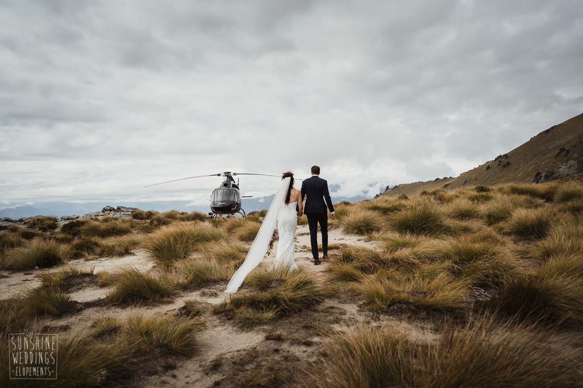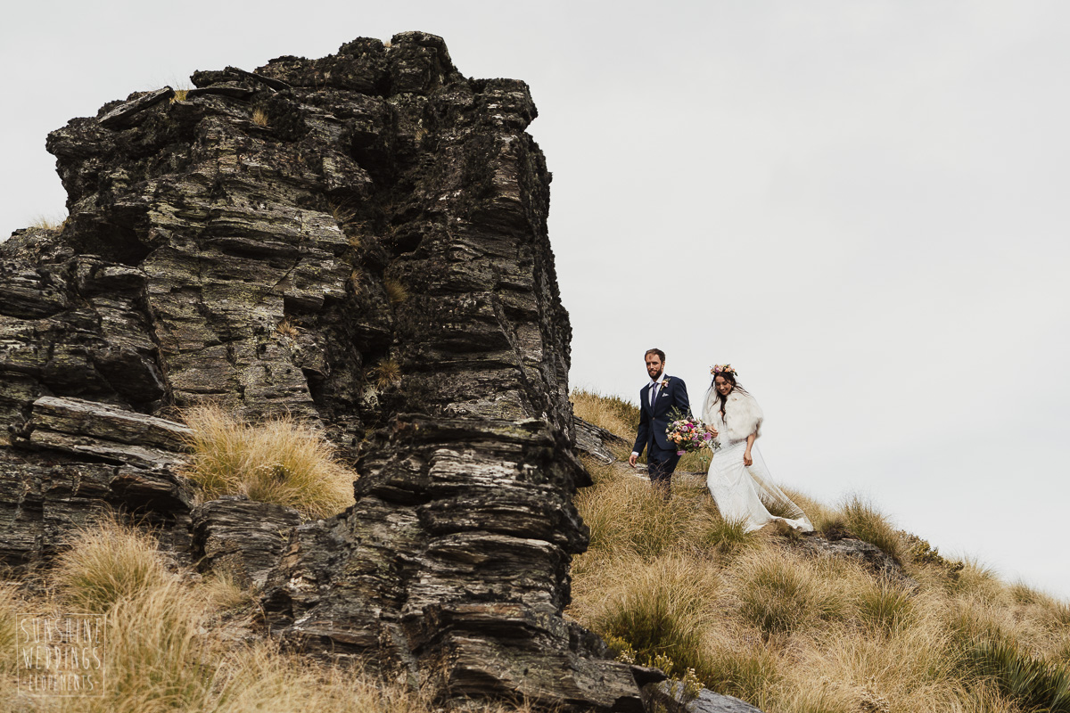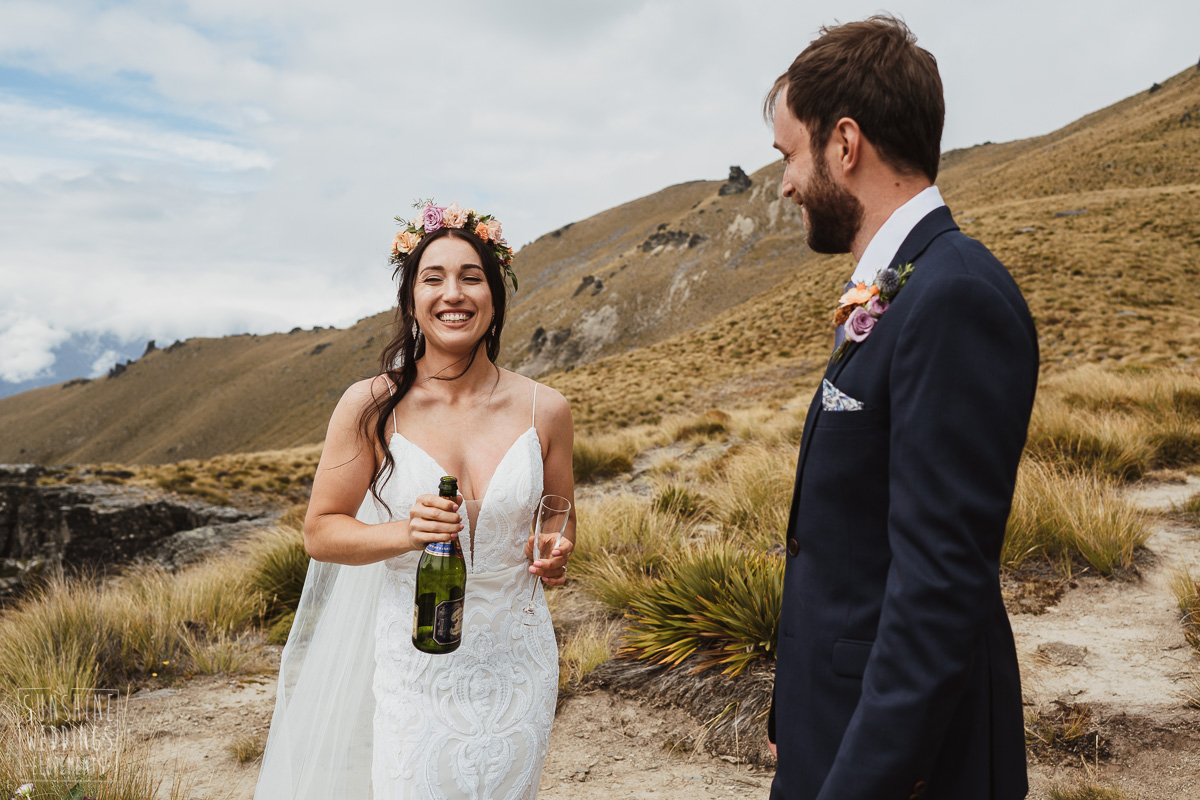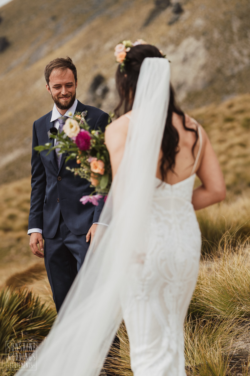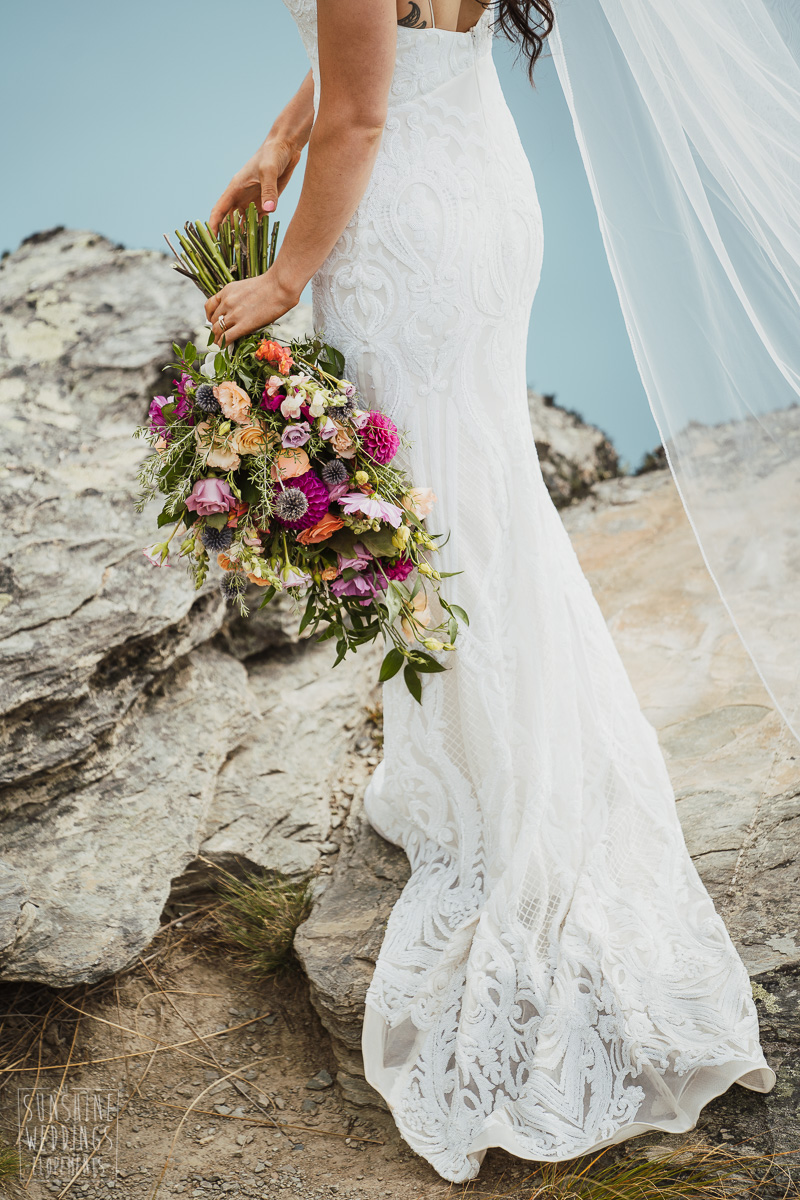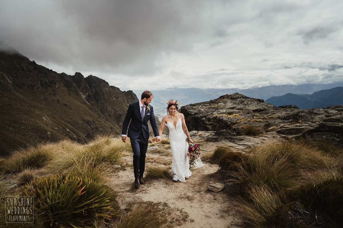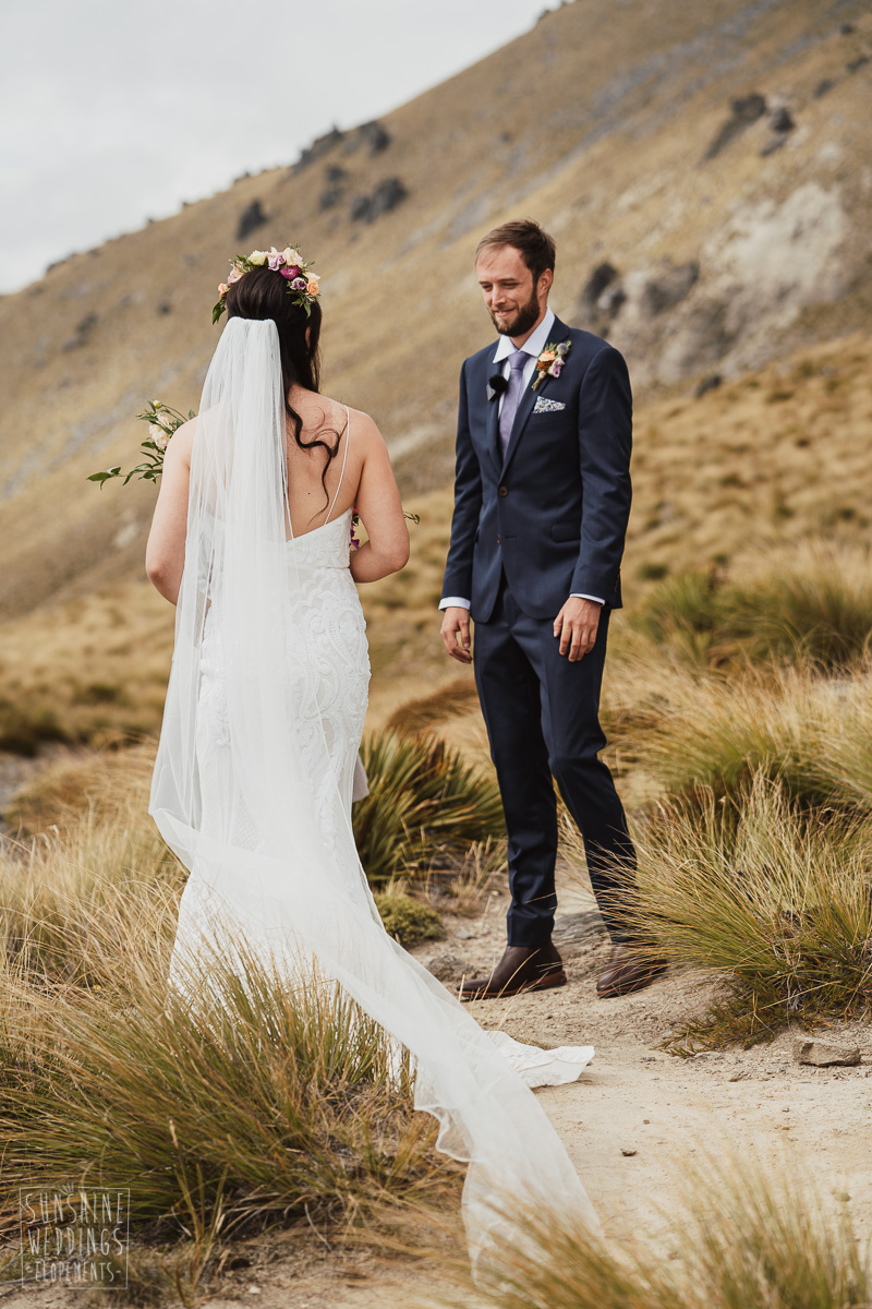 Jade and Joseph could not stop smiling all day. And who could blame them! Their ceremony was at The Ledge on Cecil Peak, followed by a second landing at Bayonet Peak. Jade’s beautiful flowers and flower crown suited the setting perfectly and we can’t go past a good veil shot or two.