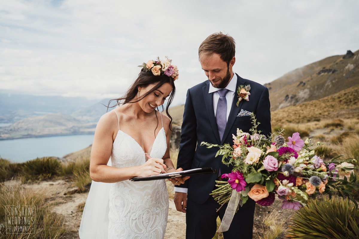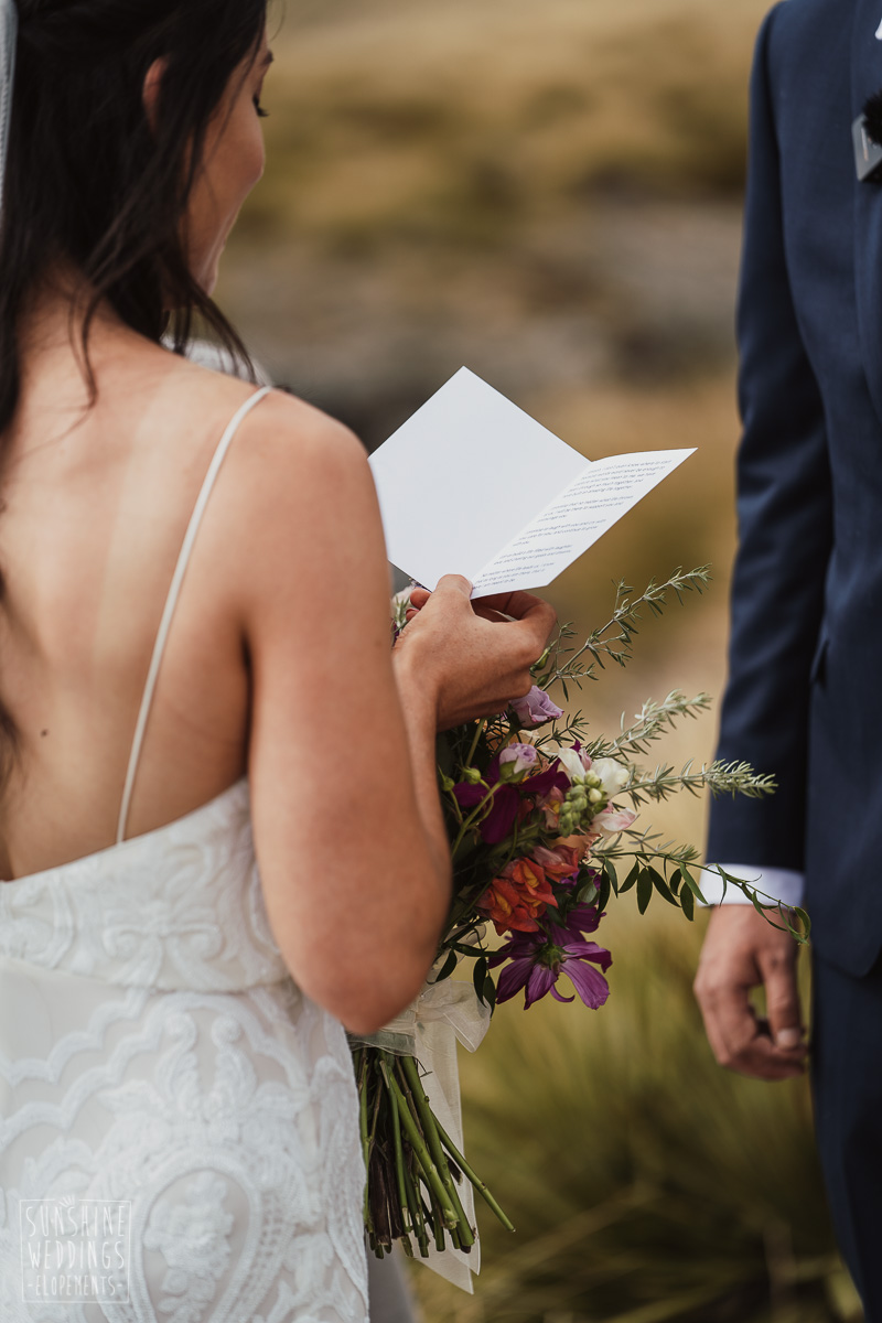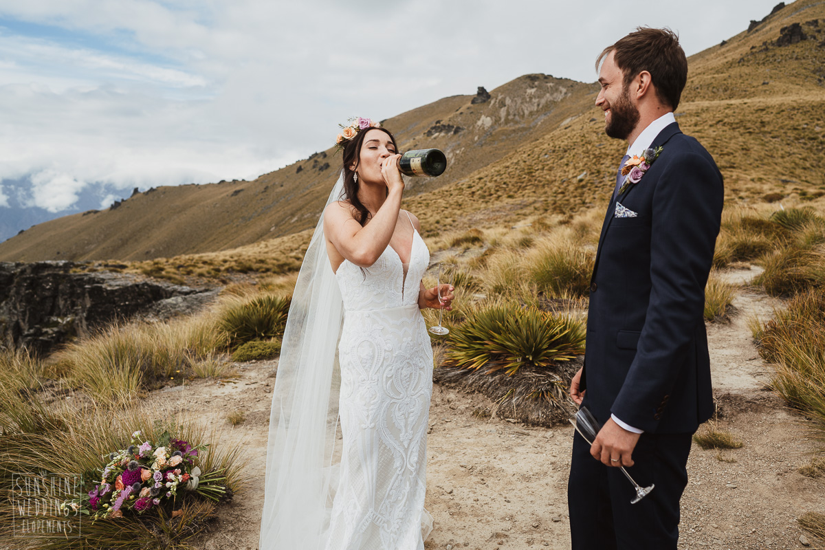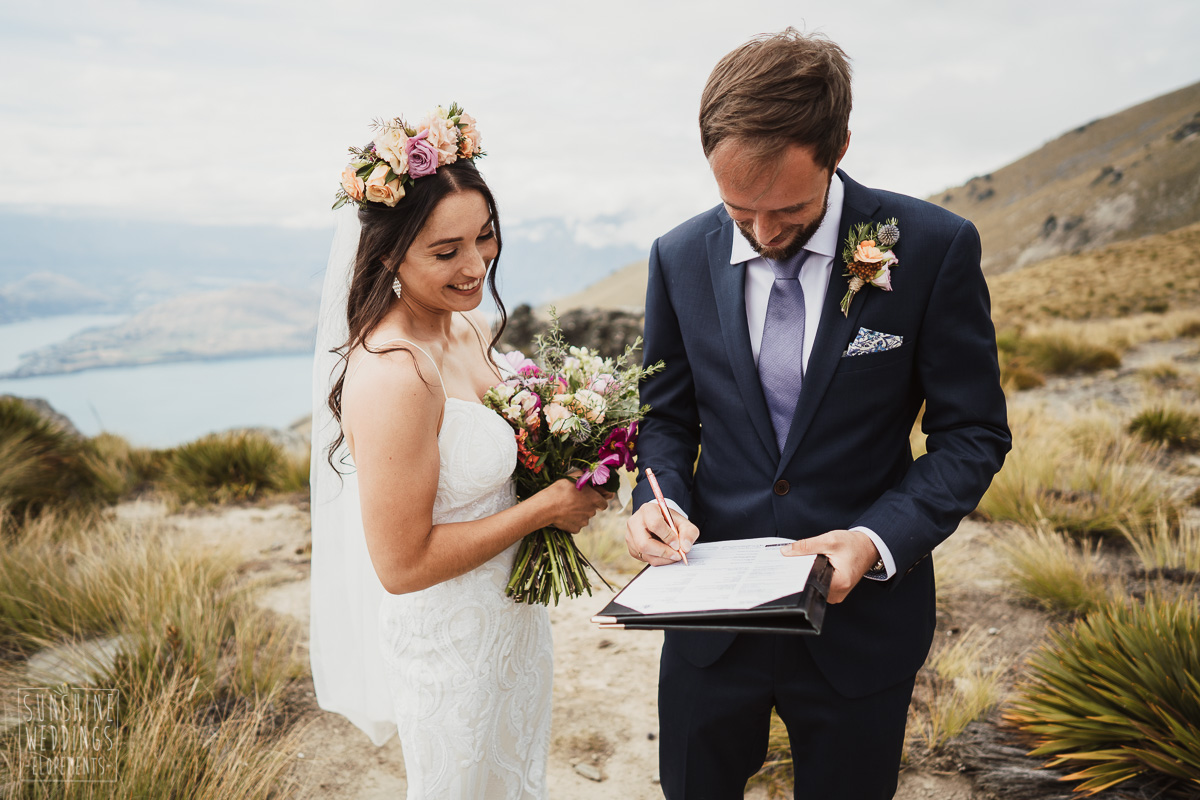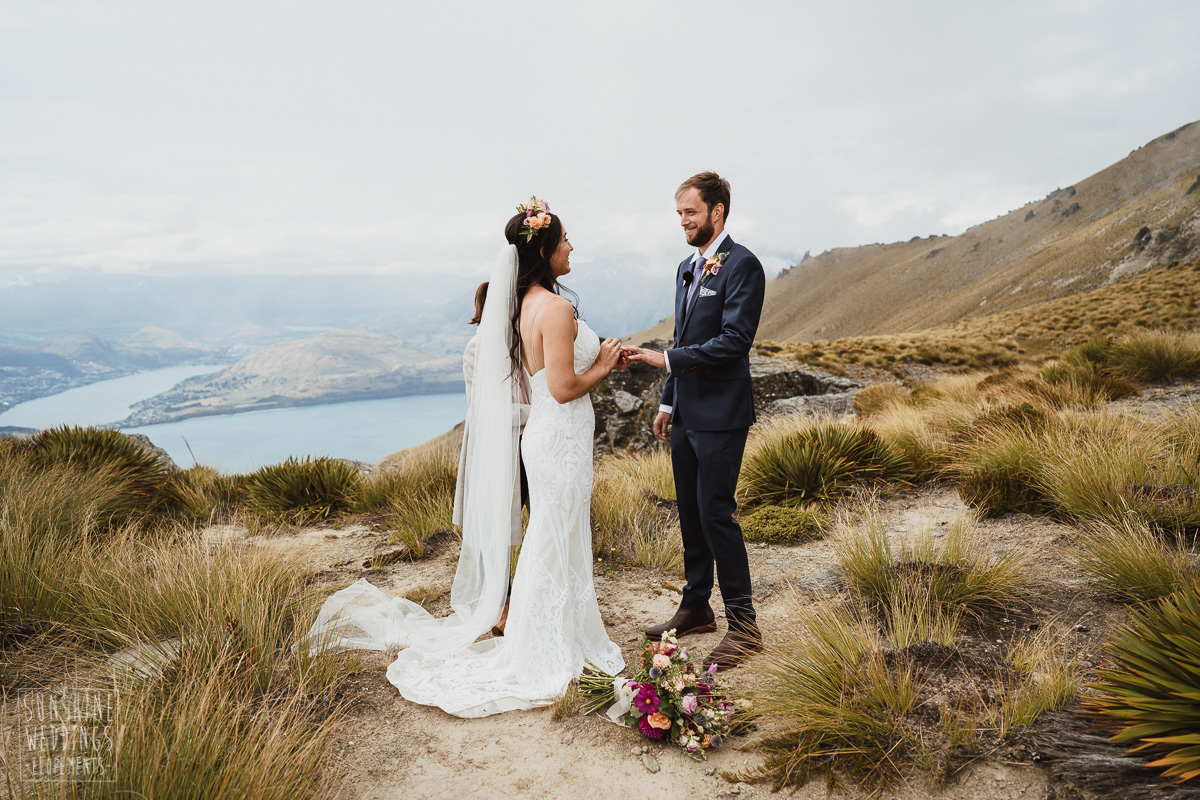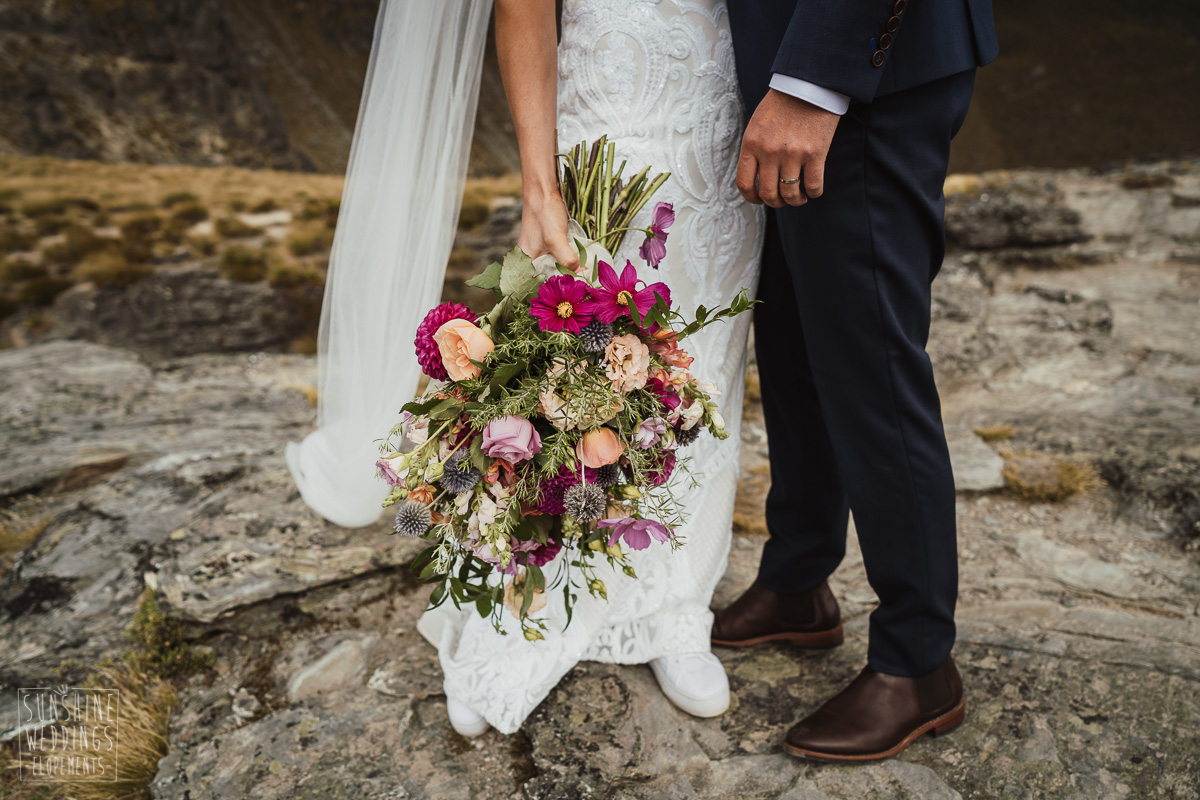 Jade and Joseph could not stop smiling all day. And who could blame them! Their ceremony was at The Ledge on Cecil Peak, followed by a second landing at Bayonet Peak. Jade’s beautiful flowers and flower crown suited the setting perfectly and we can’t go past a good veil shot or two.