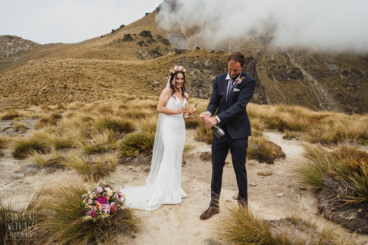 Wedding Package: Simple is Beautiful Close to Queenstown dual landing + a Hair, Makeup and Flowers package, ceremony video and executive transport.