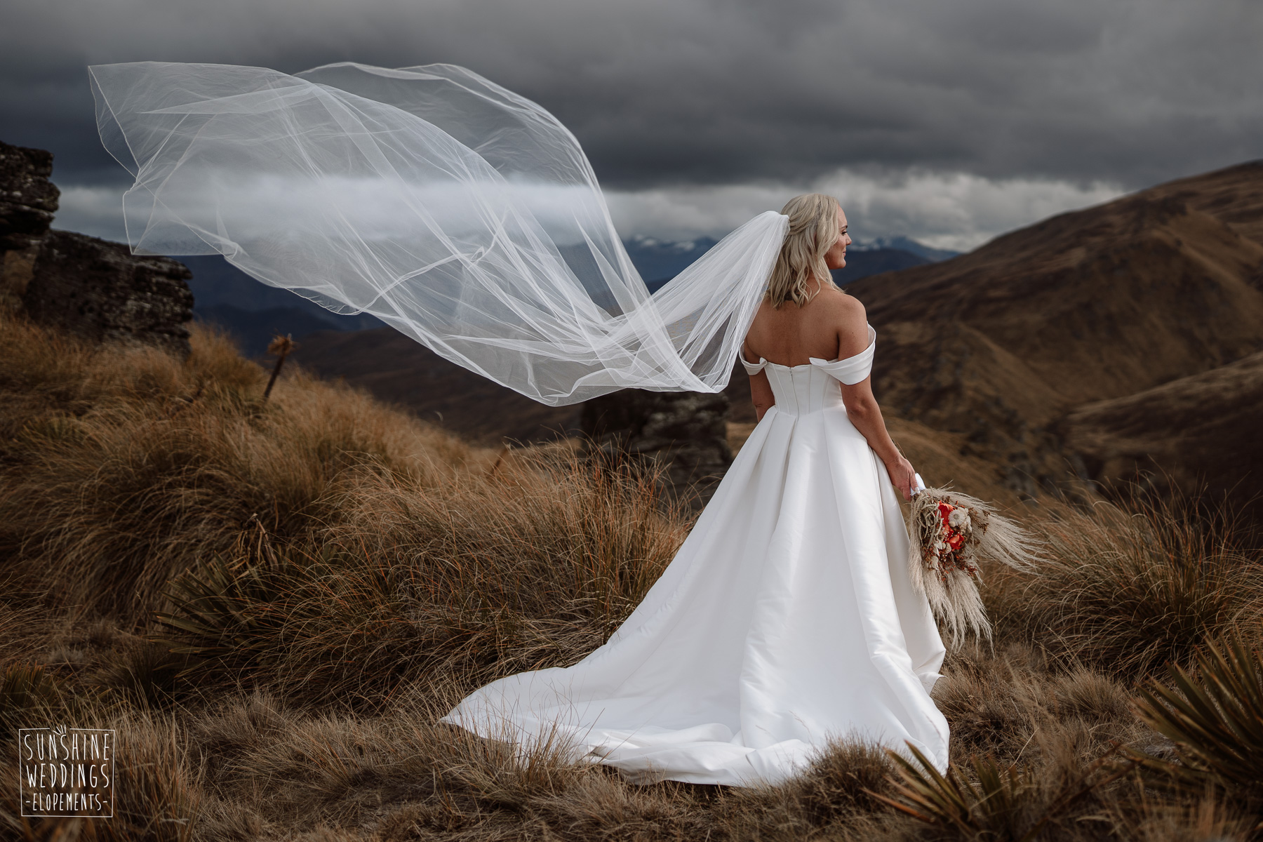 With some wild weather due to arrive we brought timings forward so not only missed some pretty gnarly wind but got great light with black, thundery clouds gathering in the background. Despite a few raindrops Danelle and Scott didn’t let a thing dampen their day and their moody mountain elopement made for some beautiful photos!