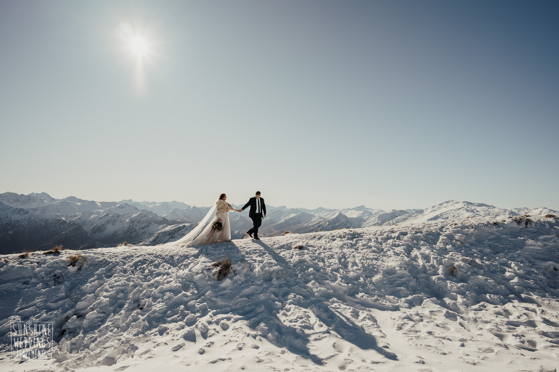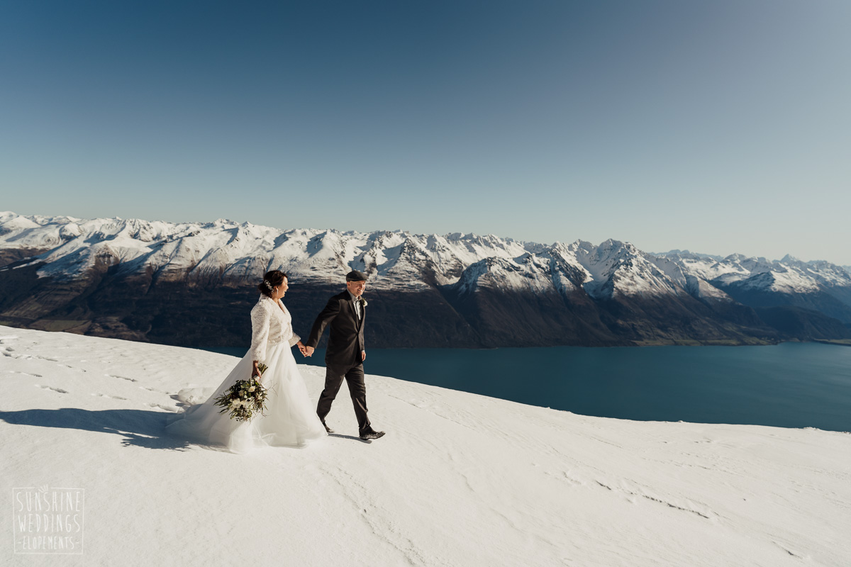 Our Hidden Gems landings include some of our favourite elopement locations within a 10-15 minute helicopter flight out of Queenstown. Vanguard Peak to the north has 360 degree mountain views which glow gold in summer or shimmer with snow in winter. Skippers has views over the iconic Shotover River or nestle into Moonlight Creek for a river-side ceremony surrounded by native bush.