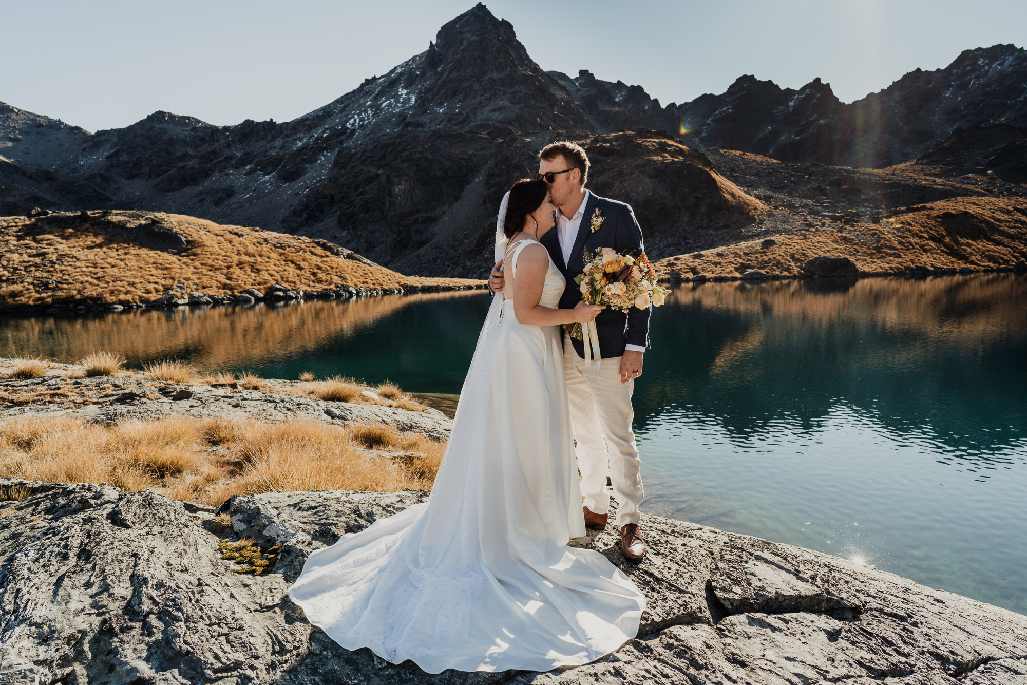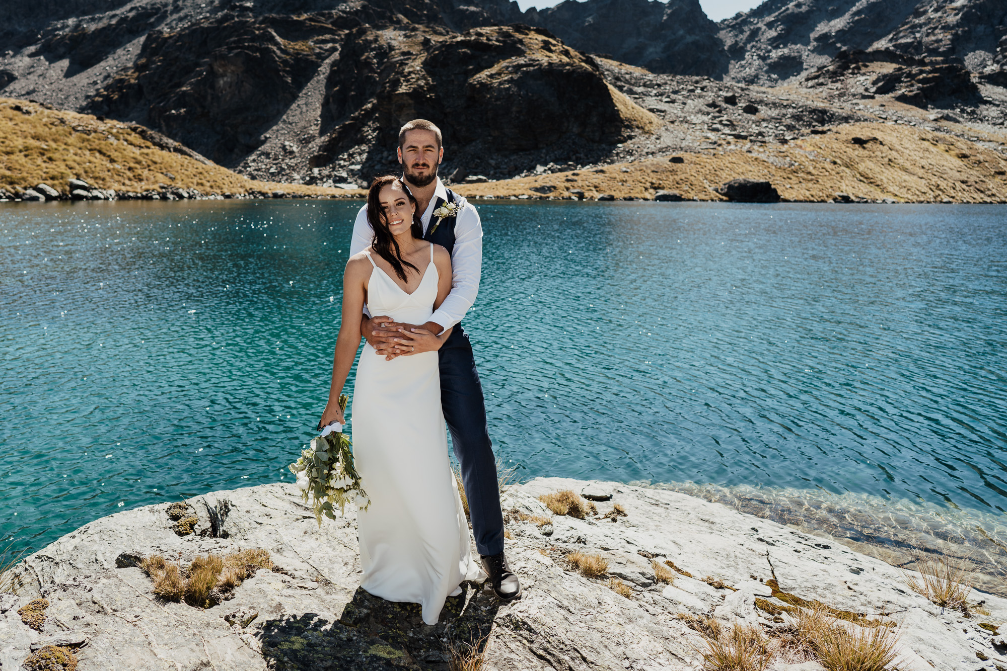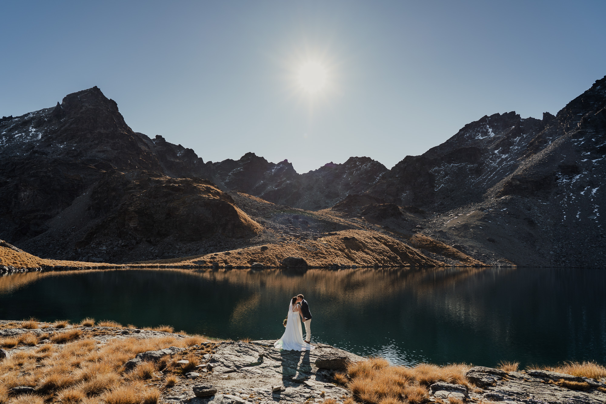 Lake Hope is a bit of a secret spot and one of our new favourites. Nestled on the back side of The Remarkables, this alpine lake is surrounded by shale-covered slopes with glacial green-blue water. It offers lots of photo opportunities from all angles. An ideal location for couples wanting a remote mountain-lake location and the short flight distance means it’s very budget-friendly.
