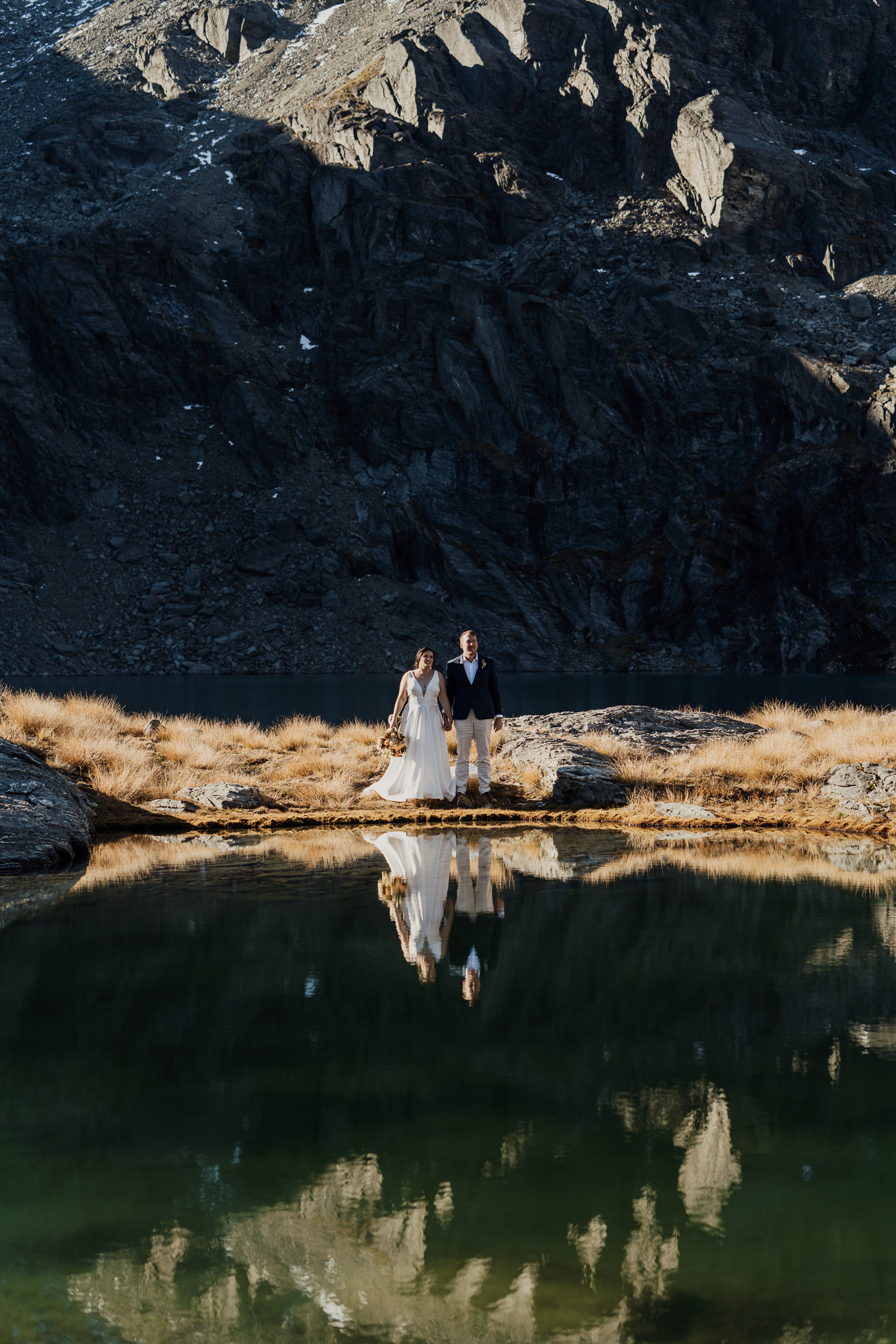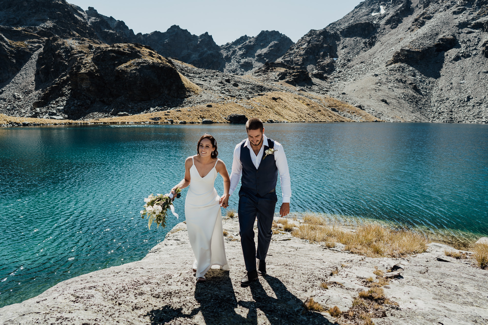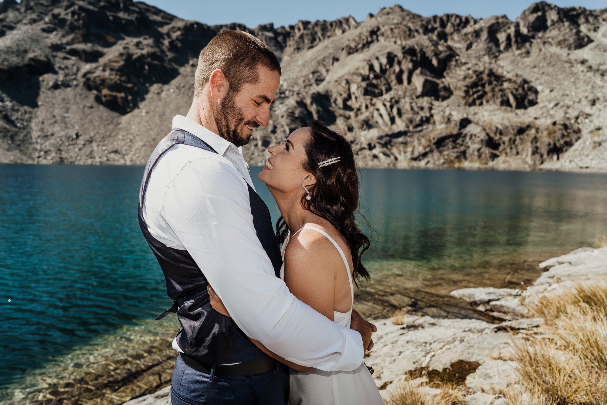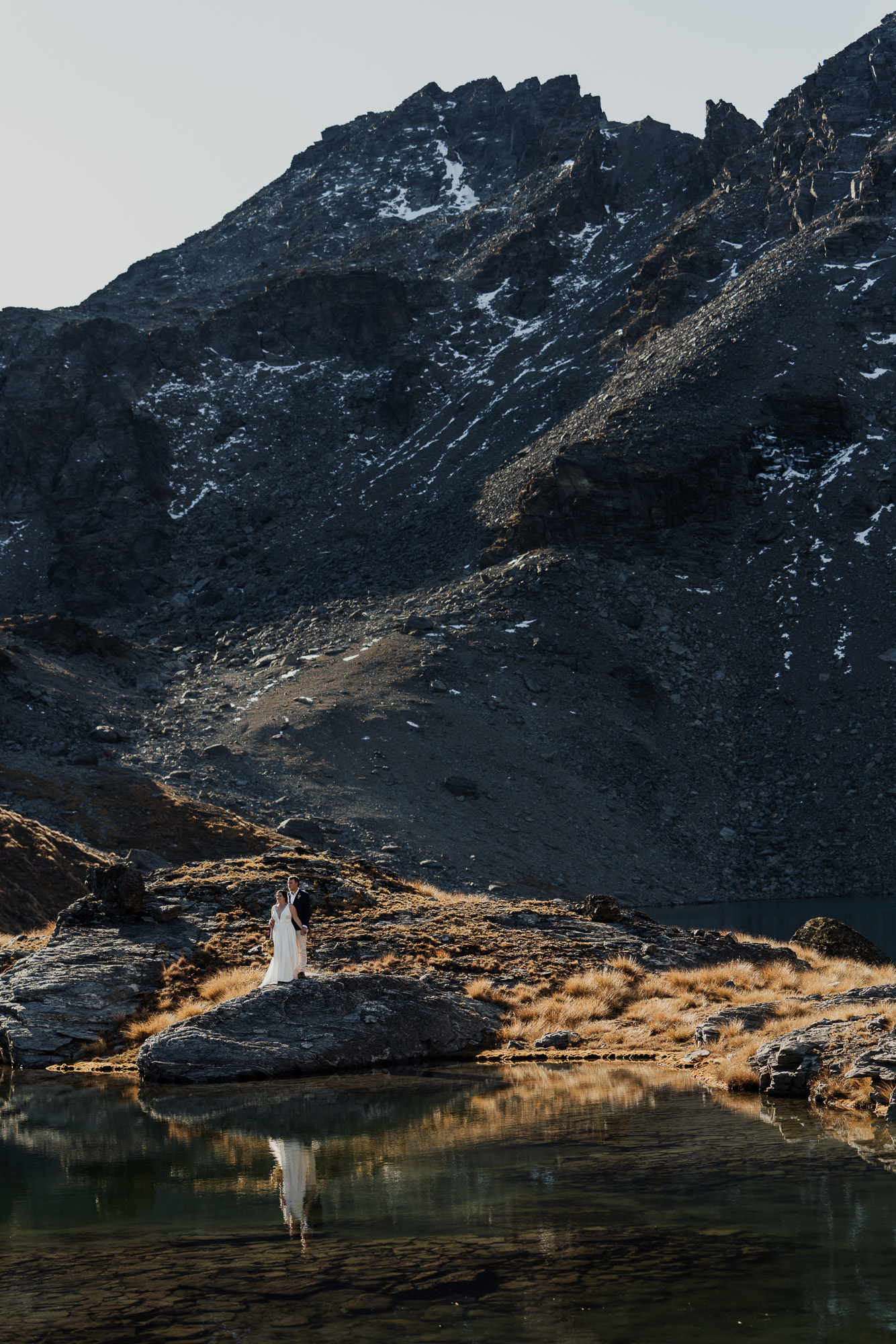 Lake Hope is a bit of a secret spot and one of our new favourites. Nestled on the back side of The Remarkables, this alpine lake is surrounded by shale-covered slopes with glacial green-blue water. It offers lots of photo opportunities from all angles. An ideal location for couples wanting a remote mountain-lake location and the short flight distance means it’s very budget-friendly.