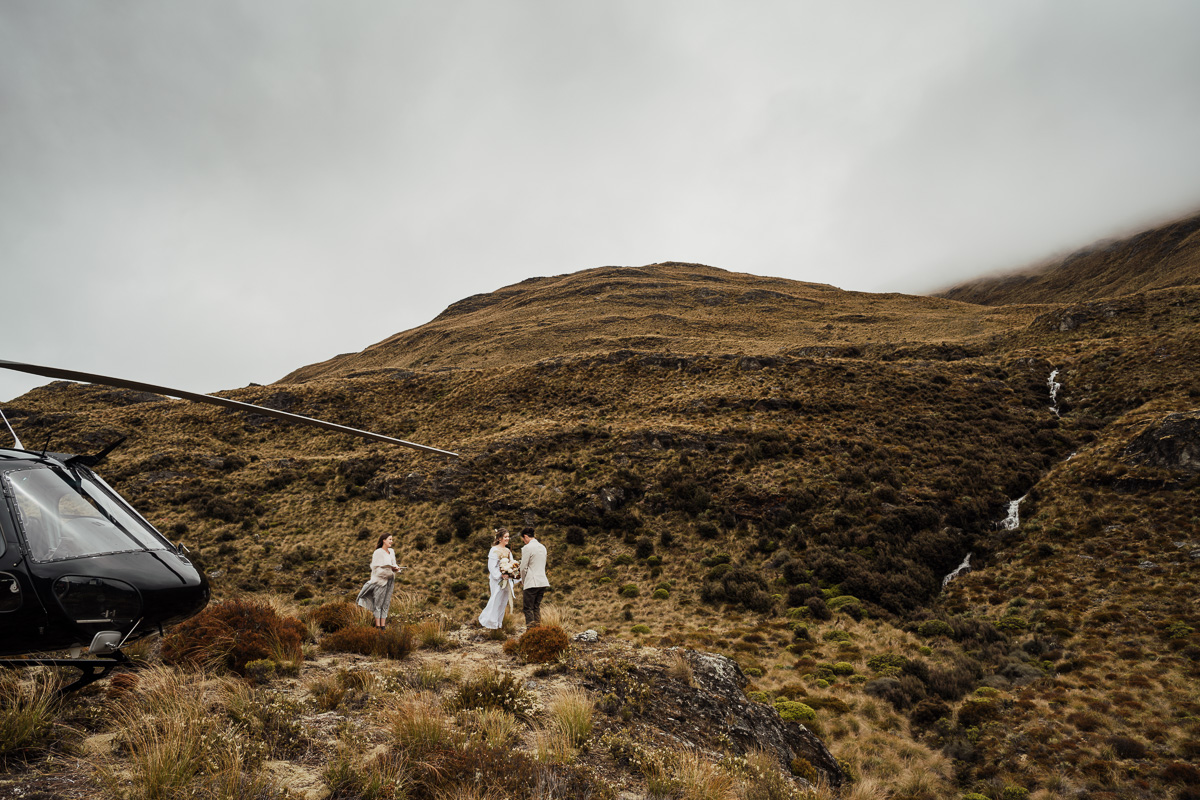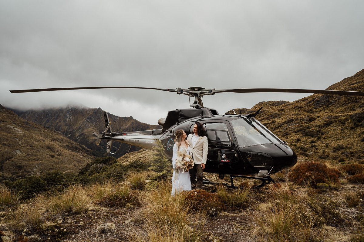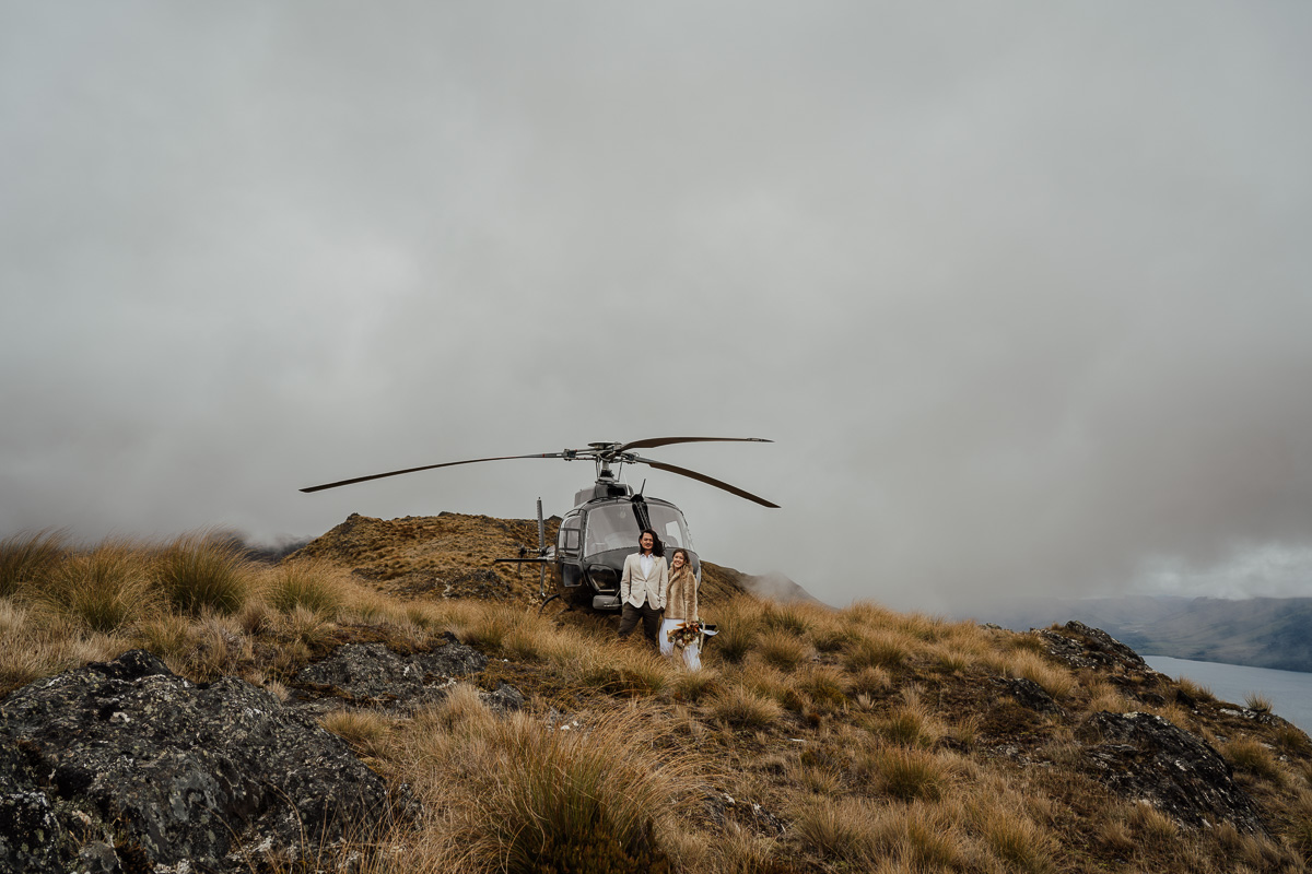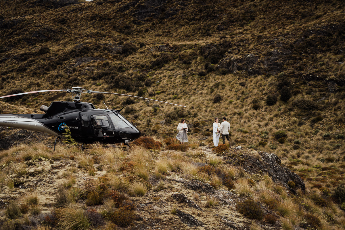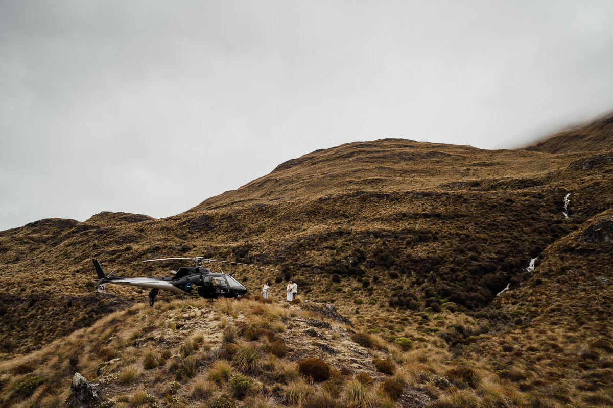 After their ceremony and photos around Lake Luna, they flew for a second landing at Big Geordie for some views across Lake Wakatipu.