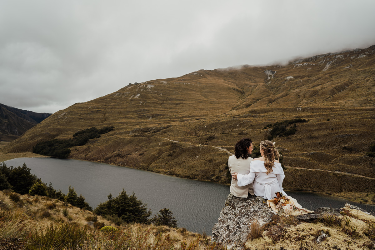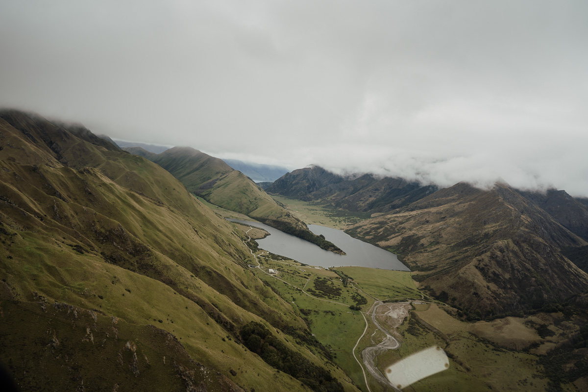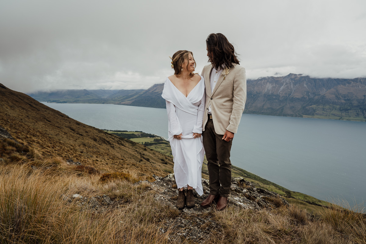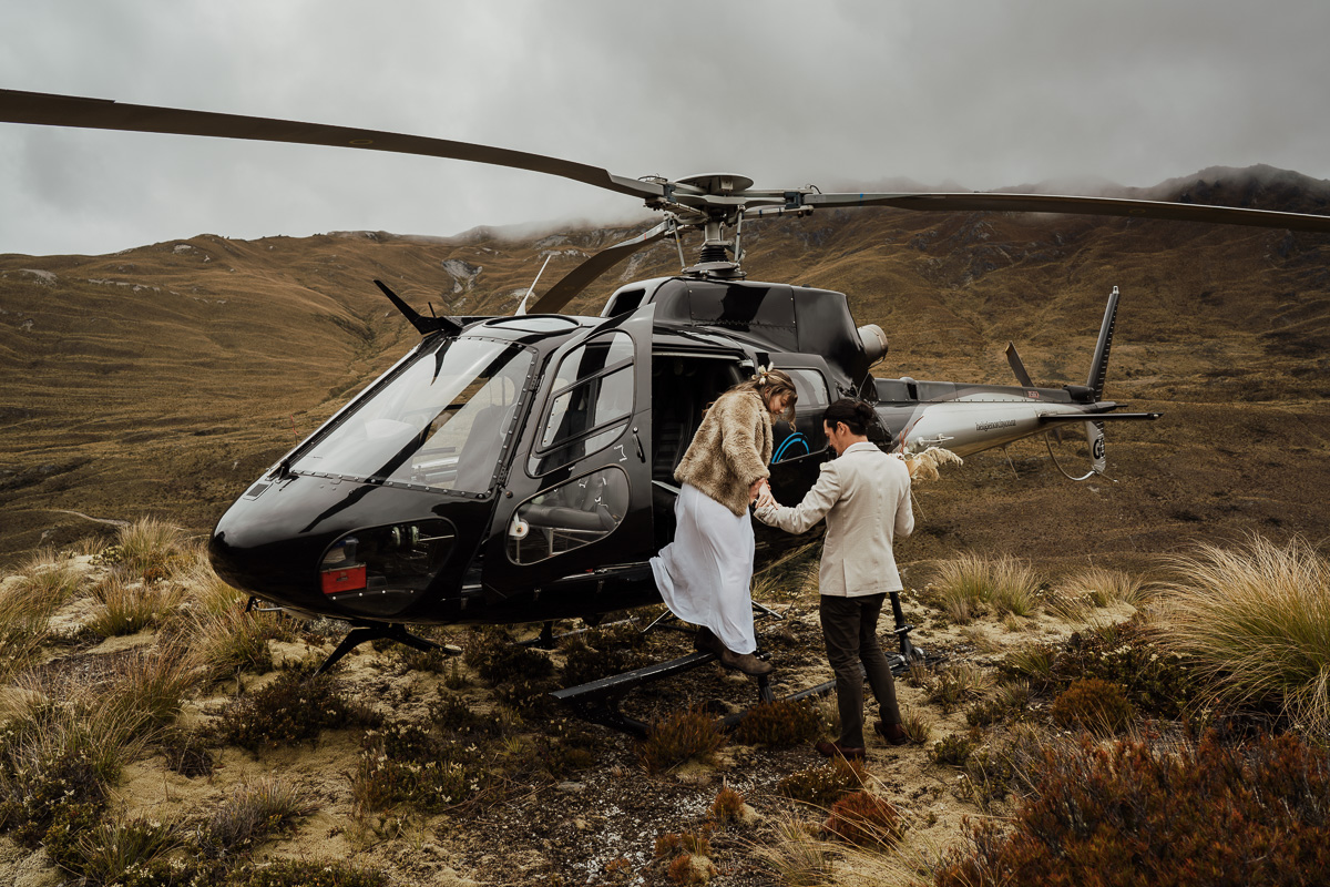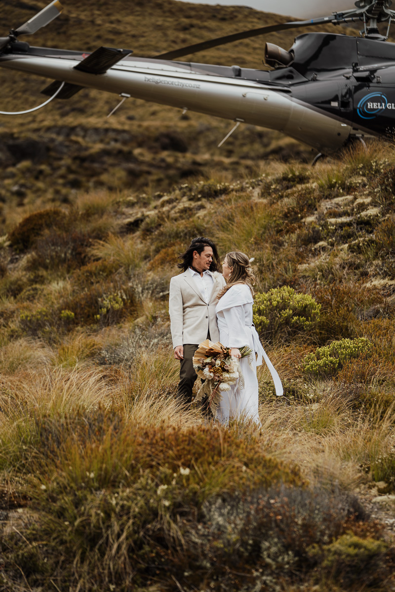 After their ceremony and photos around Lake Luna, they flew for a second landing at Big Geordie for some views across Lake Wakatipu.