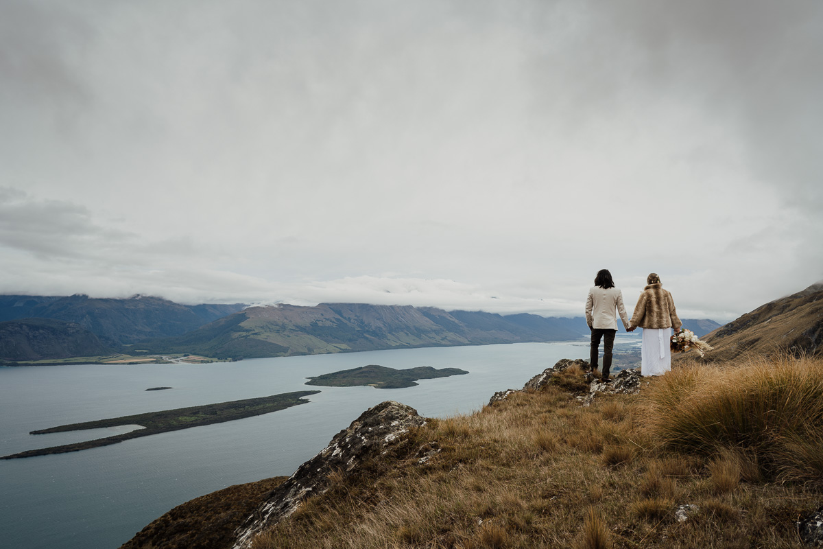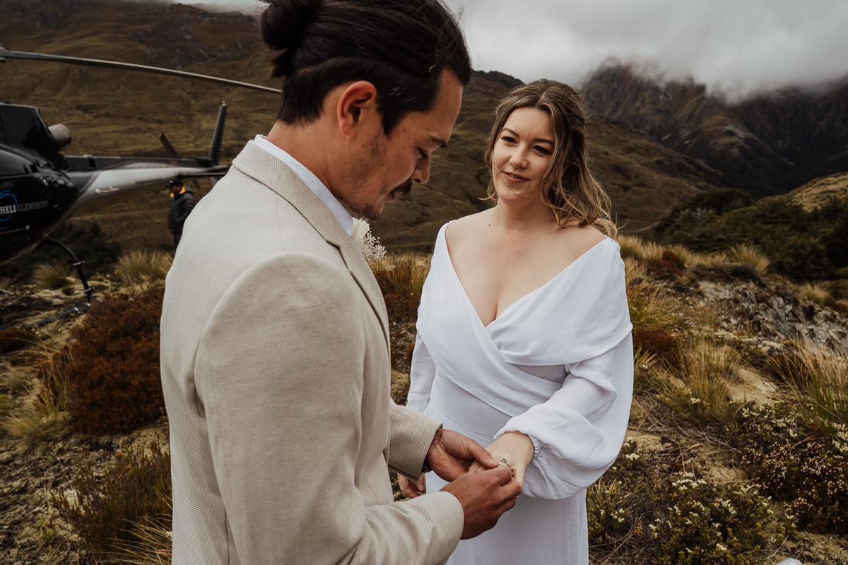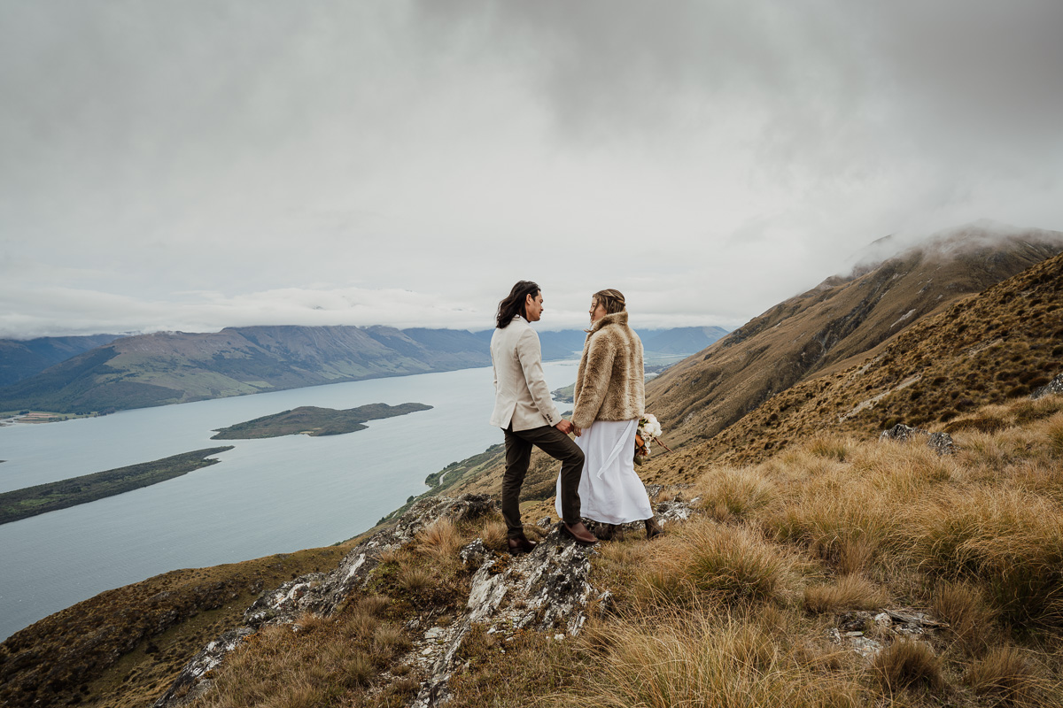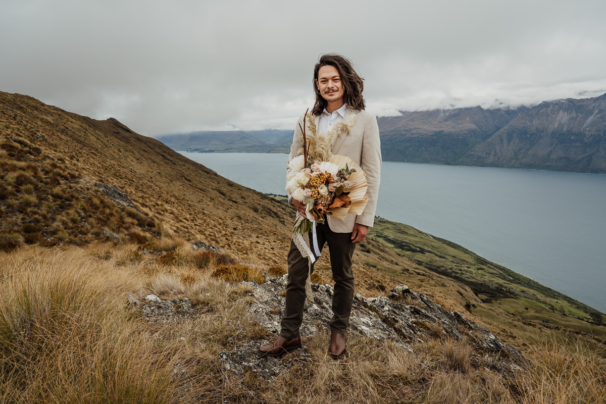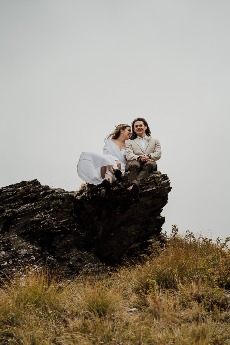 After their ceremony and photos around Lake Luna, they flew for a second landing at Big Geordie for some views across Lake Wakatipu.
