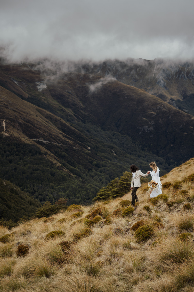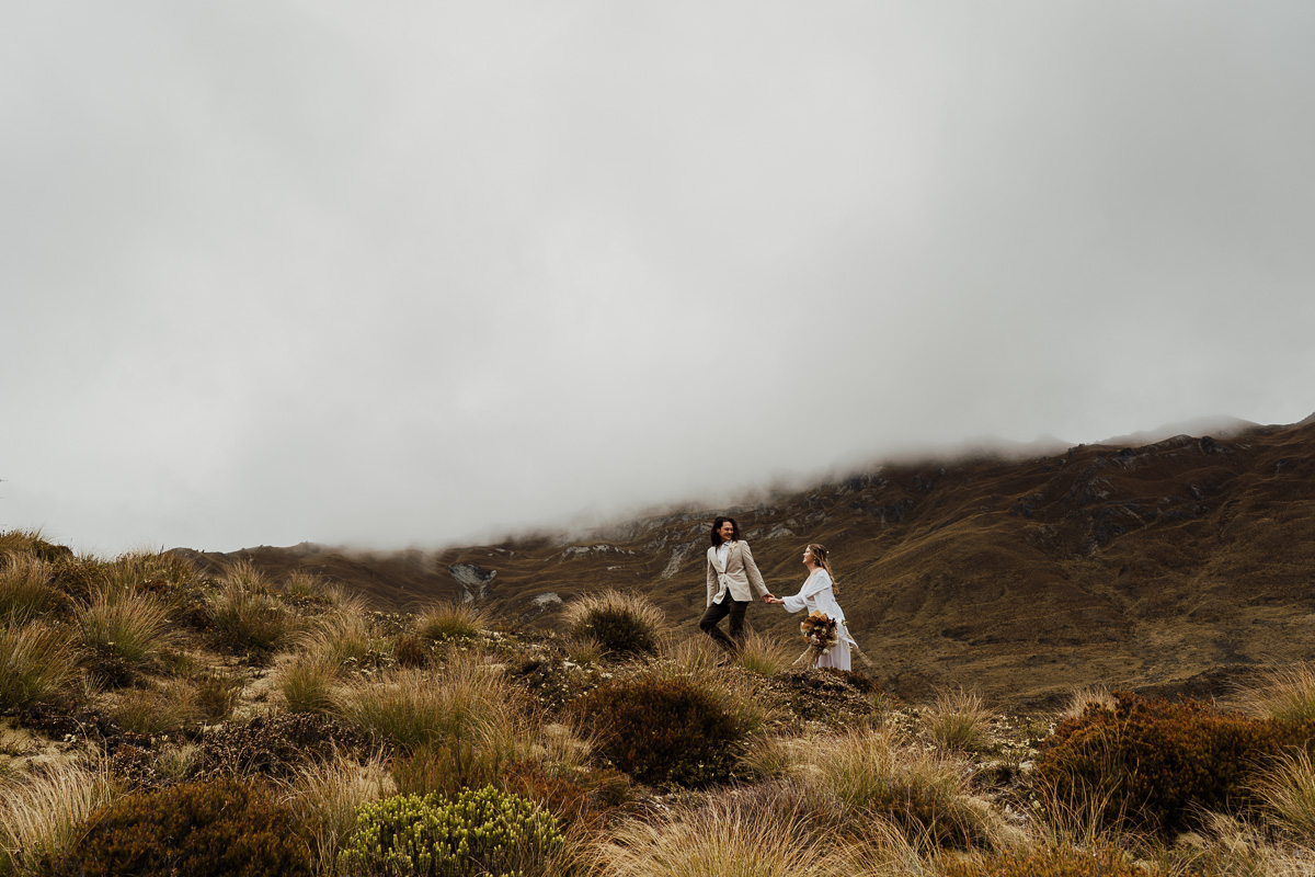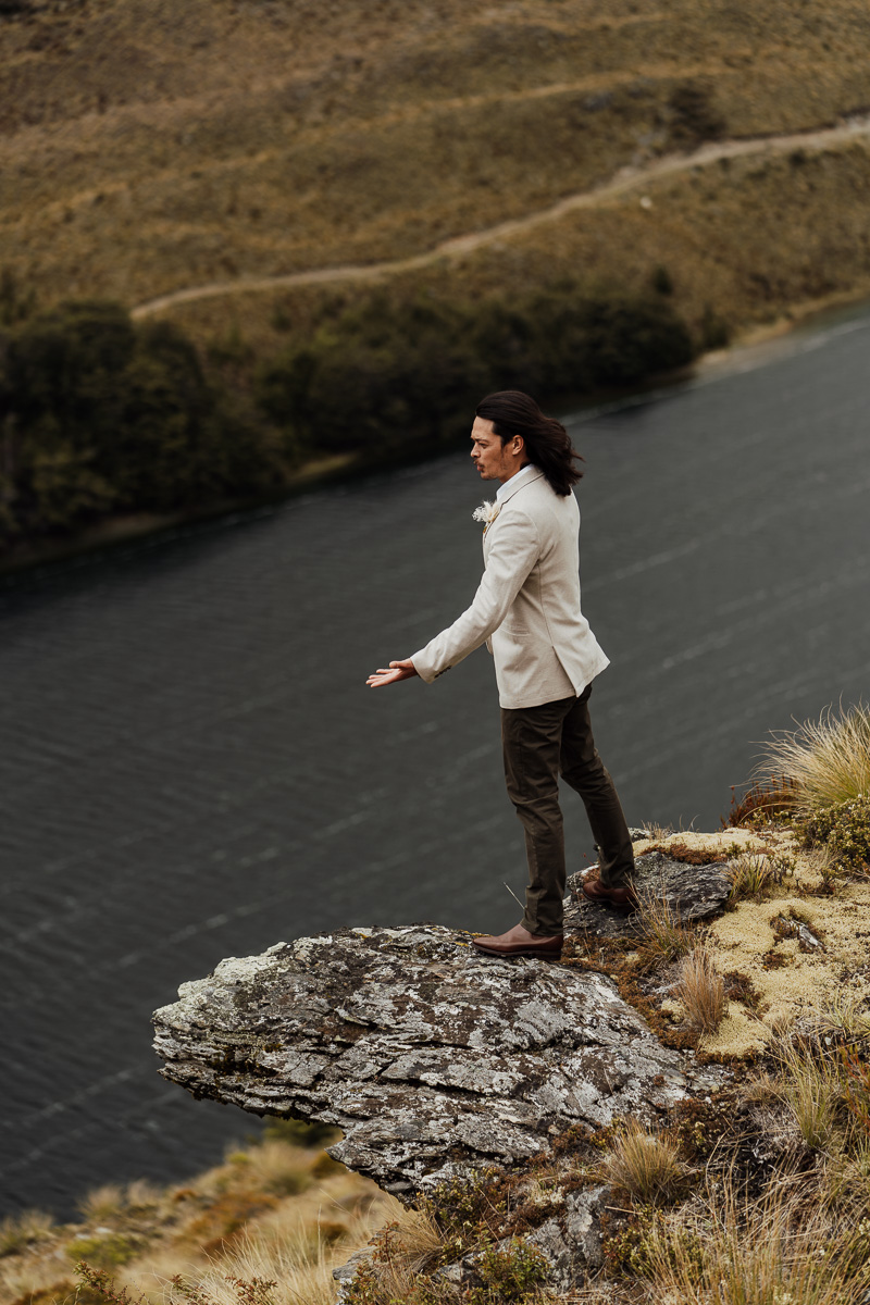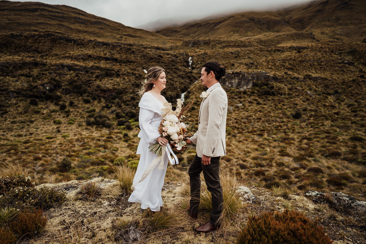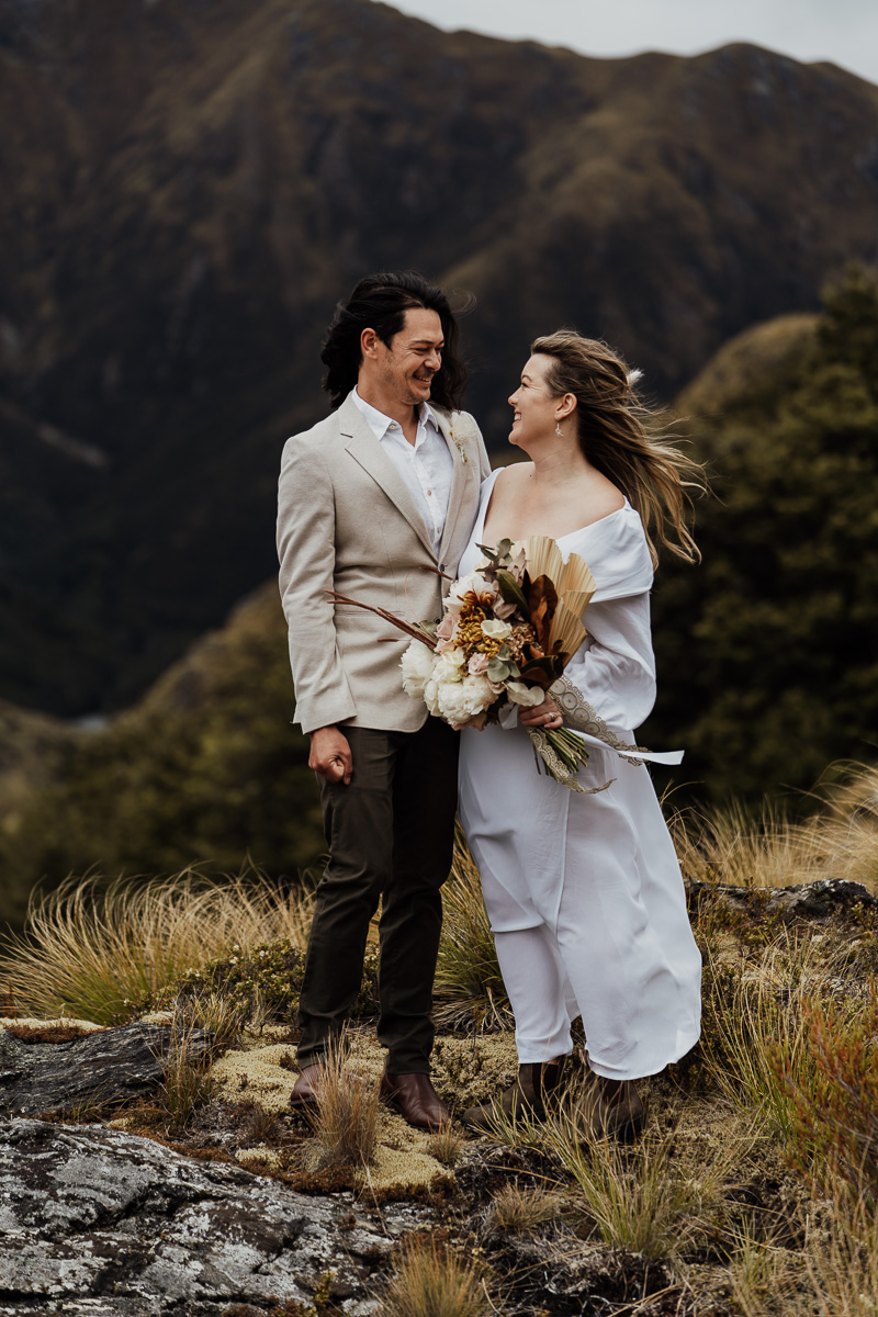 After their ceremony and photos around Lake Luna, they flew for a second landing at Big Geordie for some views across Lake Wakatipu.