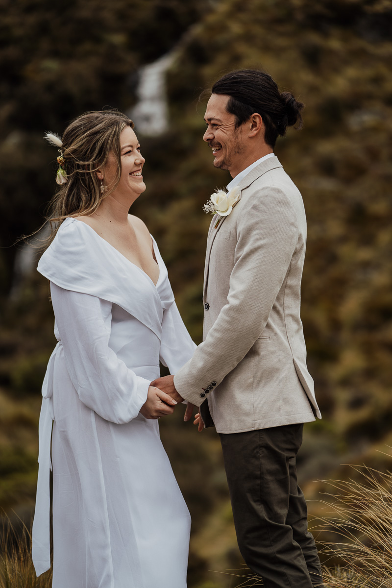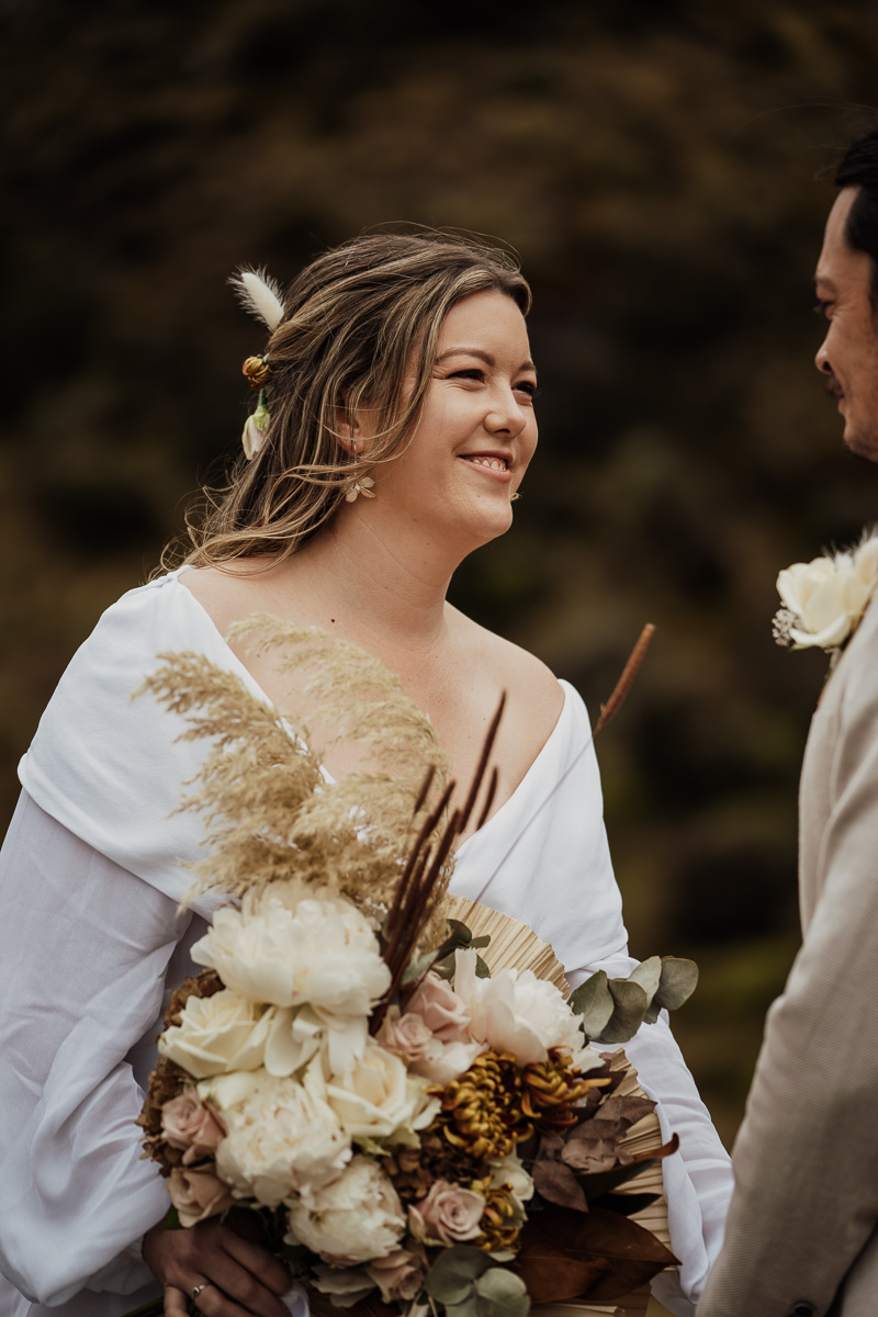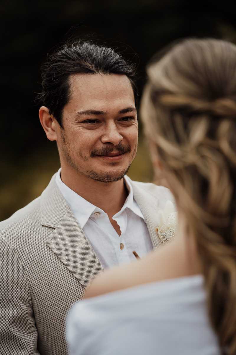 We love a moody day with grey skies and misty clouds. Despite a little bit of chill, Elly and Kim braced the day with style and lots of heart. Lake Luna was a beautiful back to nature location for their ceremony with a spontaneous waterfall making the perfect backdrop. Especially as they got engaged in front of a waterfall too.
