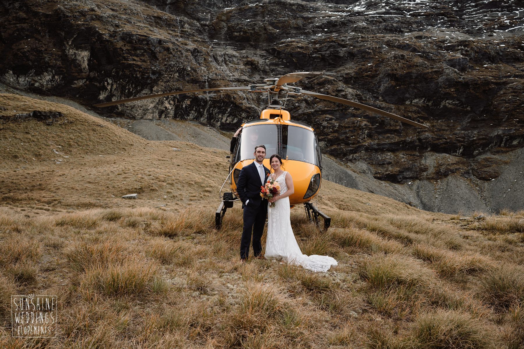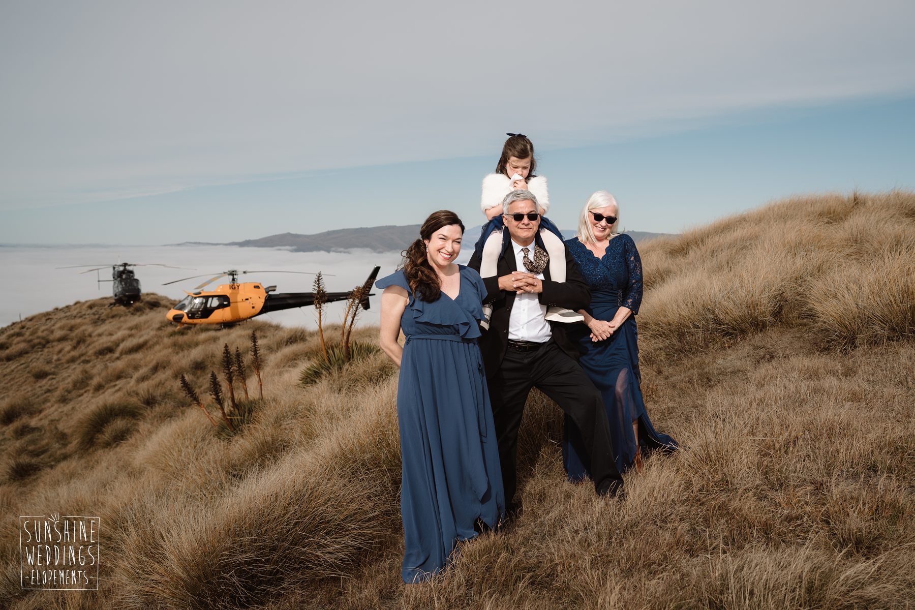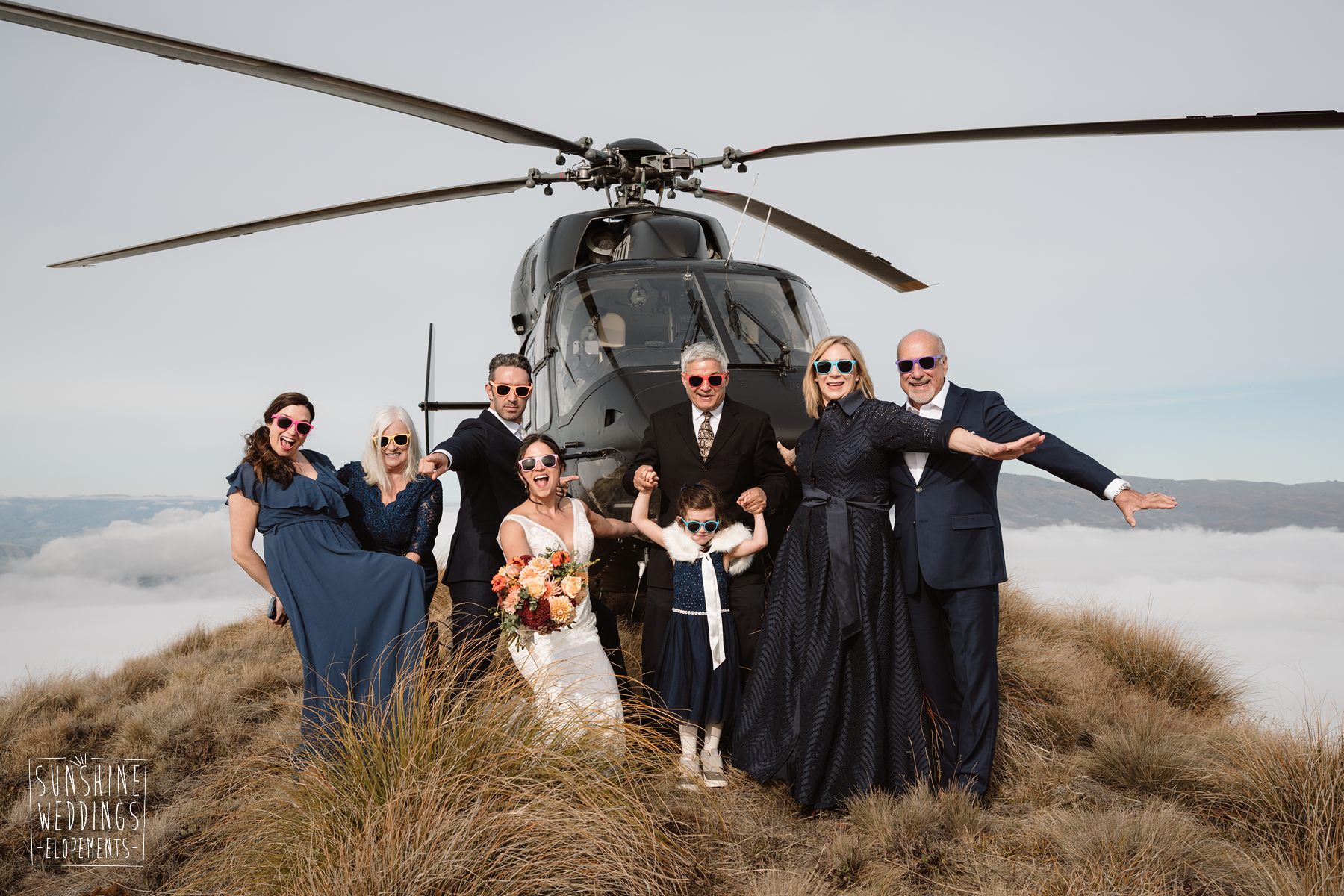 Lindsey and Parker travelled all the way from the USA for their New Zealand elopement. Initially their plans were to travel on their own but family had other ideas! They were super excited to be able to fly loved ones with them to the ceremony location and then fly to another landing for an adventure of their own.