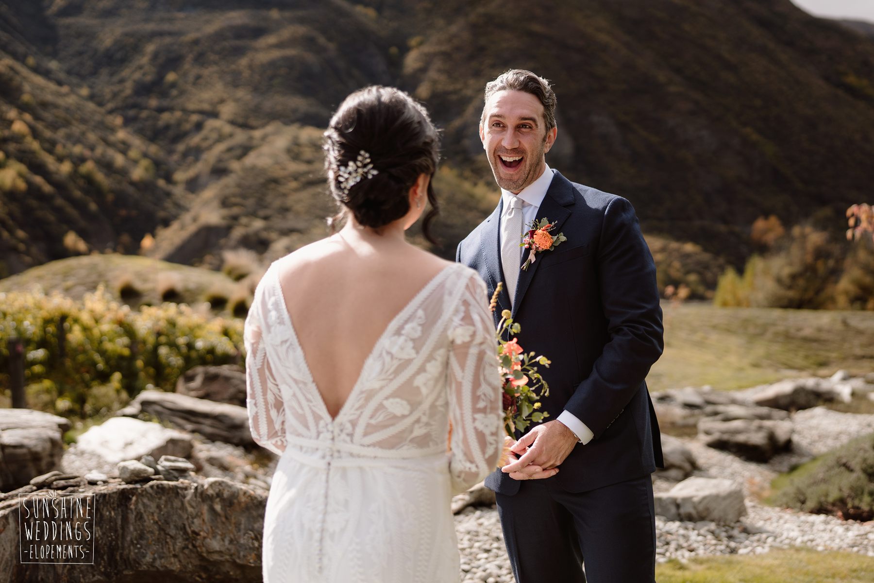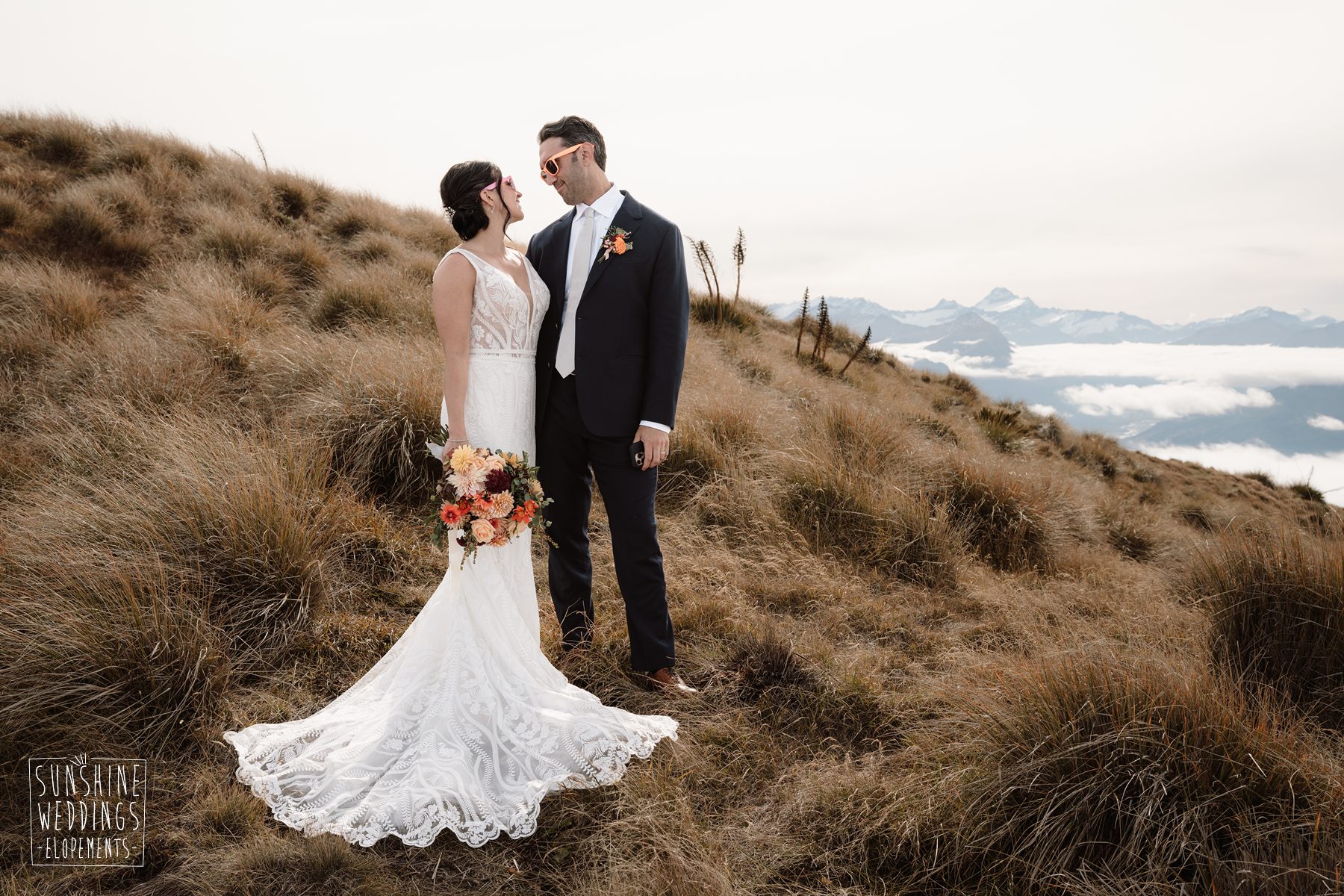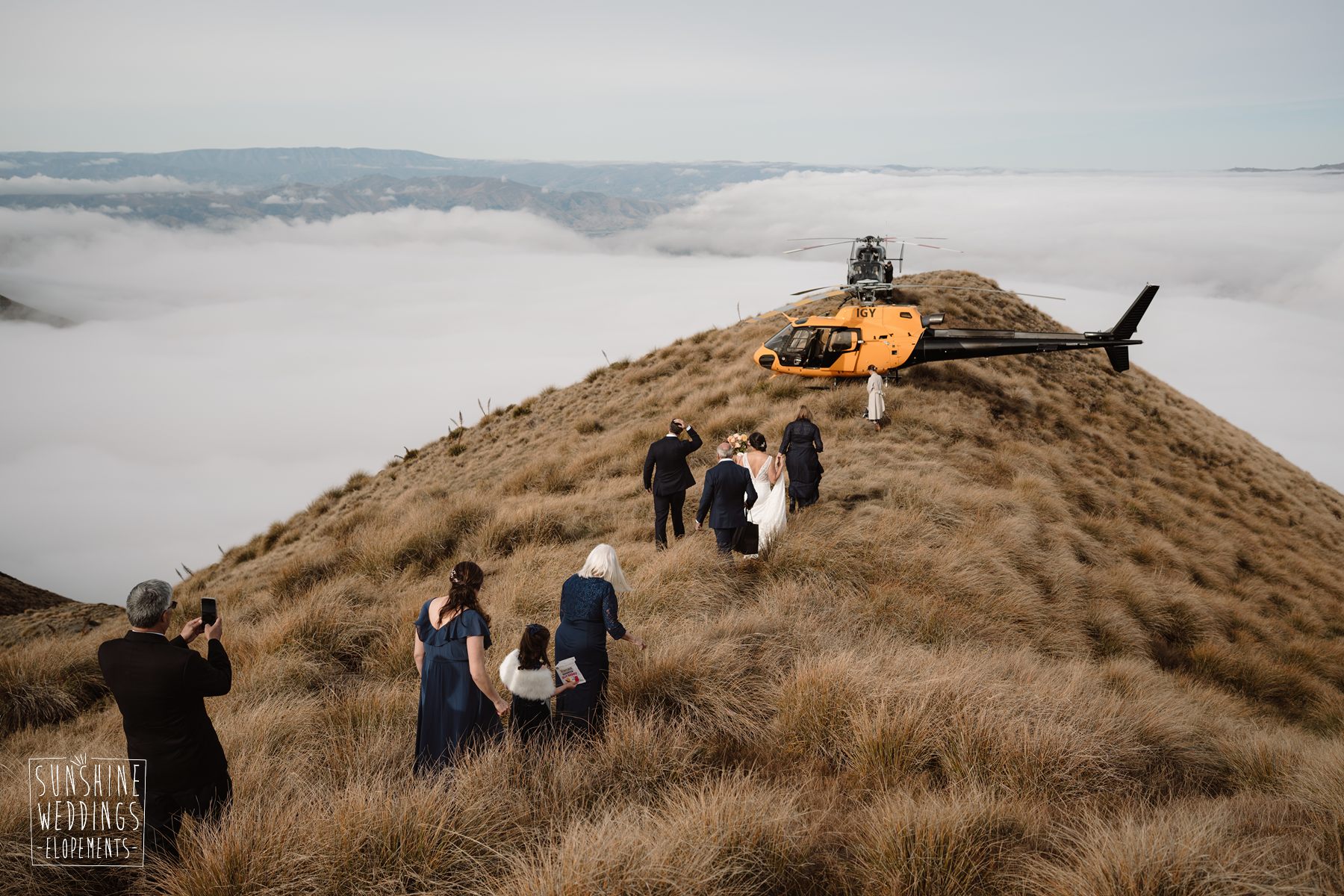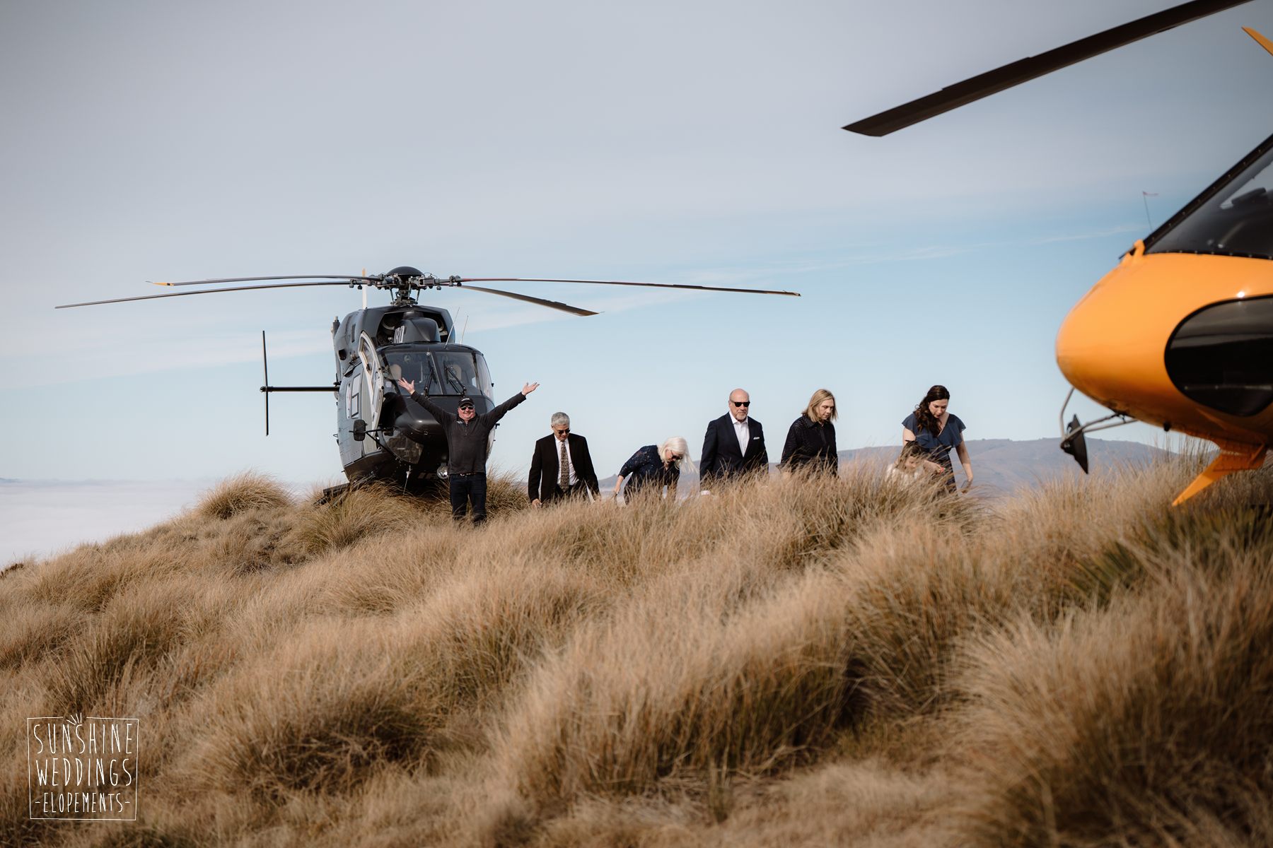 Lindsey and Parker travelled all the way from the USA for their New Zealand elopement. Initially their plans were to travel on their own but family had other ideas! They were super excited to be able to fly loved ones with them to the ceremony location and then fly to another landing for an adventure of their own.