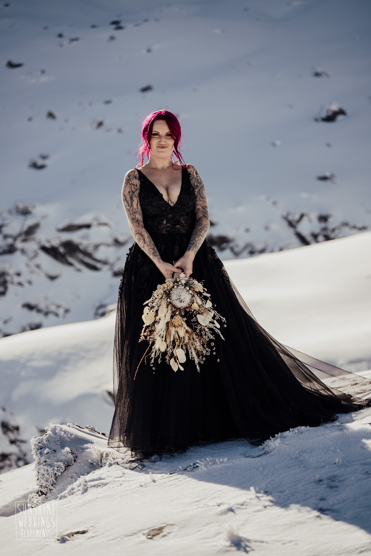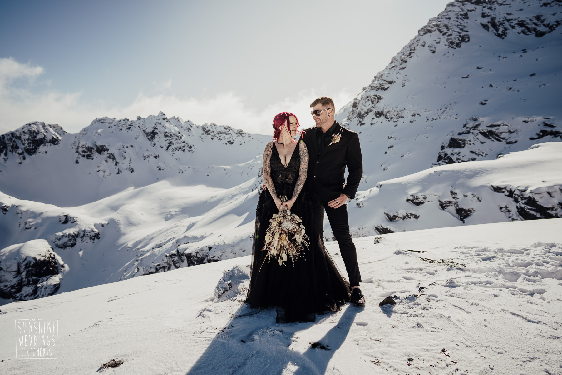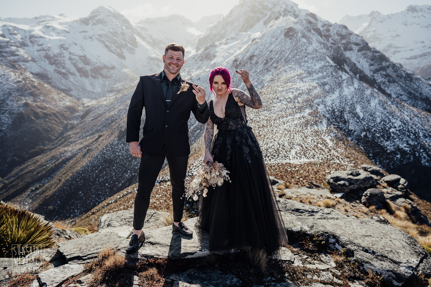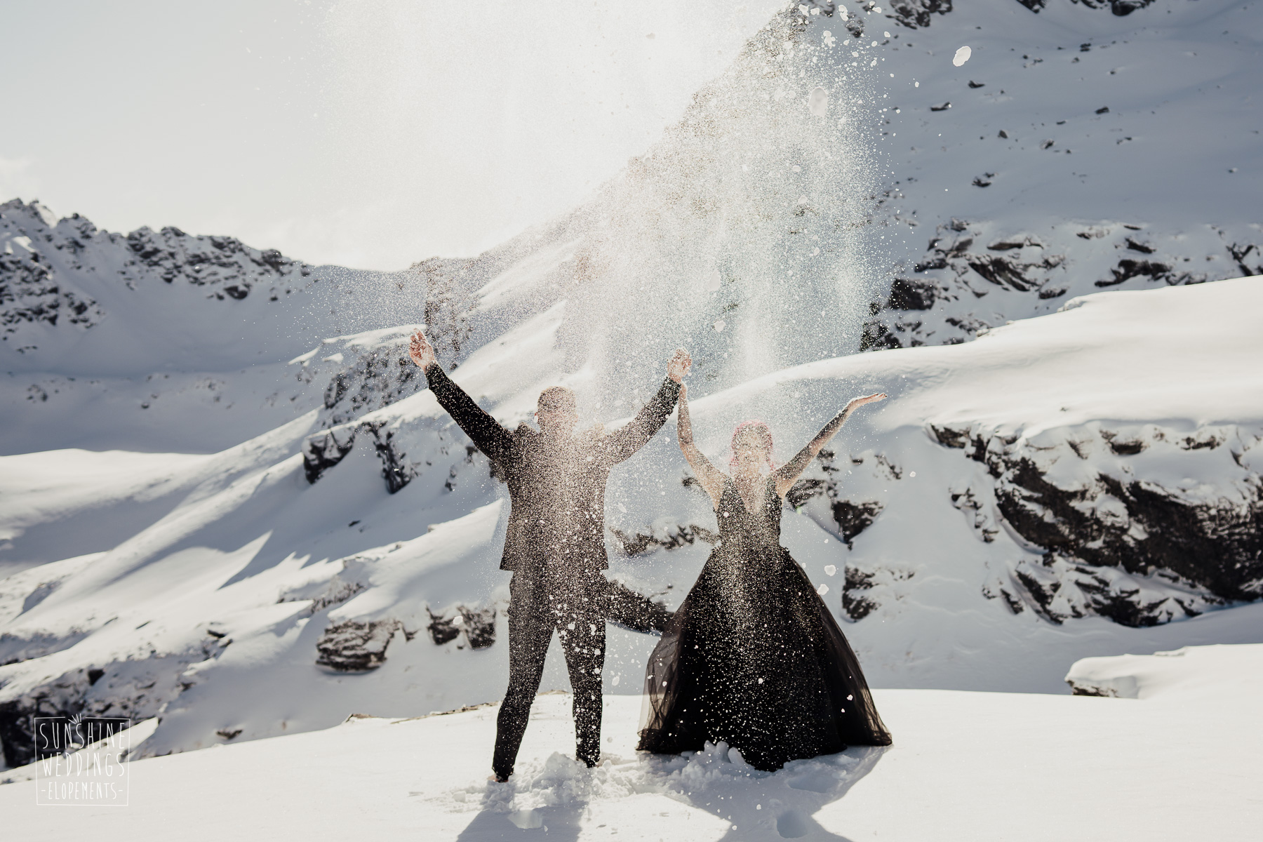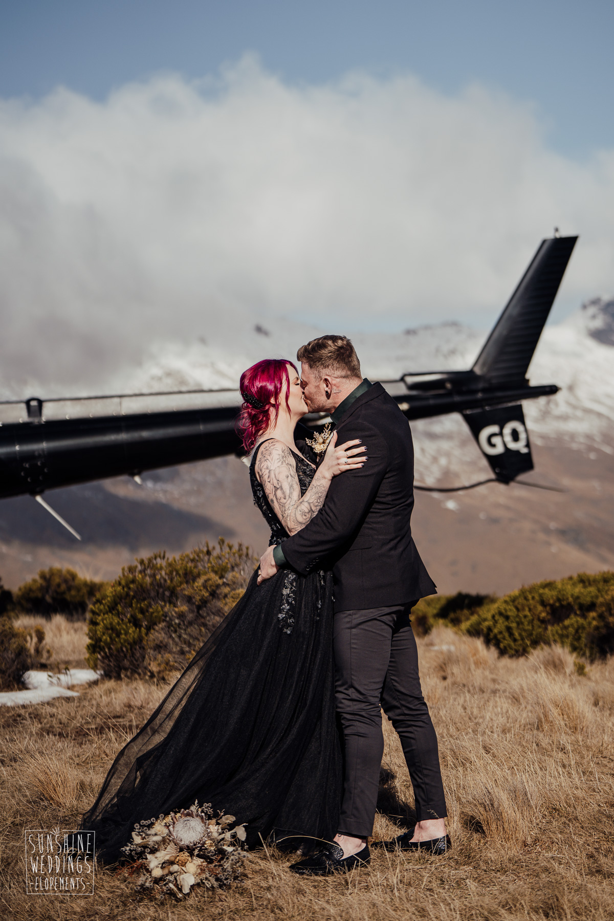 A blissed-out couple, gorgeous family, black dress, epic locations and serious wedding style all makes for an incredible Queenstown elopement and a very happy photographer! Their whole day was filled with laughter and a few hi-jinx with sneaky snowballs. Scott took them flying on a tiki-tour around the mountains and found a secret location in the middle of nowhere where no one had landed before, with plenty of fresh snow for a few more snowballs down the back. Loved it!