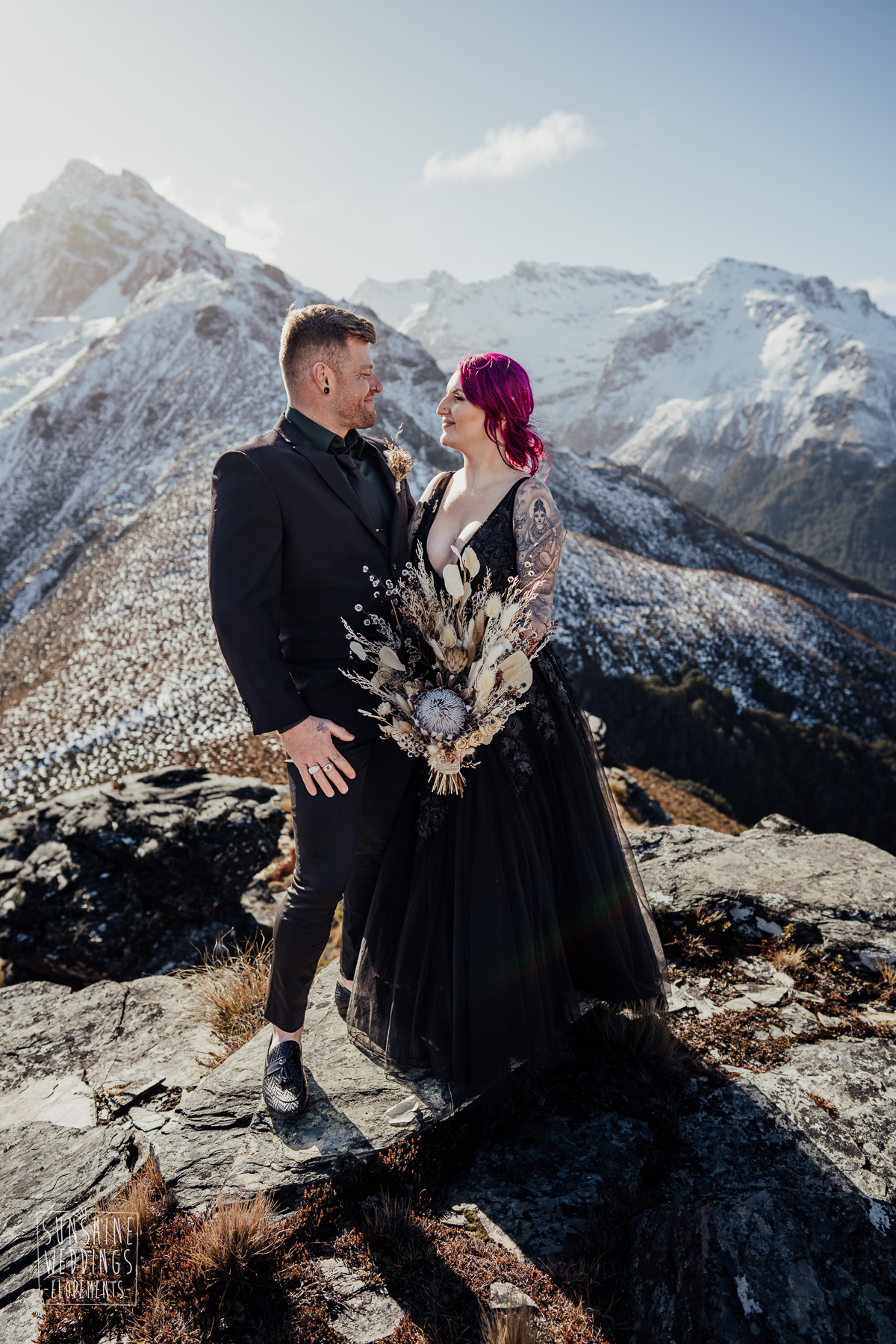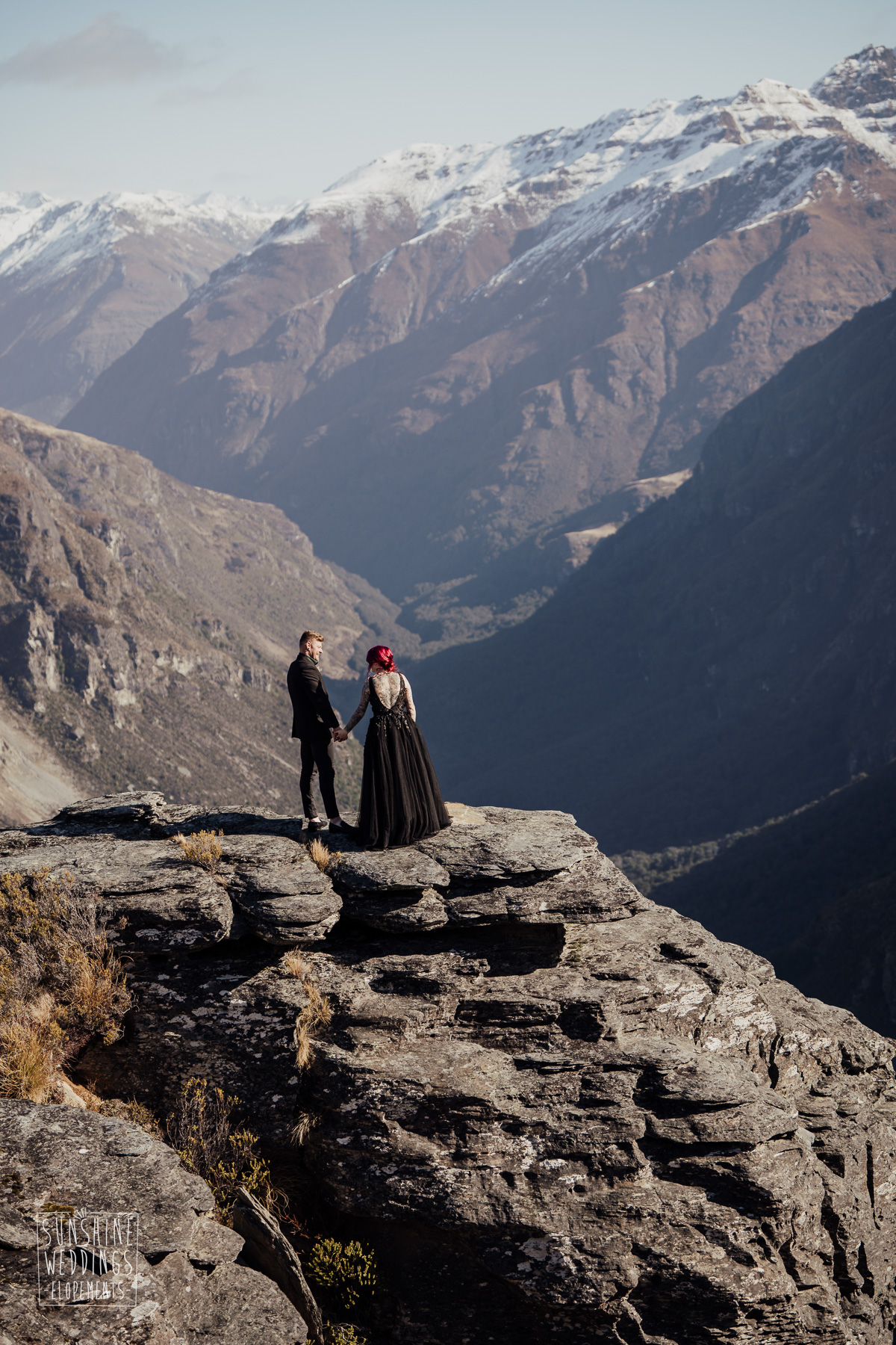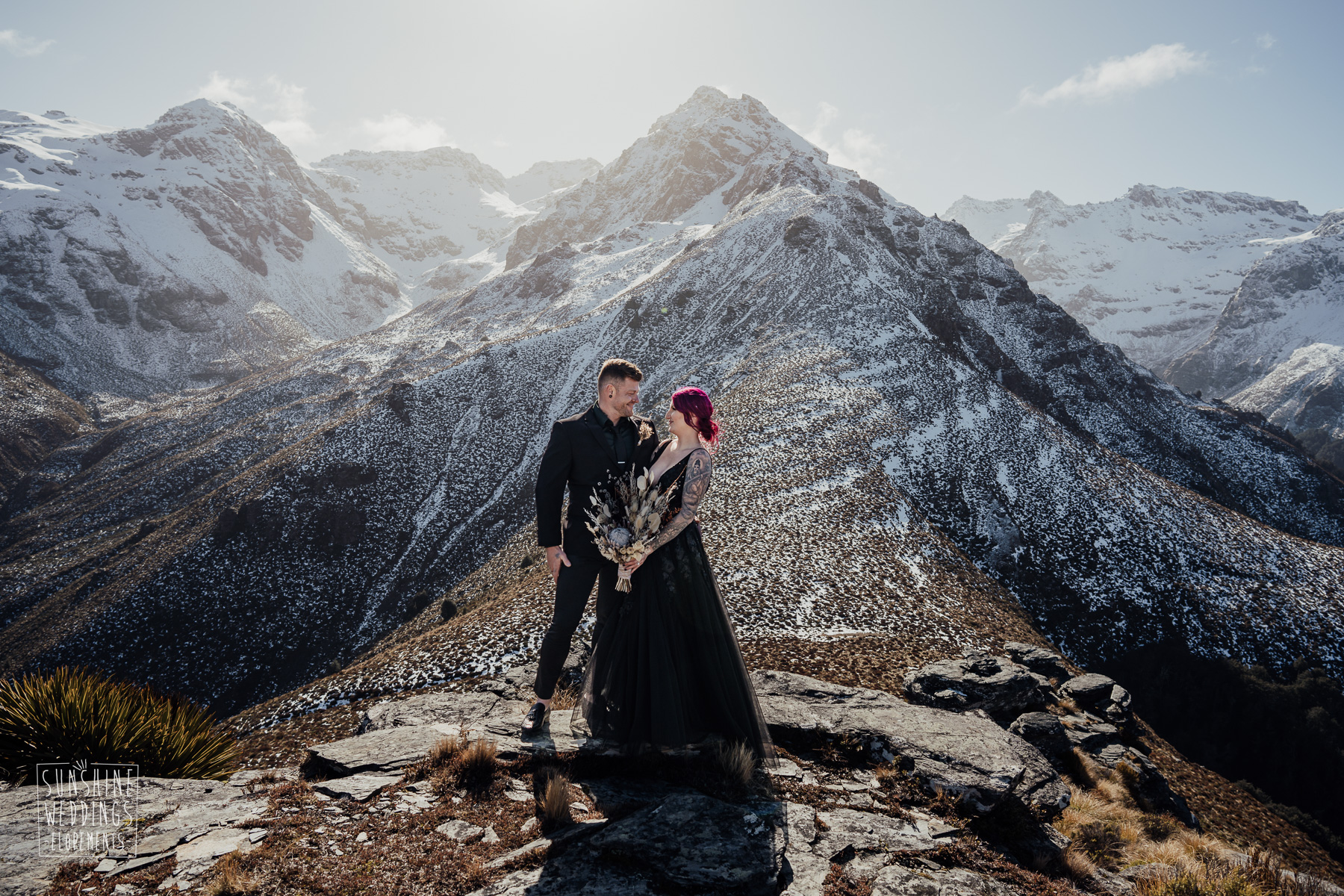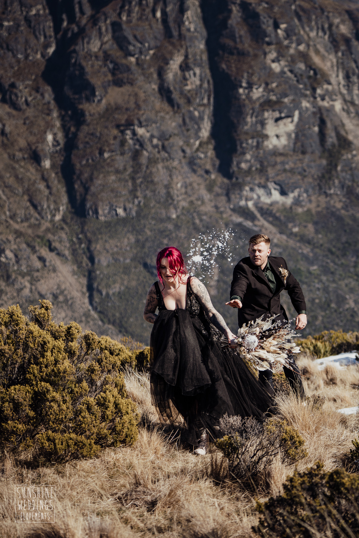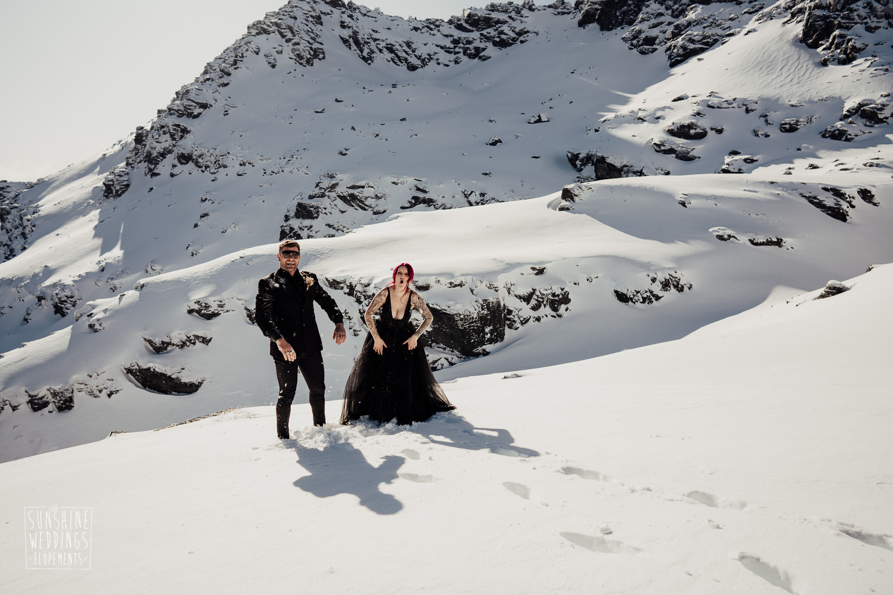 A blissed-out couple, gorgeous family, black dress, epic locations and serious wedding style all makes for an incredible Queenstown elopement and a very happy photographer! Their whole day was filled with laughter and a few hi-jinx with sneaky snowballs. Scott took them flying on a tiki-tour around the mountains and found a secret location in the middle of nowhere where no one had landed before, with plenty of fresh snow for a few more snowballs down the back. Loved it!
