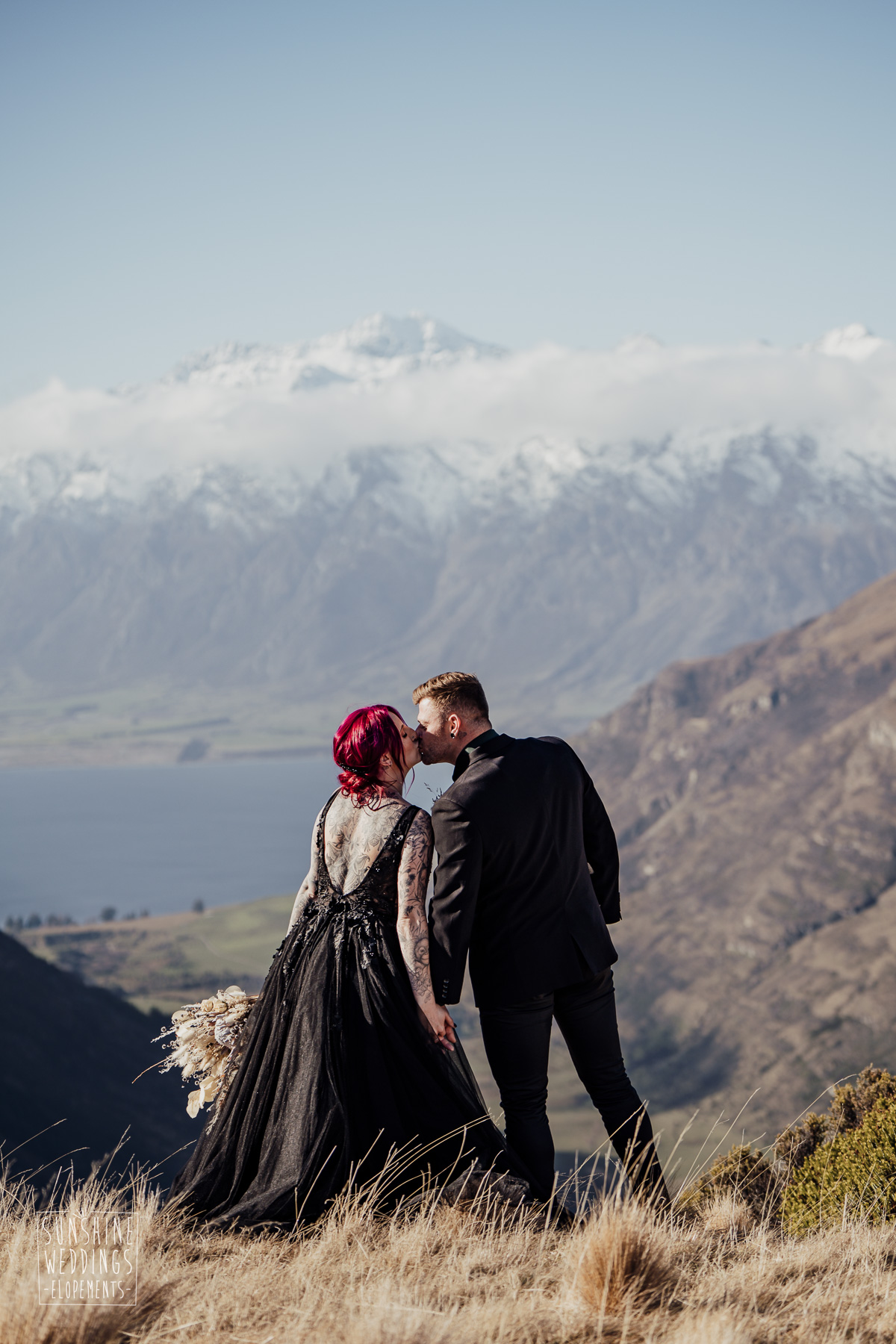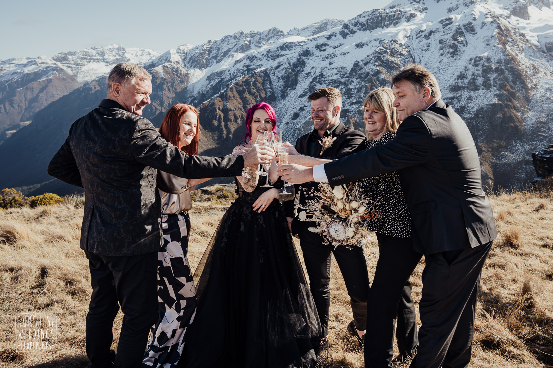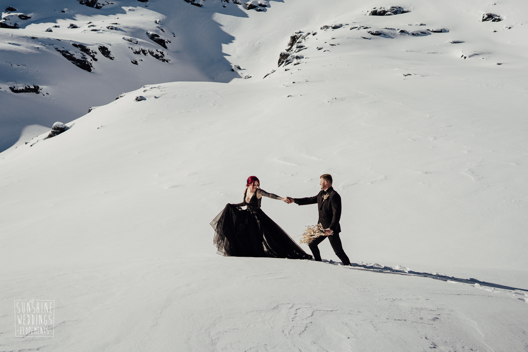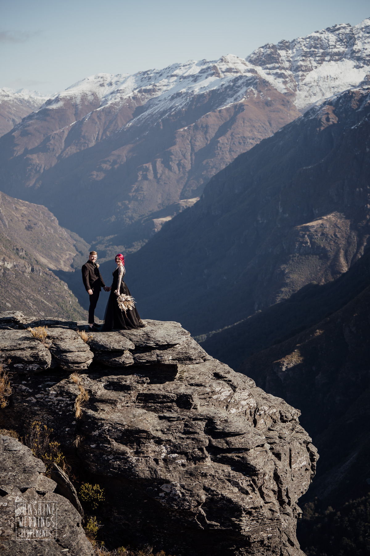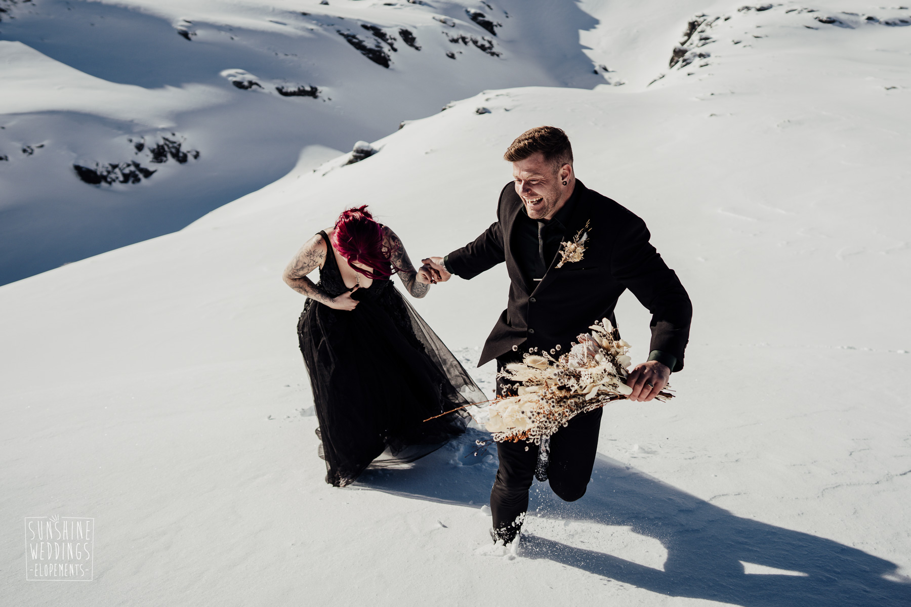 A blissed-out couple, gorgeous family, black dress, epic locations and serious wedding style all makes for an incredible Queenstown elopement and a very happy photographer! Their whole day was filled with laughter and a few hi-jinx with sneaky snowballs. Scott took them flying on a tiki-tour around the mountains and found a secret location in the middle of nowhere where no one had landed before, with plenty of fresh snow for a few more snowballs down the back. Loved it!