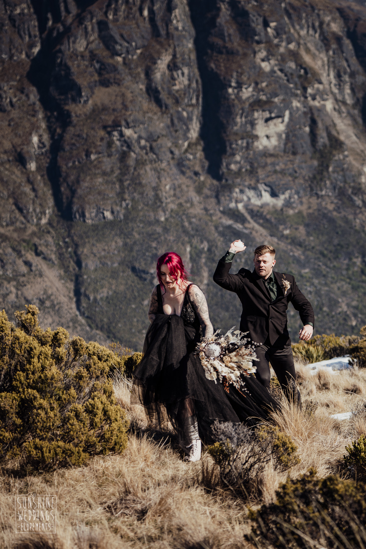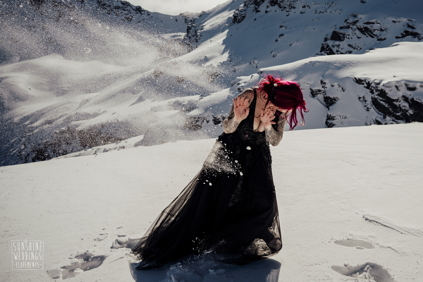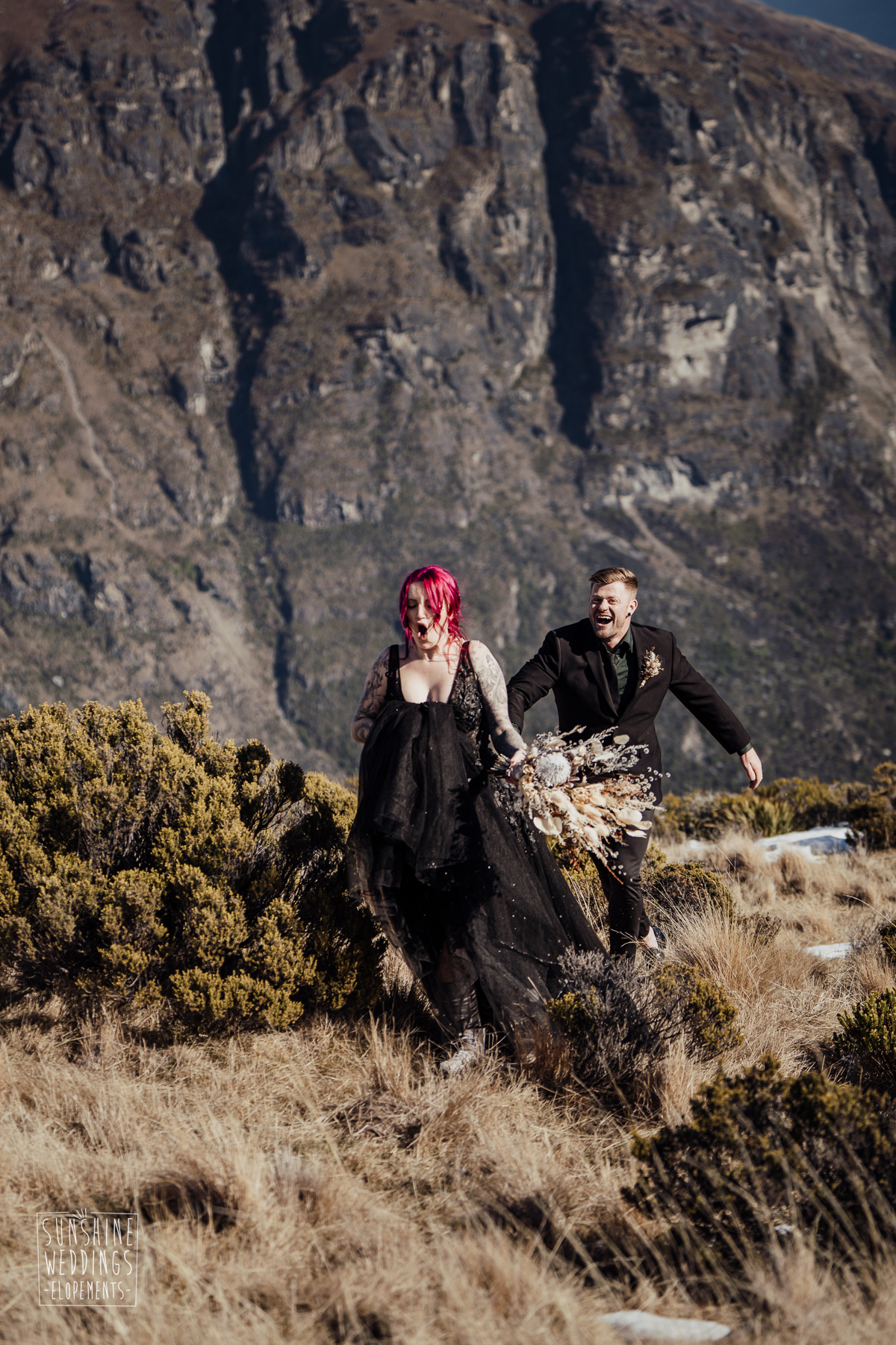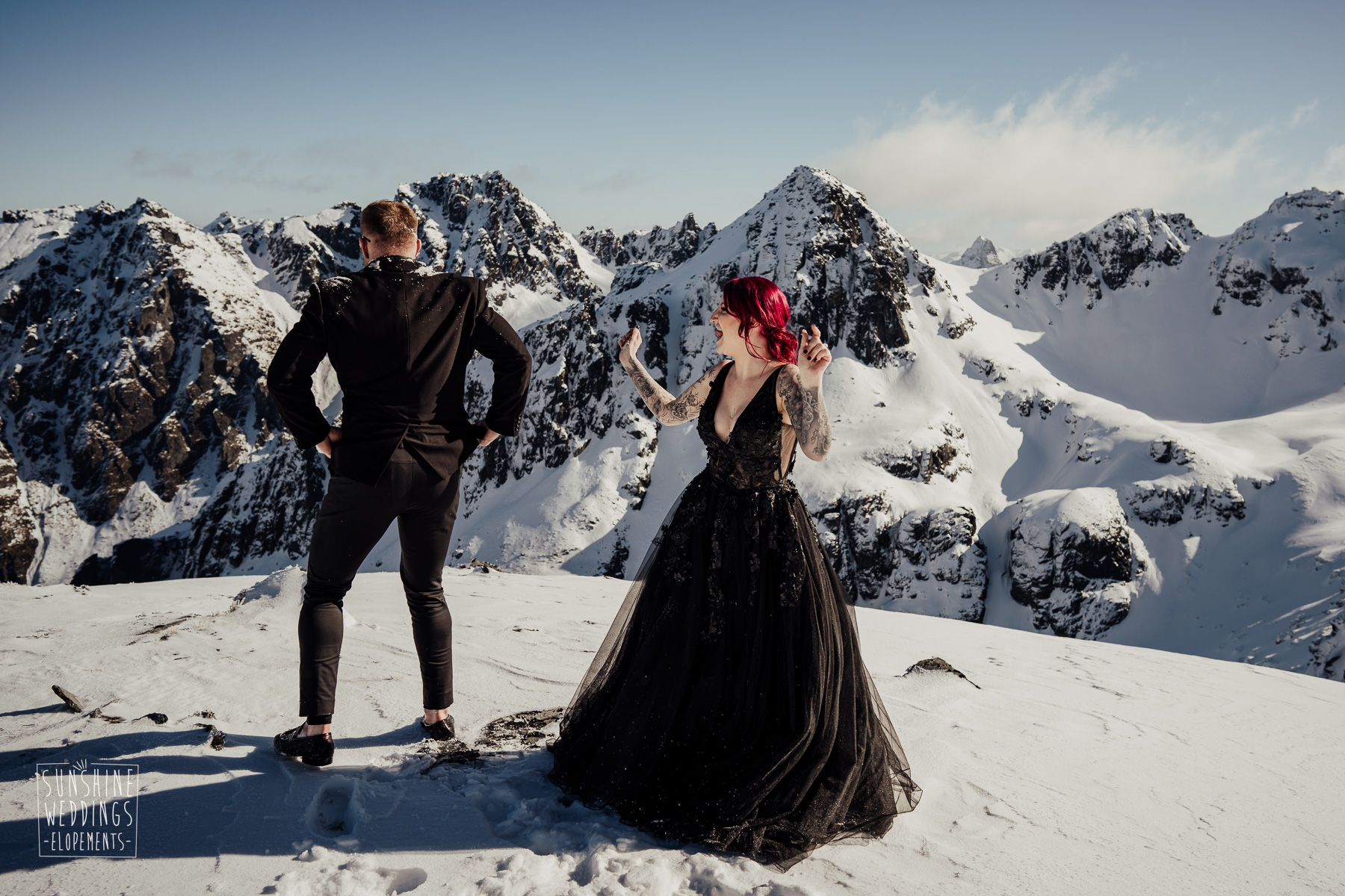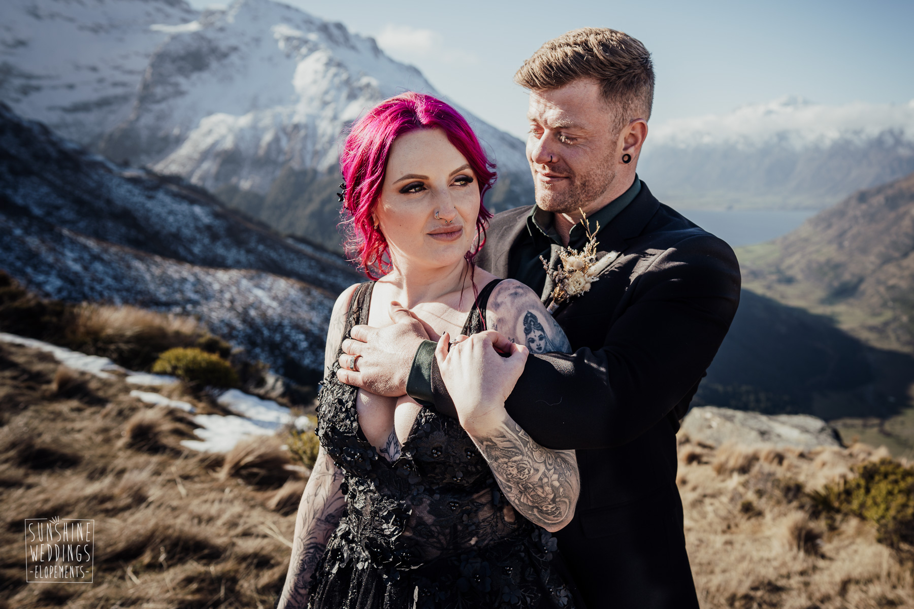 A blissed-out couple, gorgeous family, black dress, epic locations and serious wedding style all makes for an incredible Queenstown elopement and a very happy photographer! Their whole day was filled with laughter and a few hi-jinx with sneaky snowballs. Scott took them flying on a tiki-tour around the mountains and found a secret location in the middle of nowhere where no one had landed before, with plenty of fresh snow for a few more snowballs down the back. Loved it!