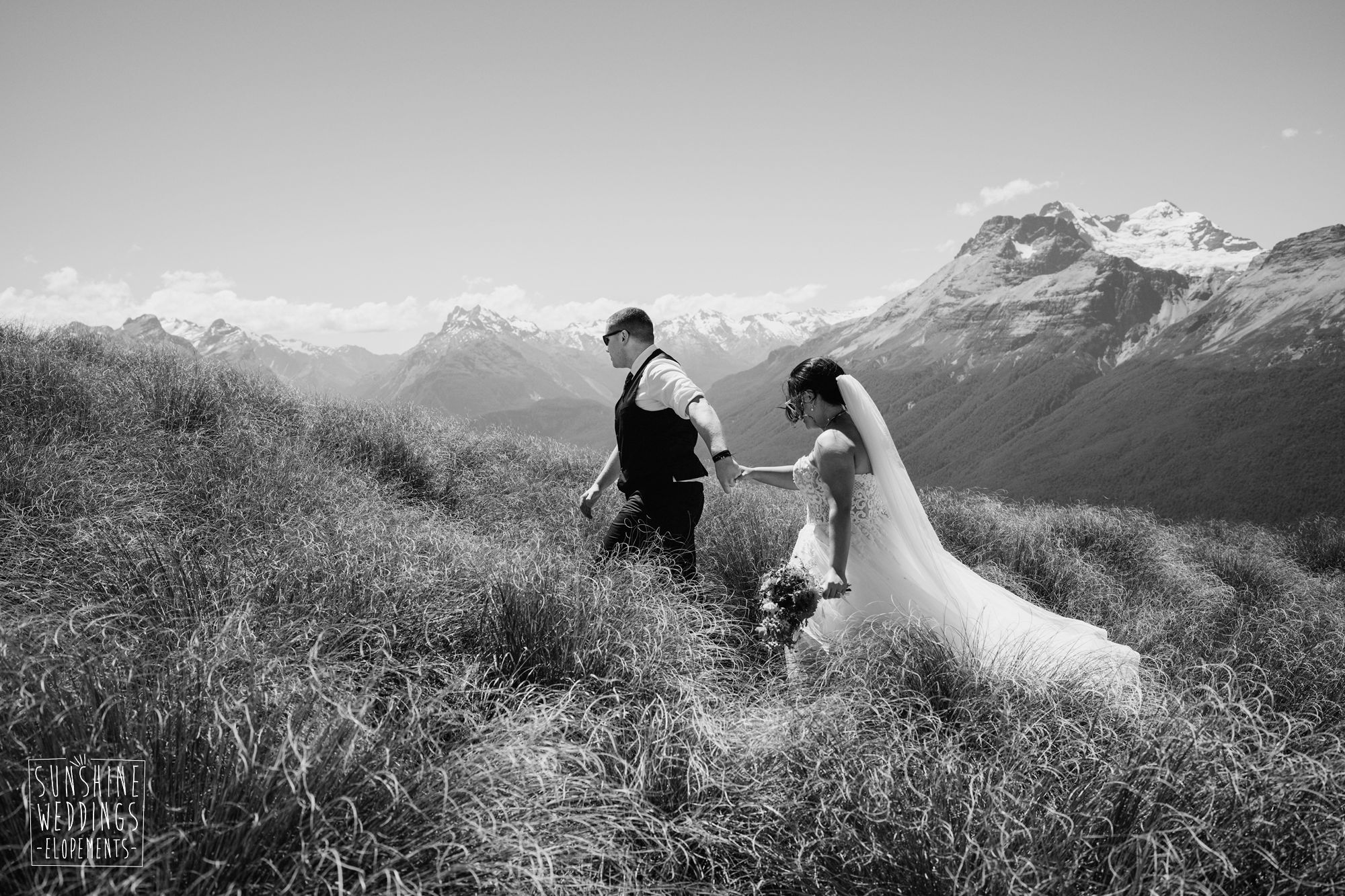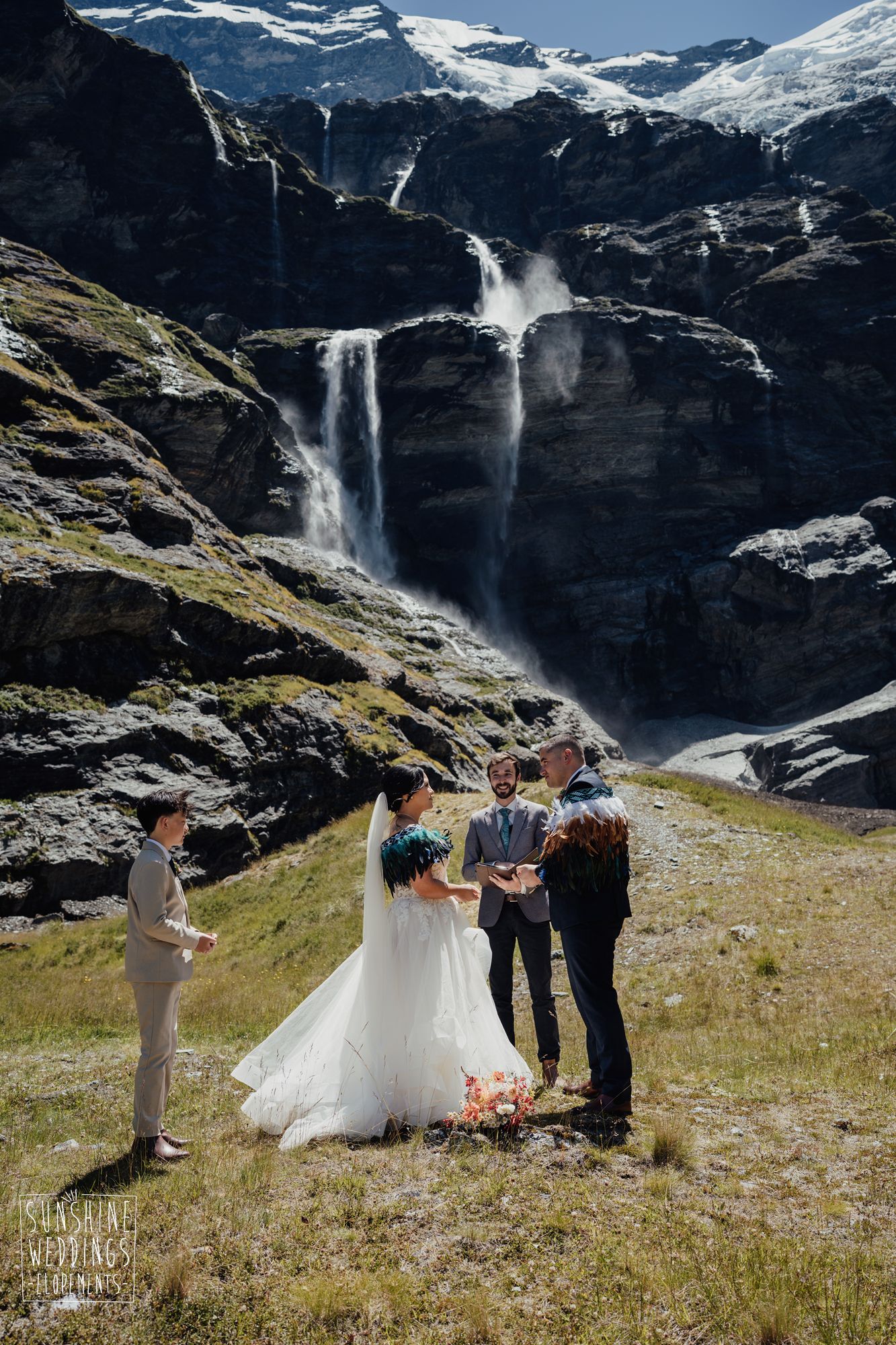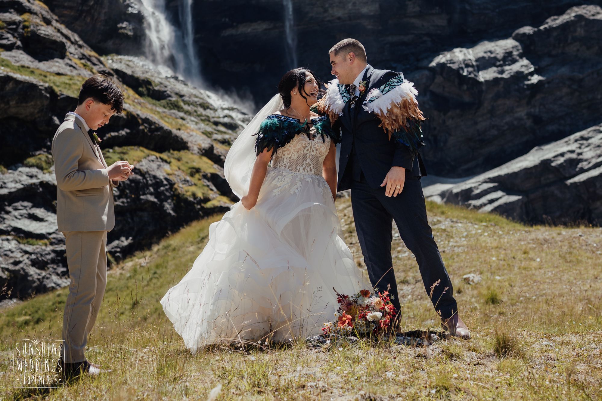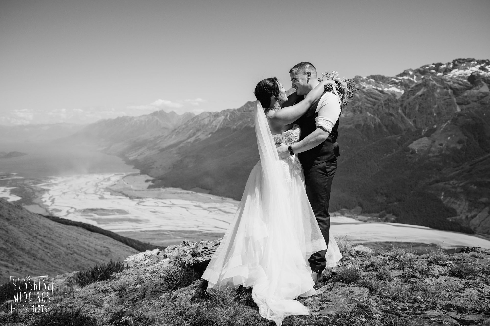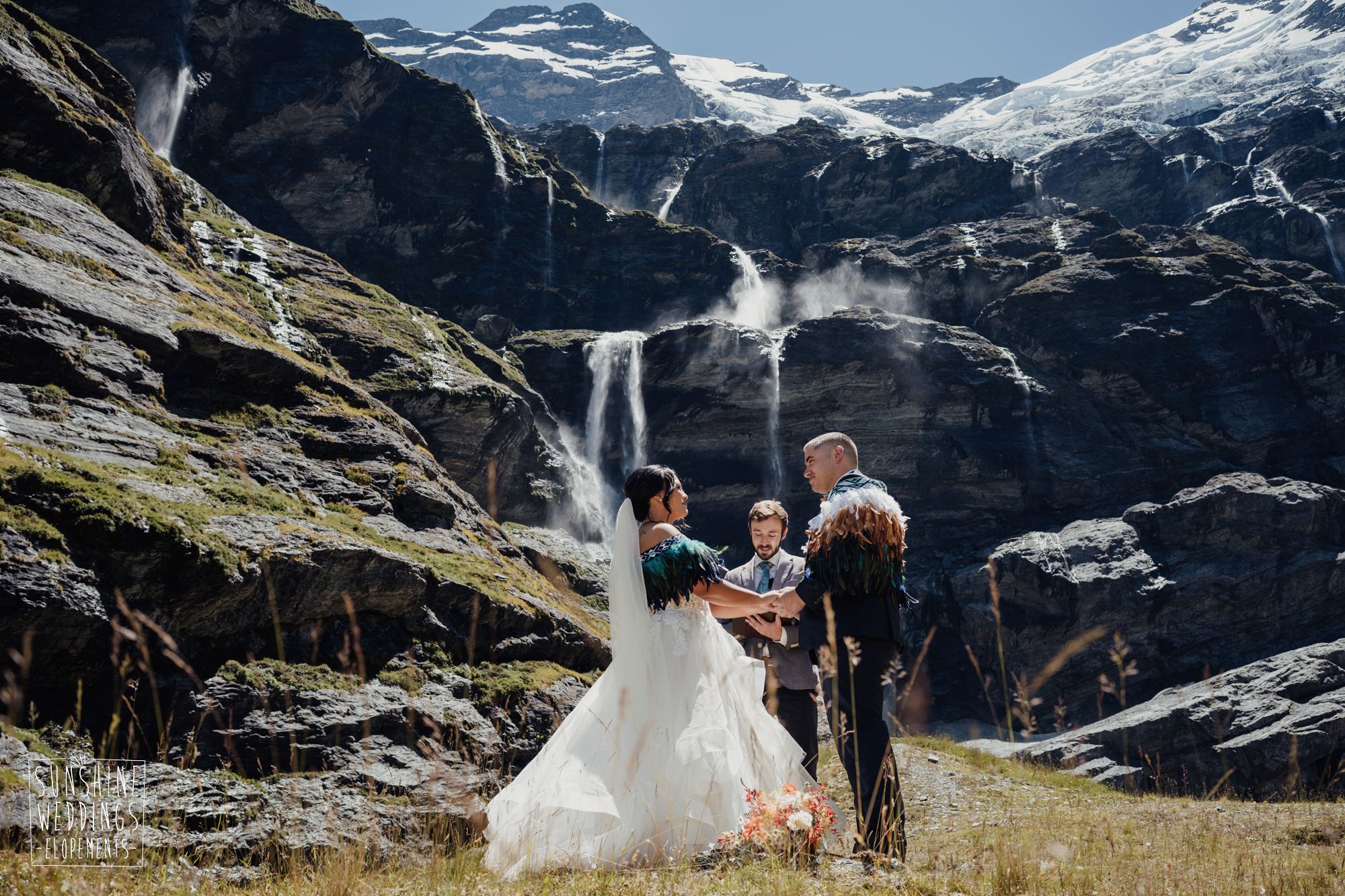 Rawinia and Ryan wanted to elope and share an incredible adventure with their son in some of our favourite locations. It was a wedding full of heart and all about family. Starting with some happy tears with an emotional first look at their accommodation then a helicopter flight to Earnslaw Burn to exchange vows under the watchful eye of Earnslaw Glacier. Next, another flight to Mt Alfred with wide views up the Dart and Rees Valleys. We loved being a part of this one!