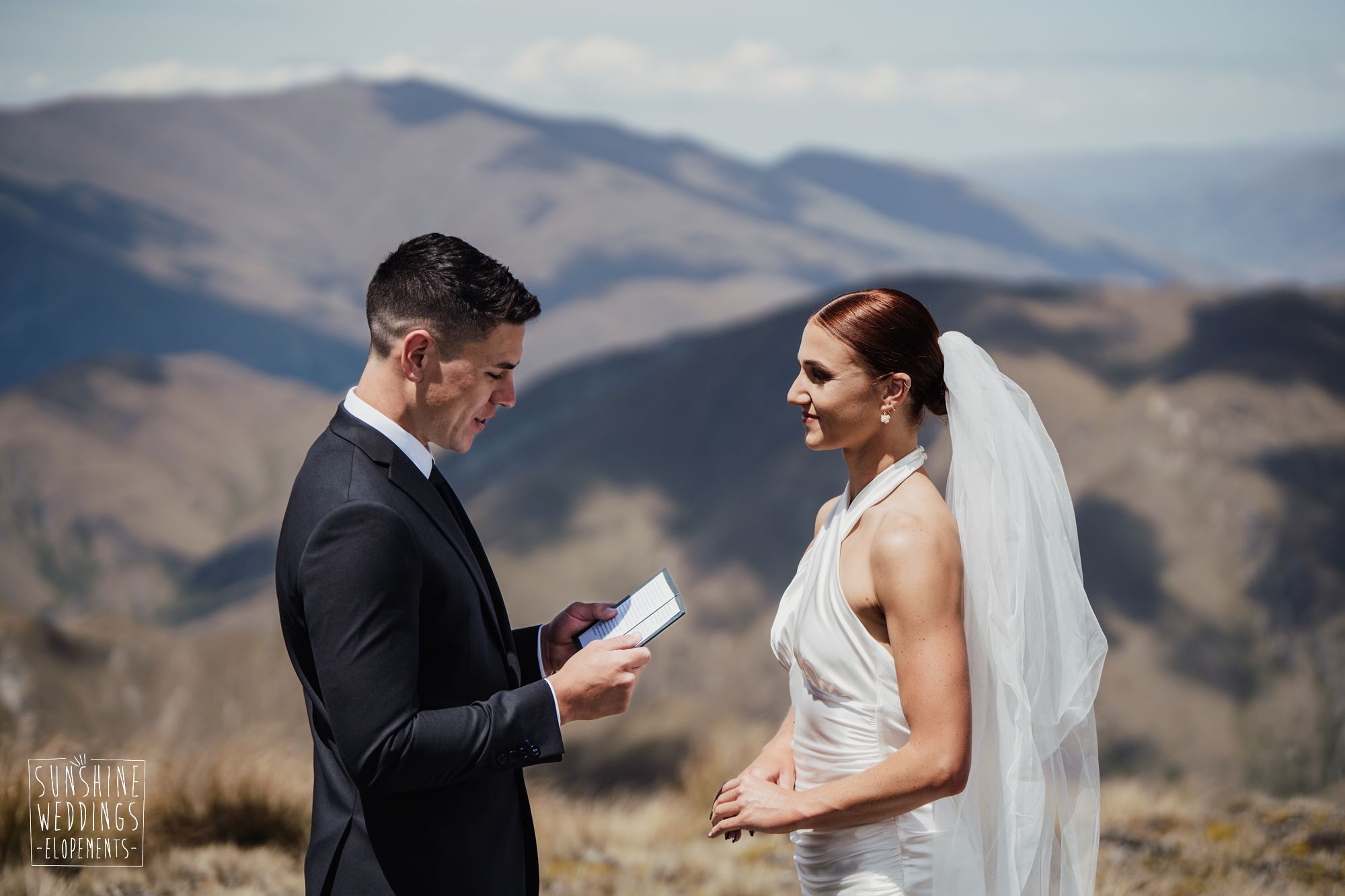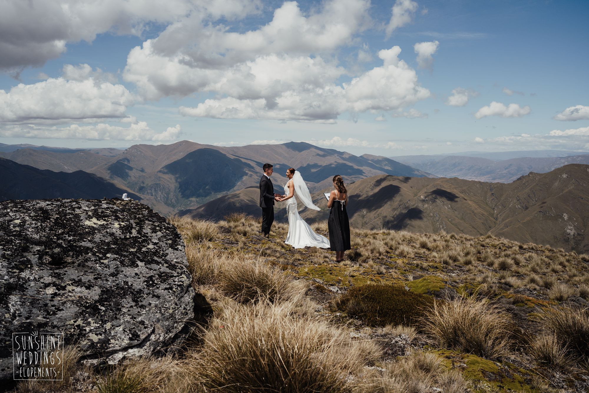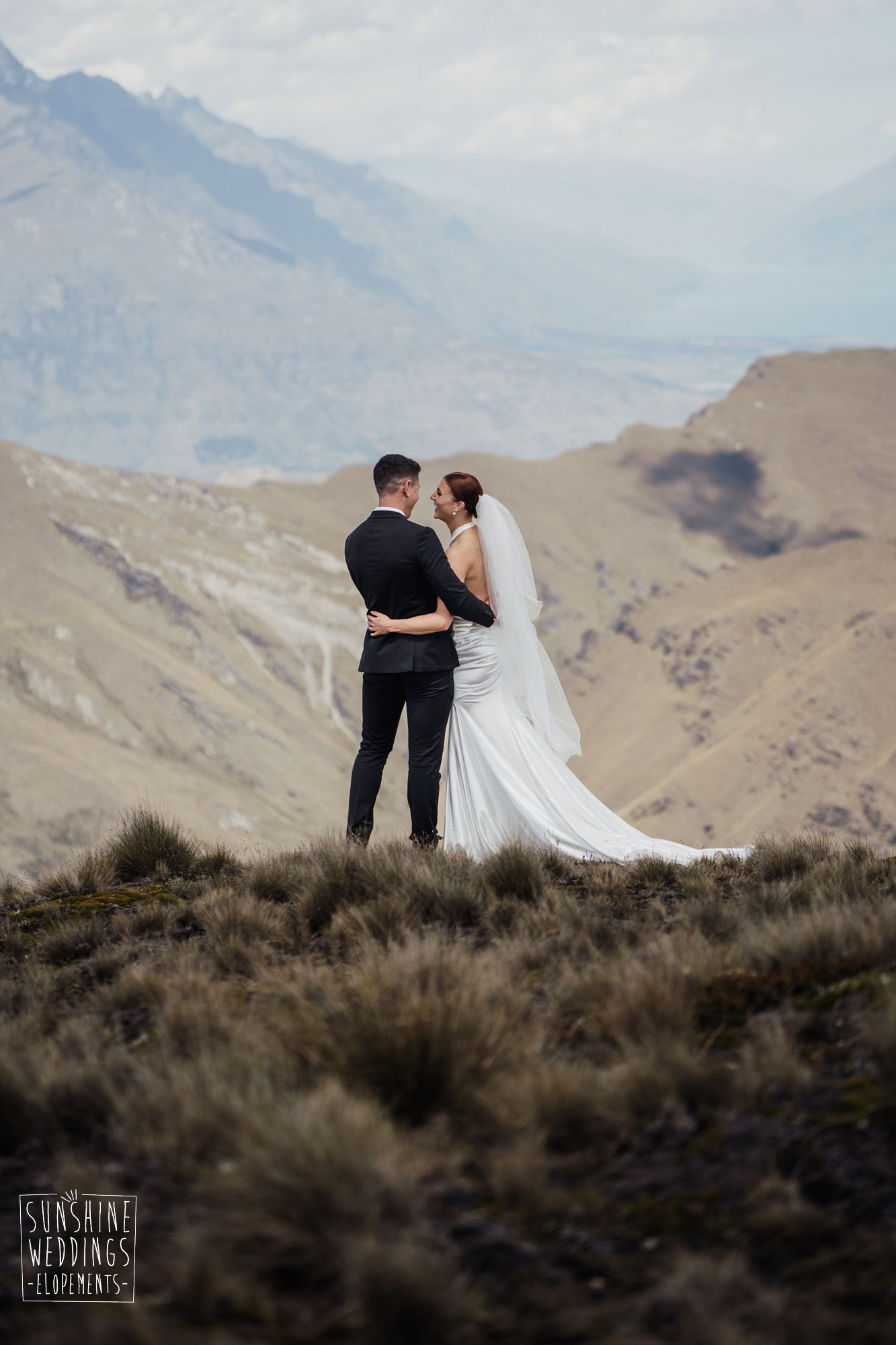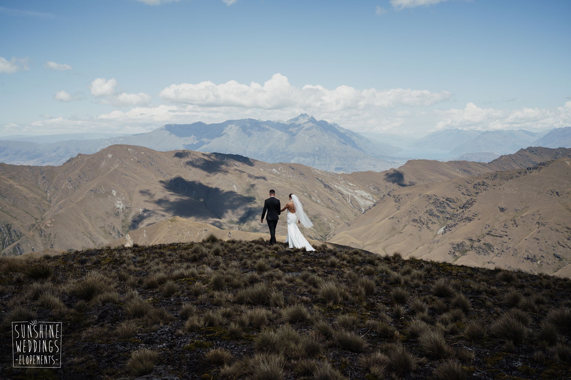 The wonderful thing about eloping is that they don’t need to be complicated. it’s just about two people exchanging vows and if they can do it in an extraordinary setting, then even better! Ruby’s and Sam did just that with their simple elopement at Vanguard Peak near Queenstown. With rolling hills, golden tussocks and hazy mountains making a spectacular backdrop.