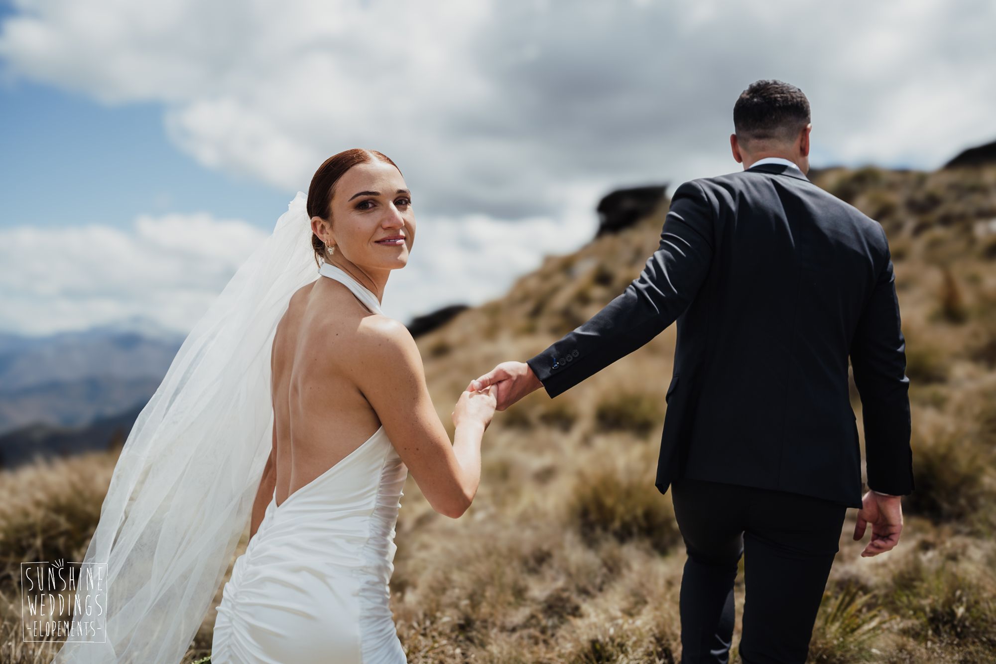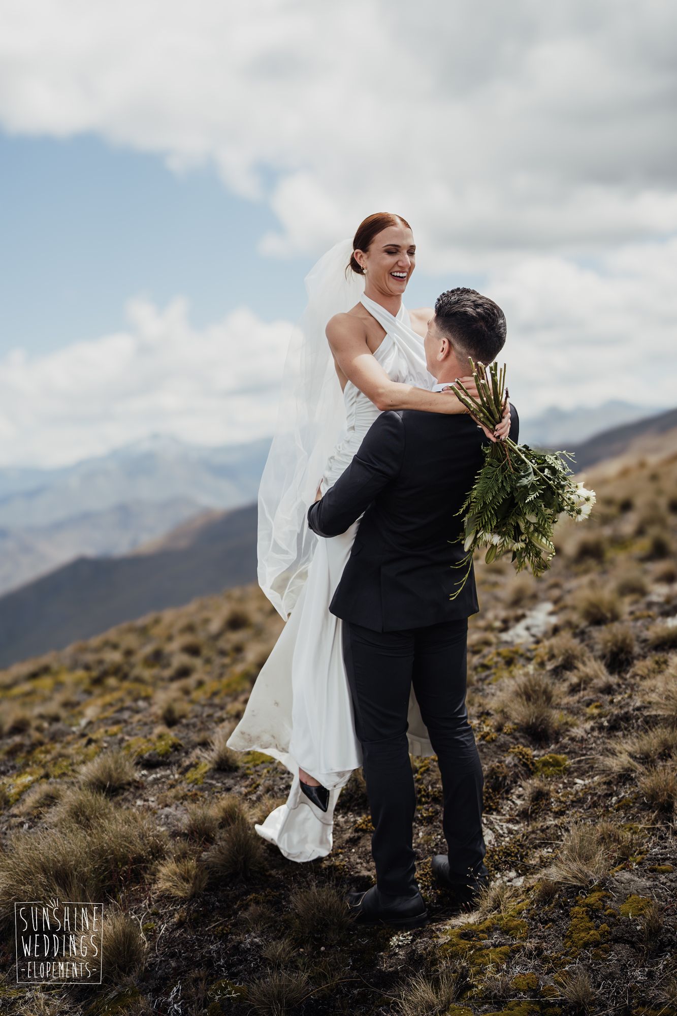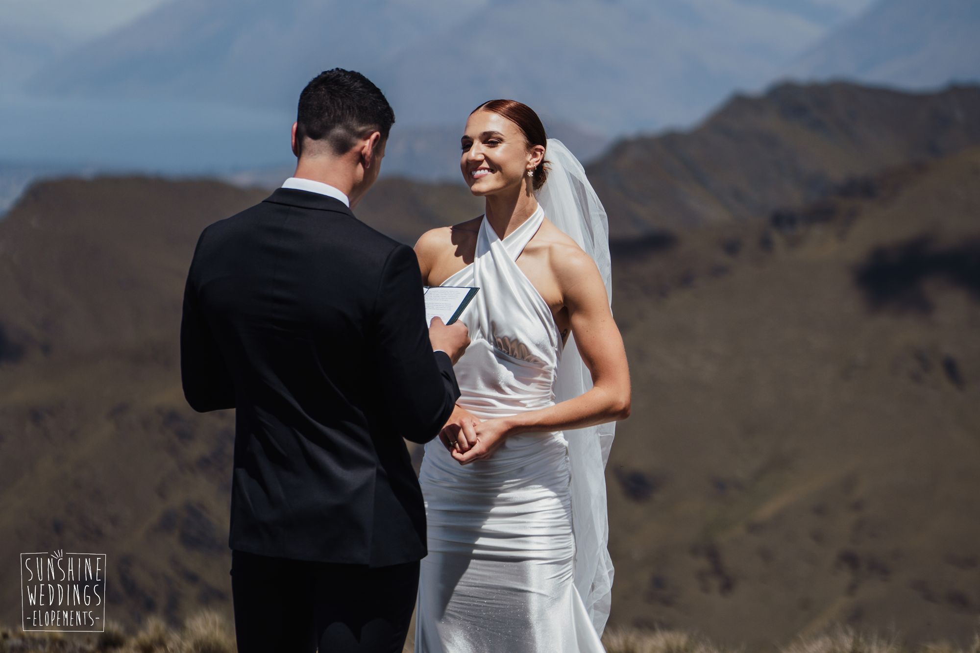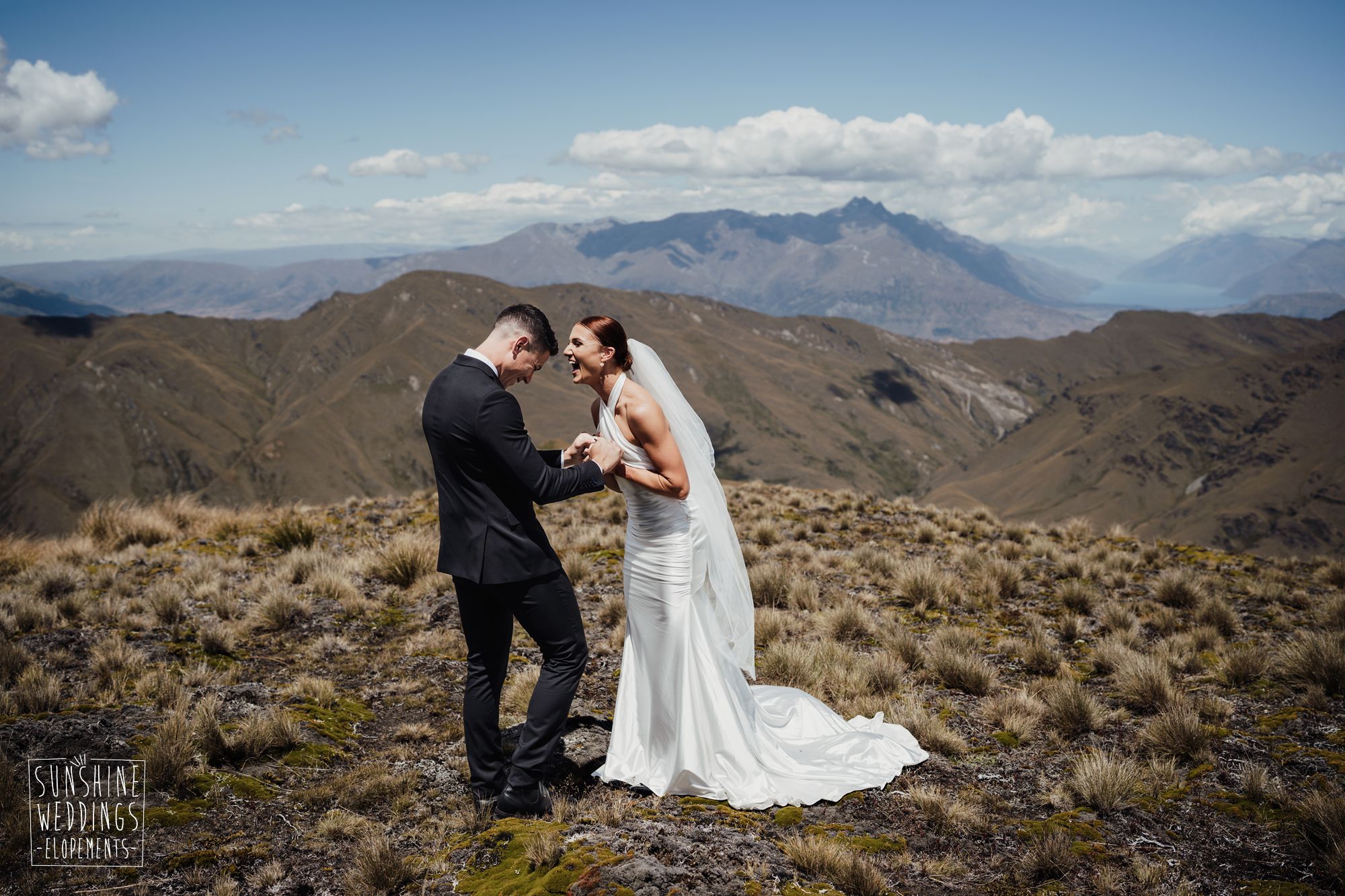 The wonderful thing about eloping is that they don’t need to be complicated. it’s just about two people exchanging vows and if they can do it in an extraordinary setting, then even better! Ruby’s and Sam did just that with their simple elopement at Vanguard Peak near Queenstown. With rolling hills, golden tussocks and hazy mountains making a spectacular backdrop.