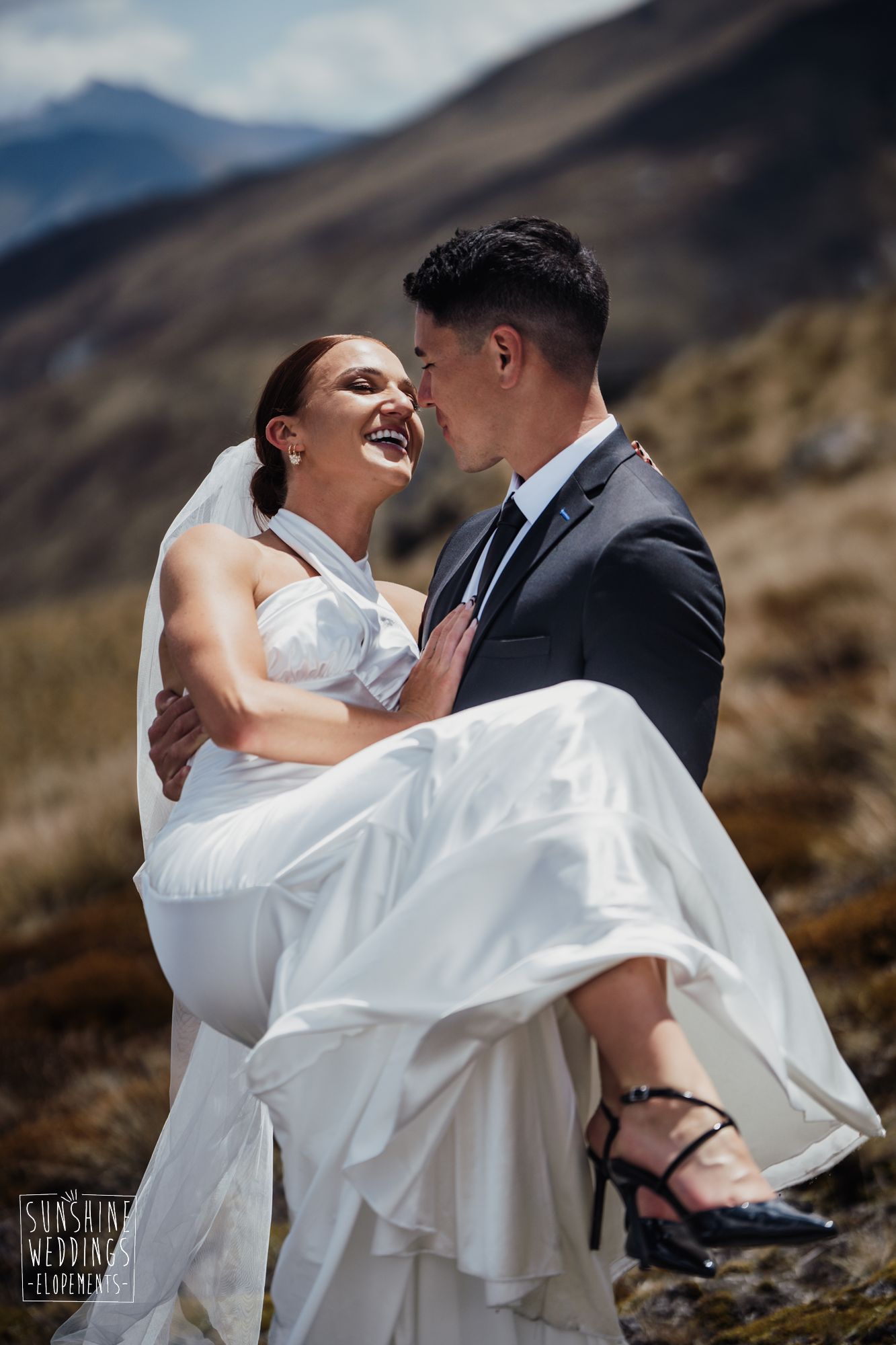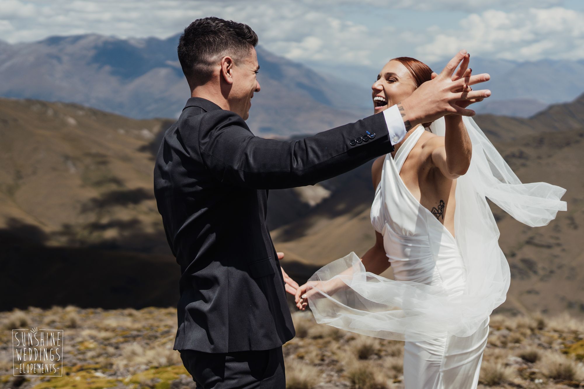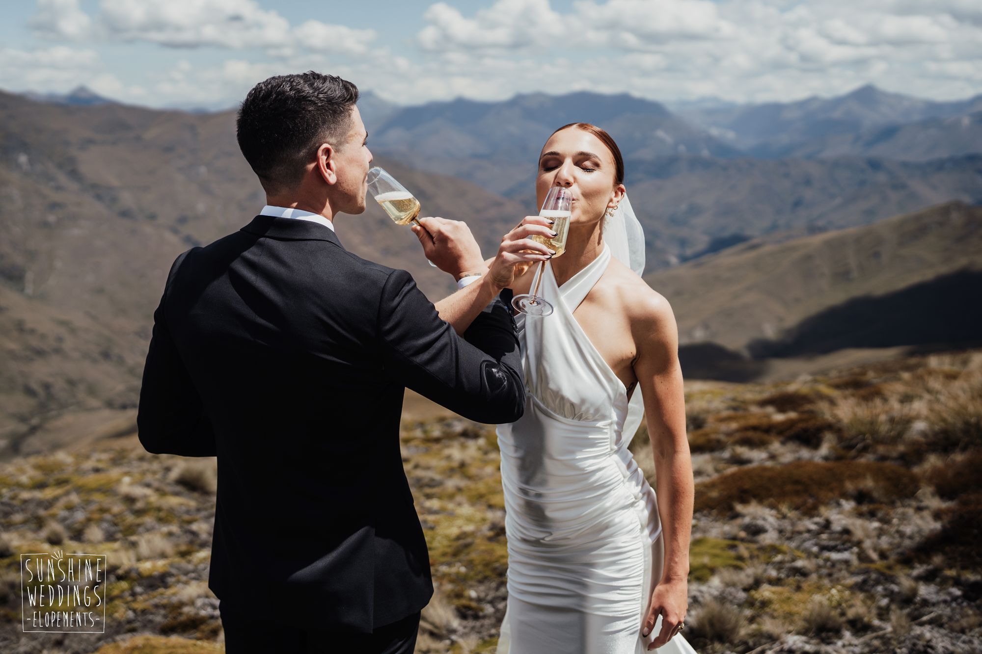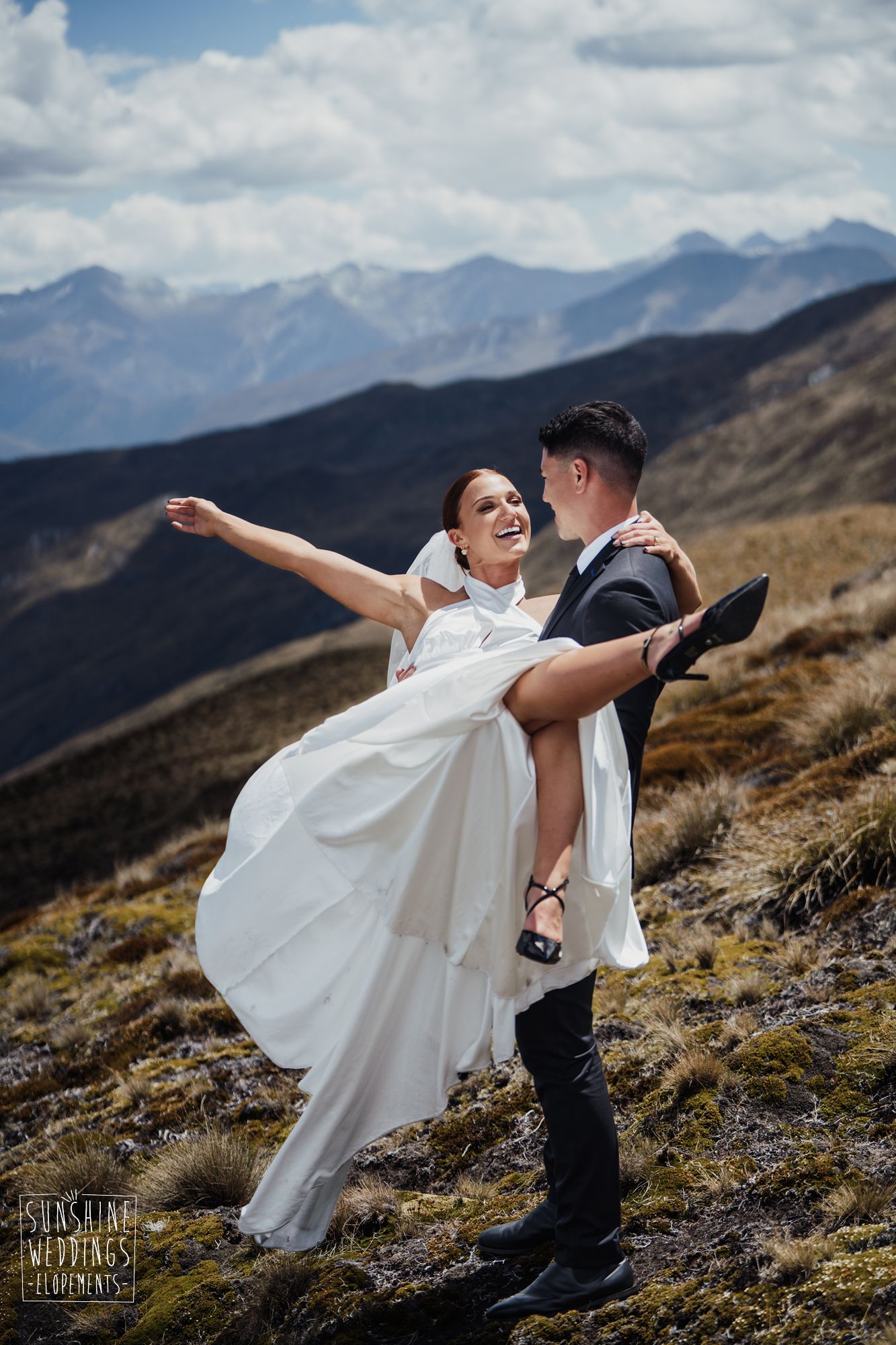 The wonderful thing about eloping is that they don’t need to be complicated. it’s just about two people exchanging vows and if they can do it in an extraordinary setting, then even better! Ruby’s and Sam did just that with their simple elopement at Vanguard Peak near Queenstown. With rolling hills, golden tussocks and hazy mountains making a spectacular backdrop.