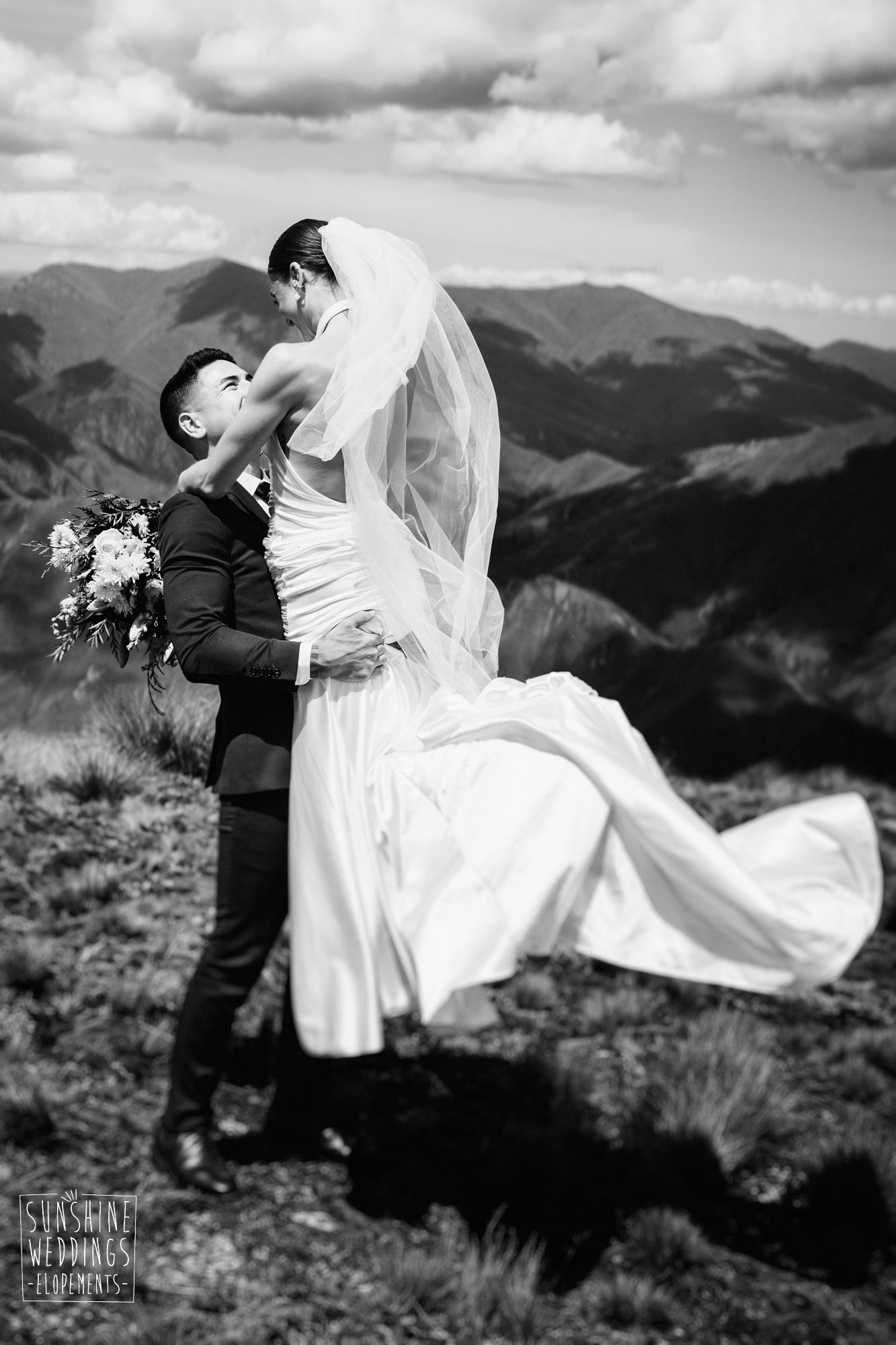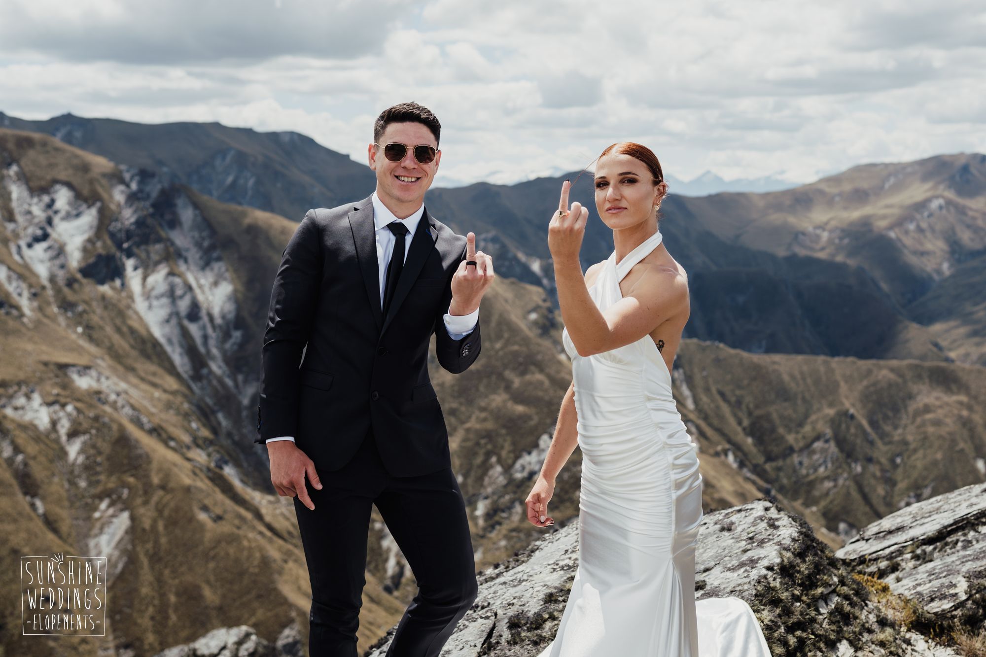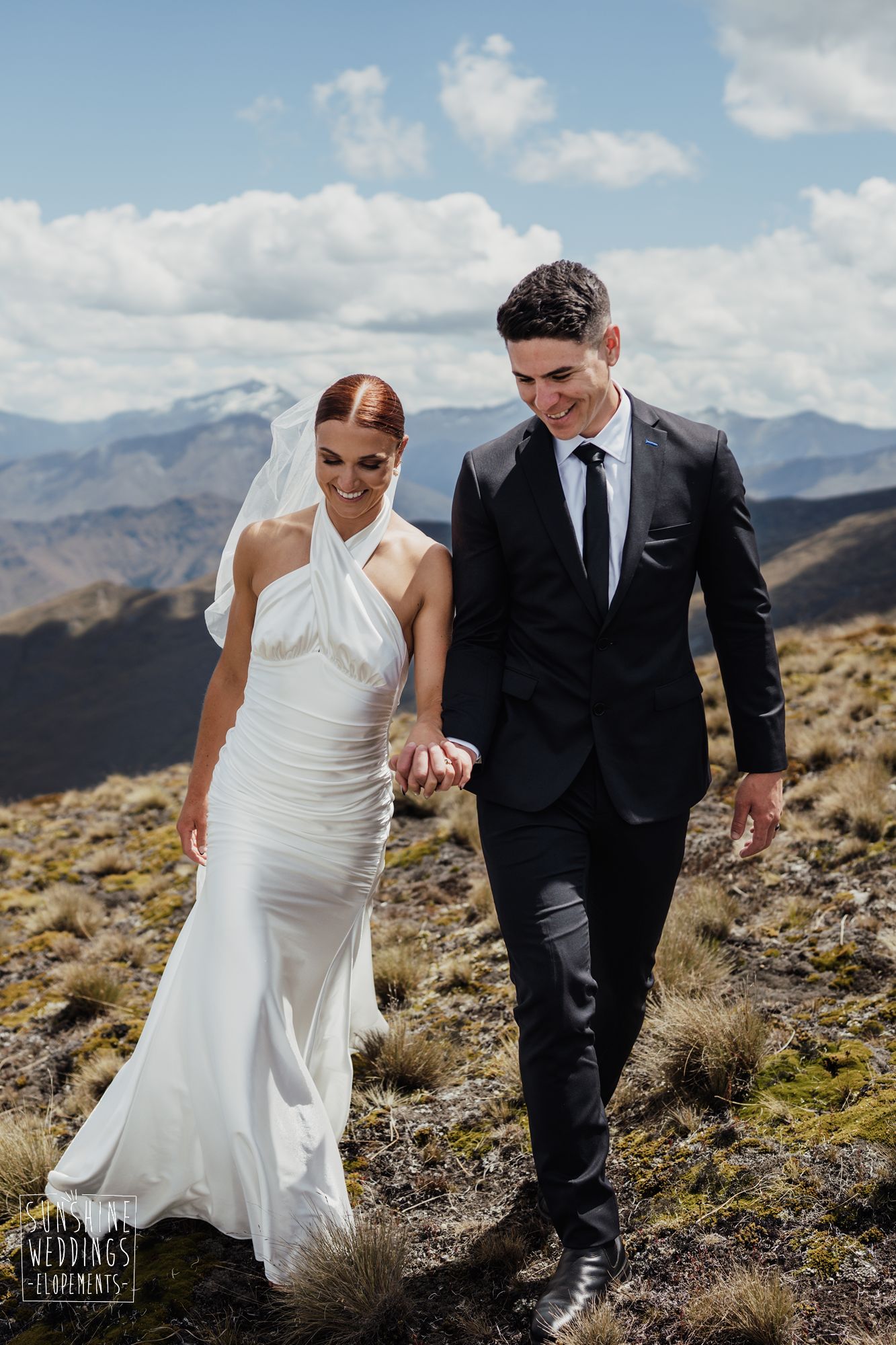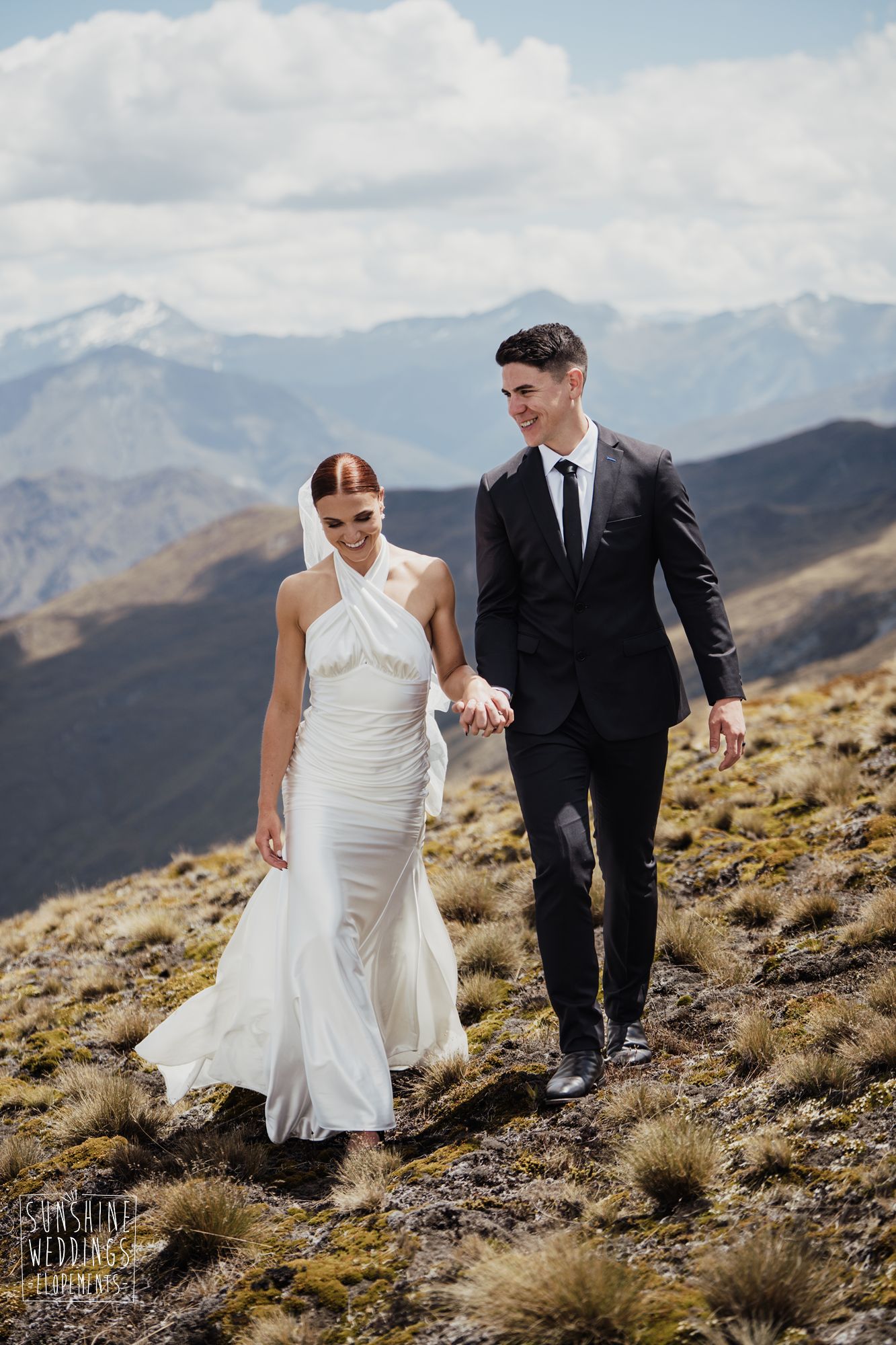 The wonderful thing about eloping is that they don’t need to be complicated. it’s just about two people exchanging vows and if they can do it in an extraordinary setting, then even better! Ruby’s and Sam did just that with their simple elopement at Vanguard Peak near Queenstown. With rolling hills, golden tussocks and hazy mountains making a spectacular backdrop.