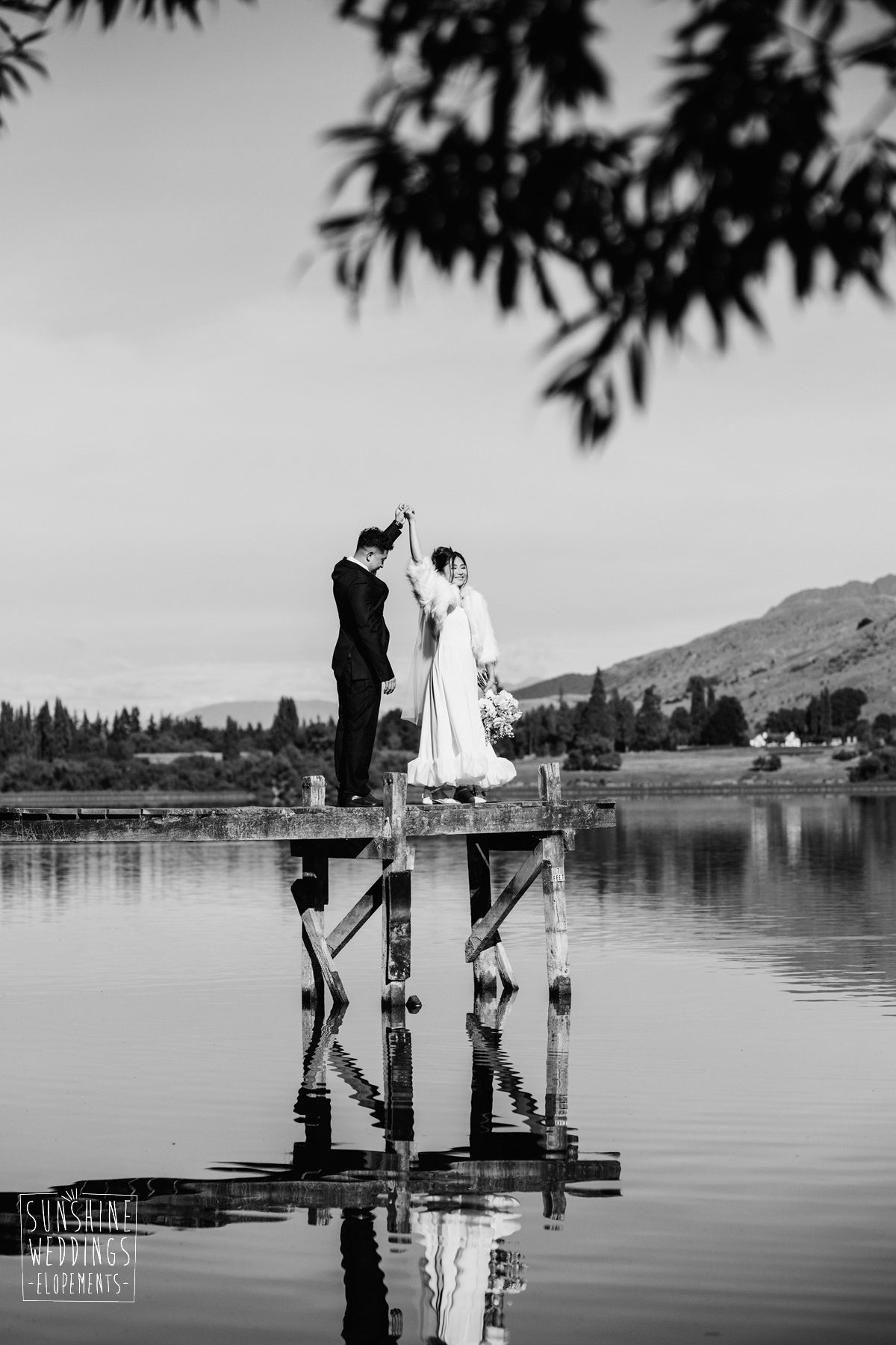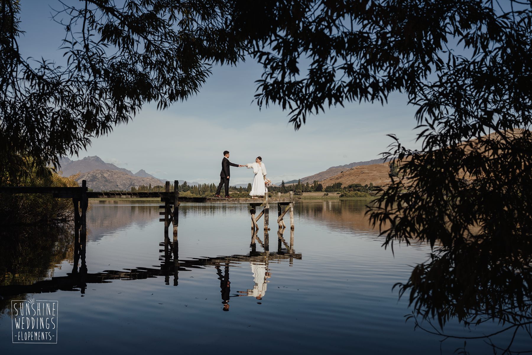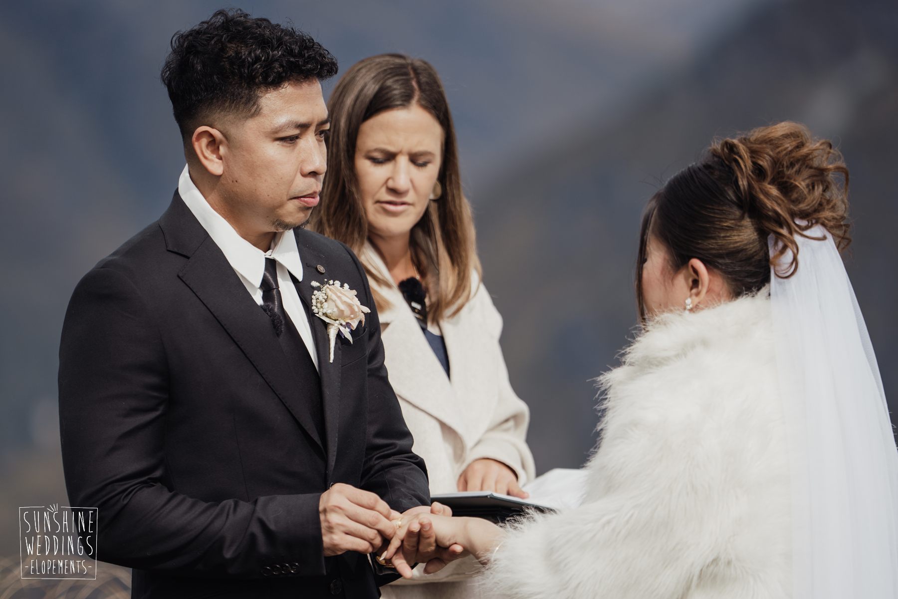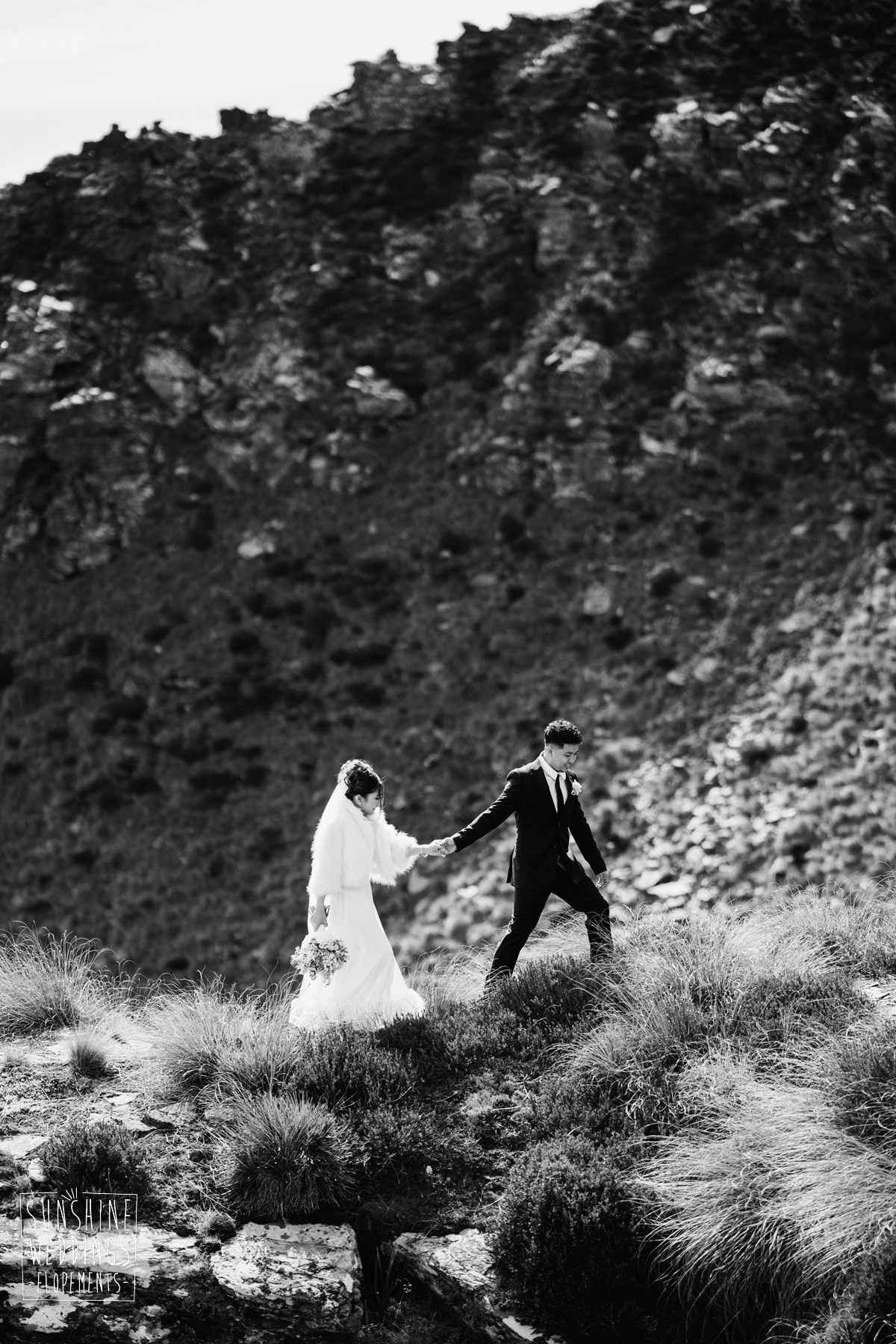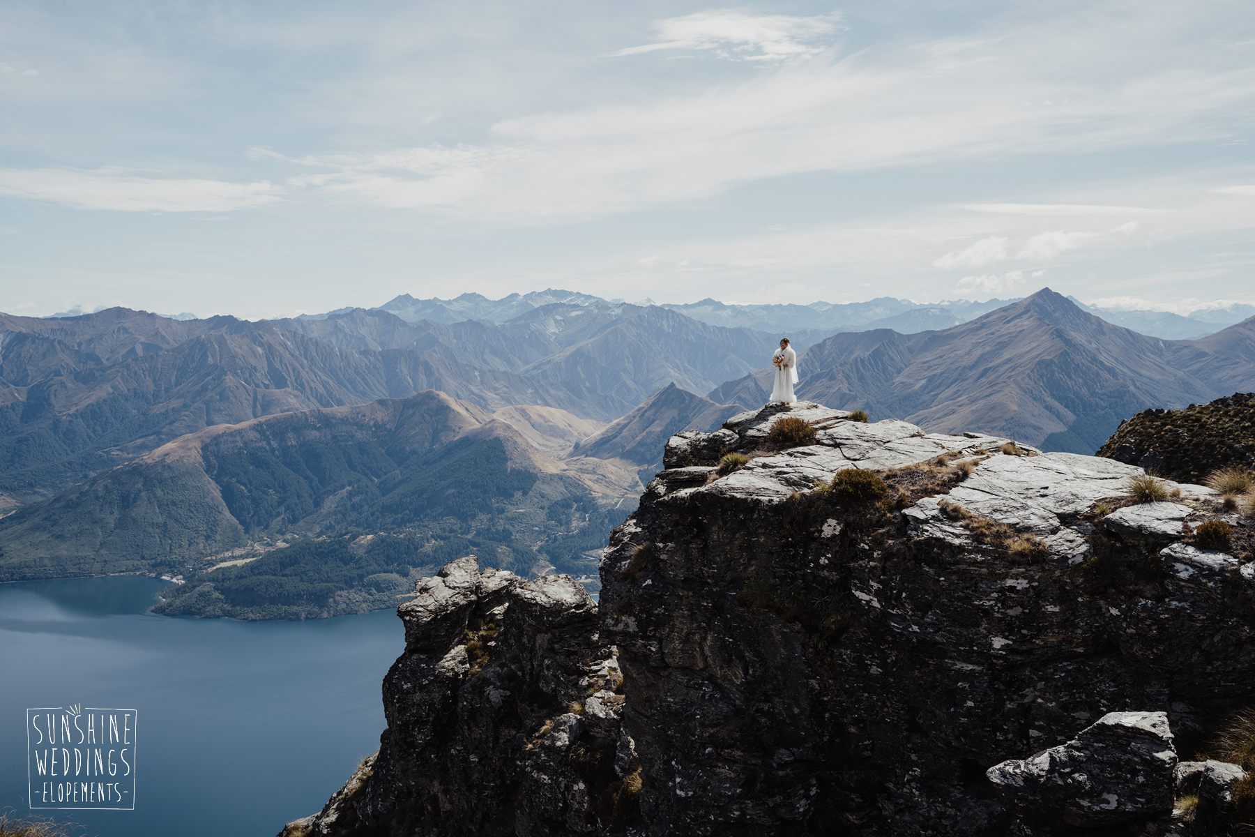 If we’re asked directly when is the best time to elope, we’ll always say Autumn. The sun is low and the light is soft and golden. As it was for Sharmaine and Daniel who had their very own glow going on. Scott collected them from their accommodation for a few photos before the flight, before flying up to Russ’s Drop landing location on Cecil Peak.
