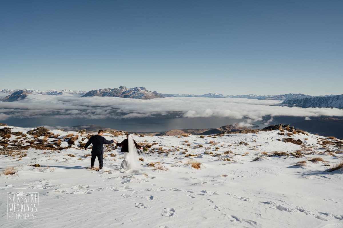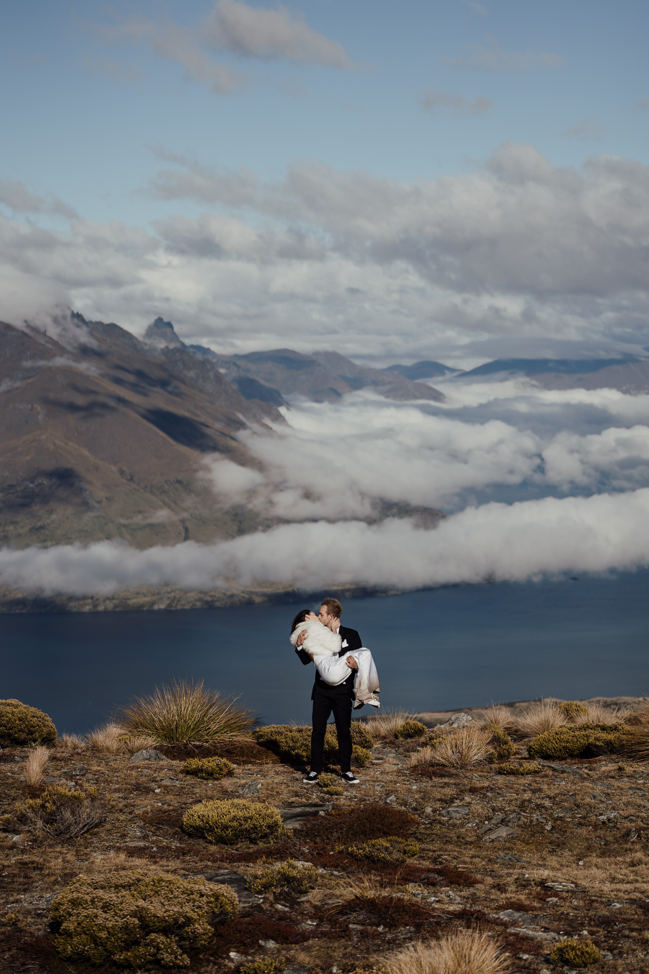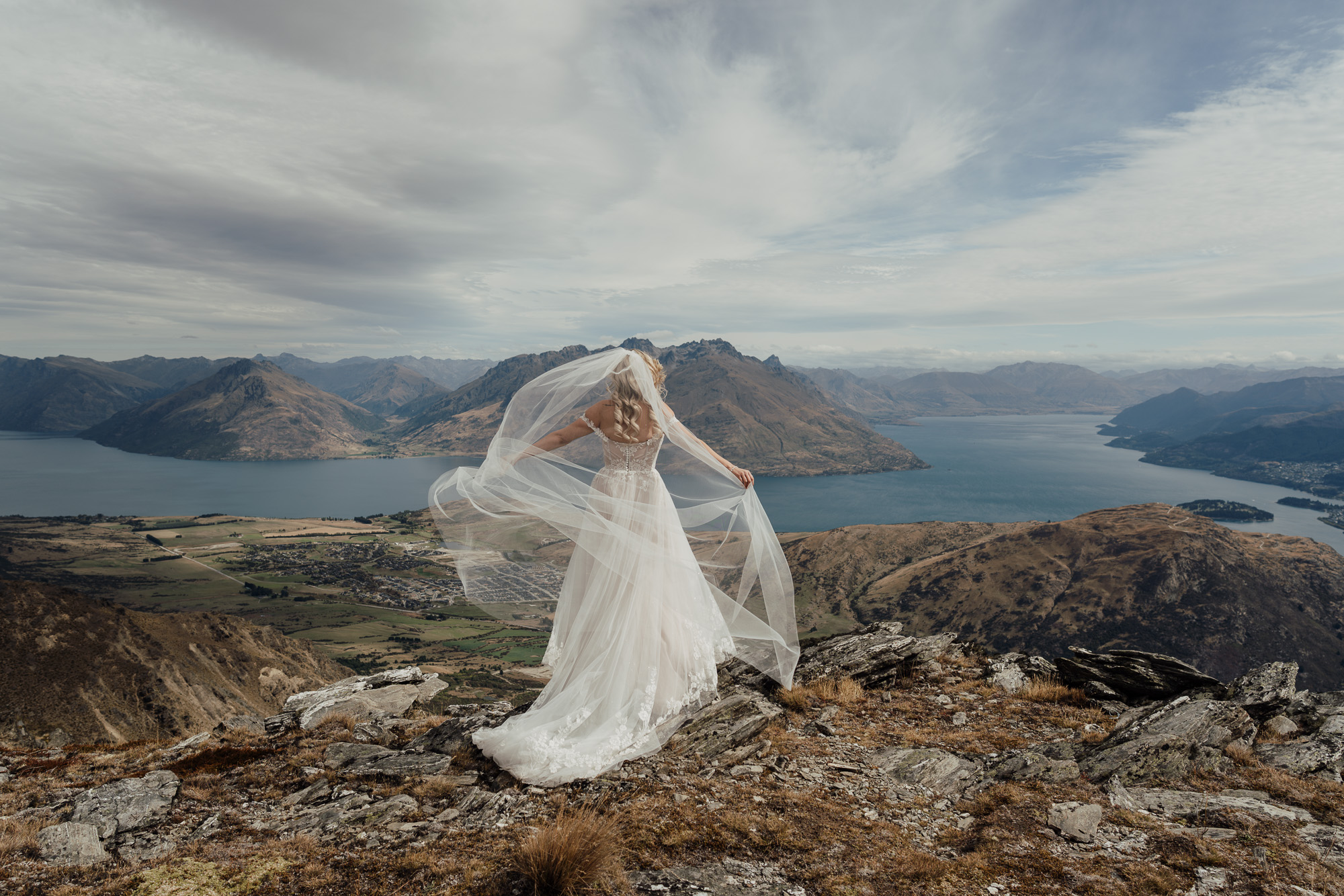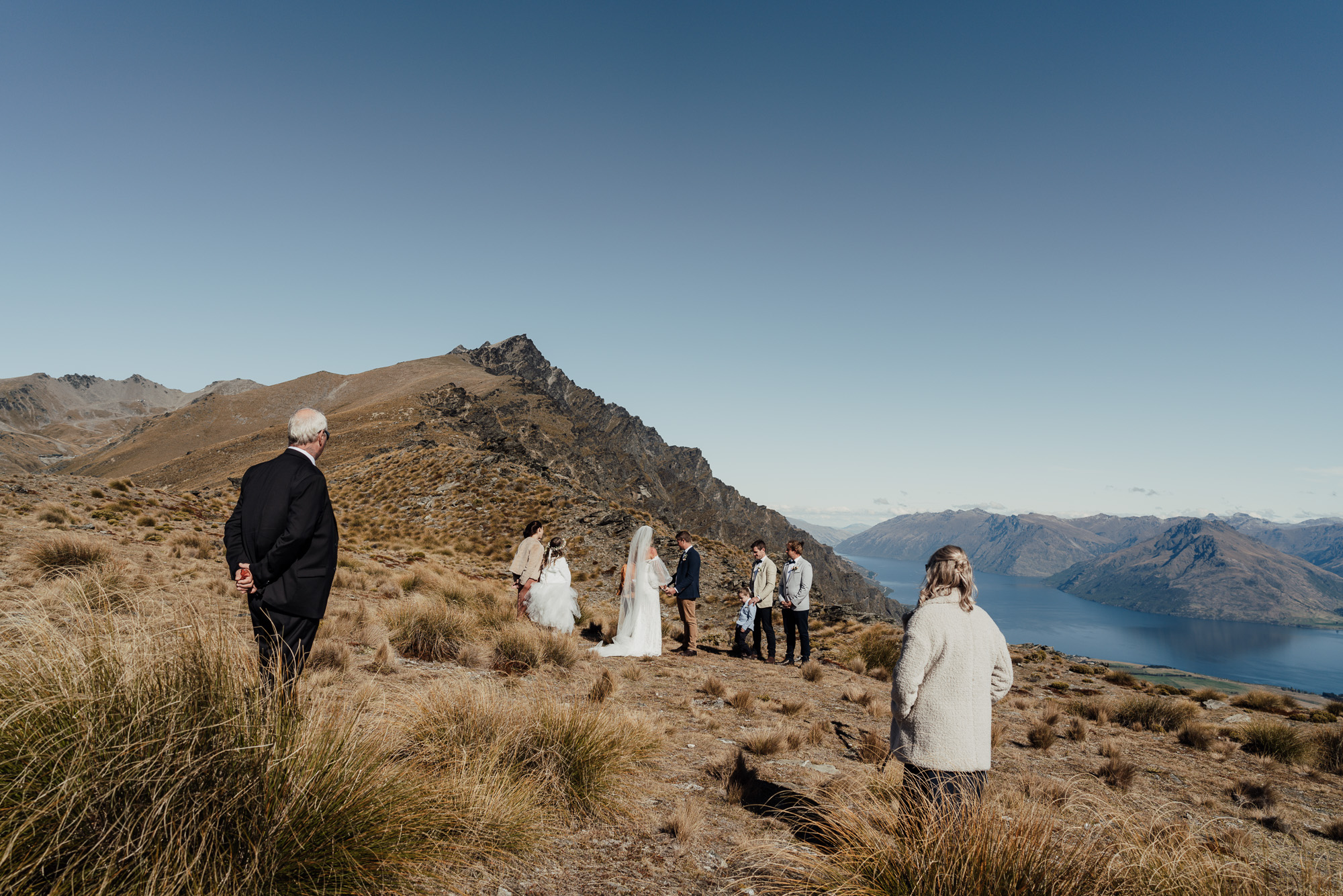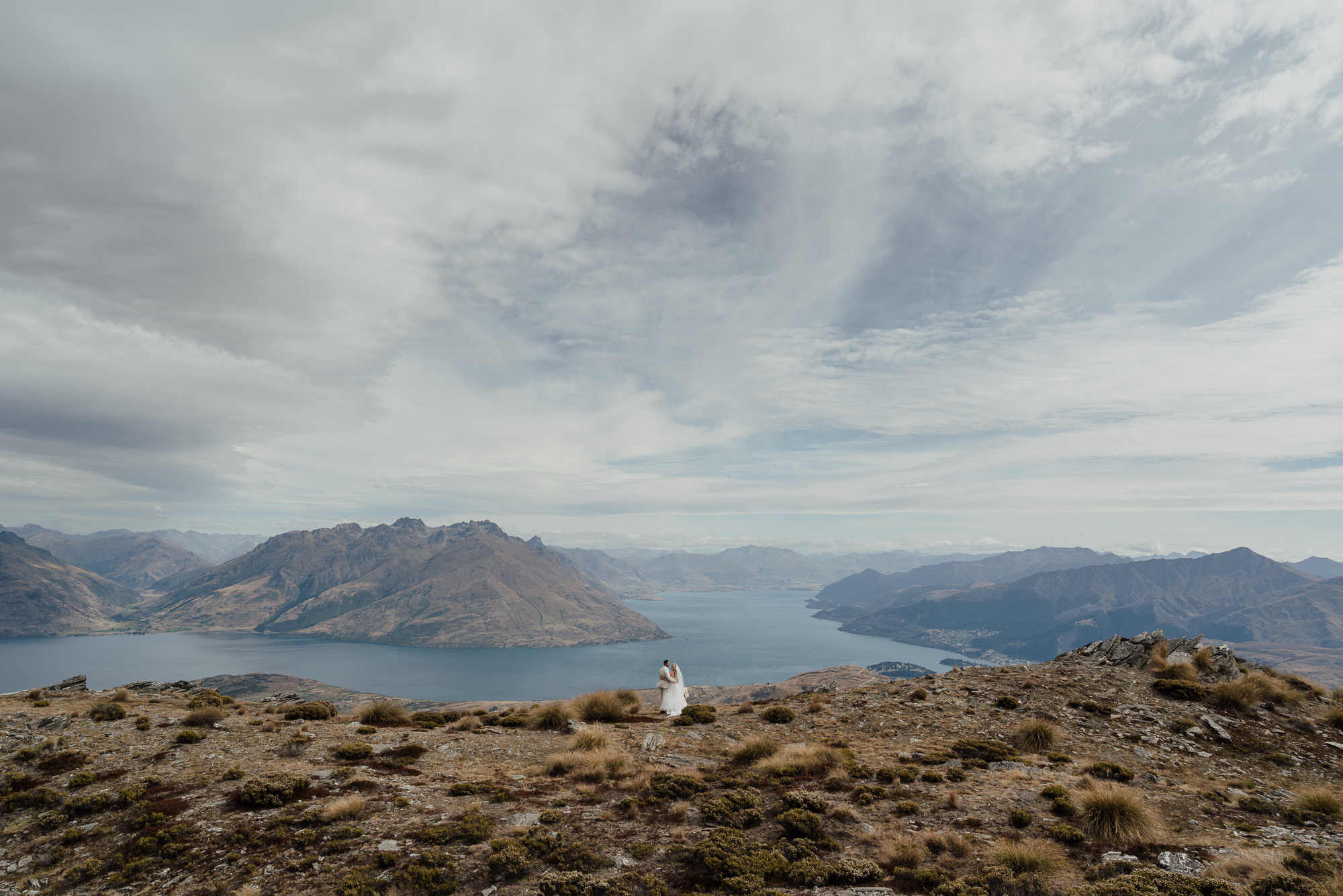 The helicopter lands just below the ridge line of The Remarkables Spur at just under 5000ft. Views are back across Lake Wakatipu and over to Cecil Peak. The area is relatively easy to get around with grassy terrain and some rocky outcrops. The ridge line creates a dramatic element in photos with Lake Wakatipu and surrounding mountains as a stunning backdrop.
