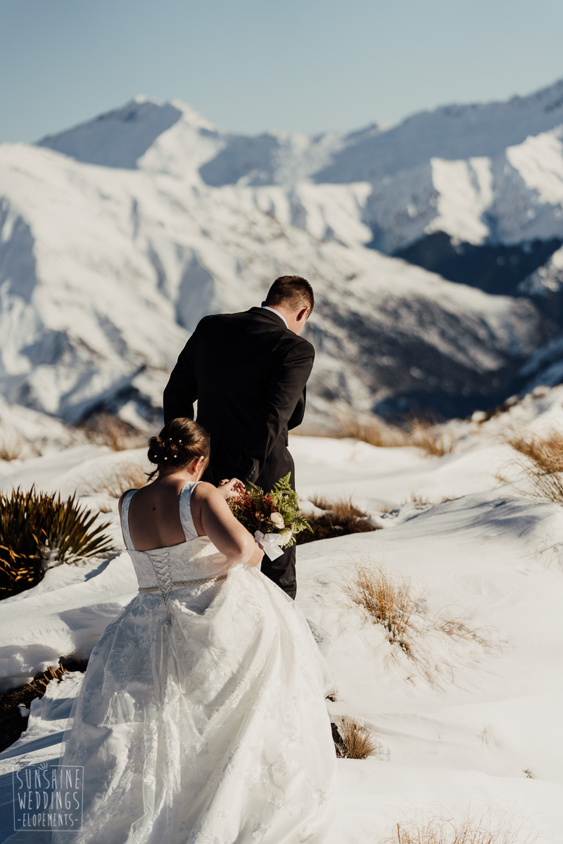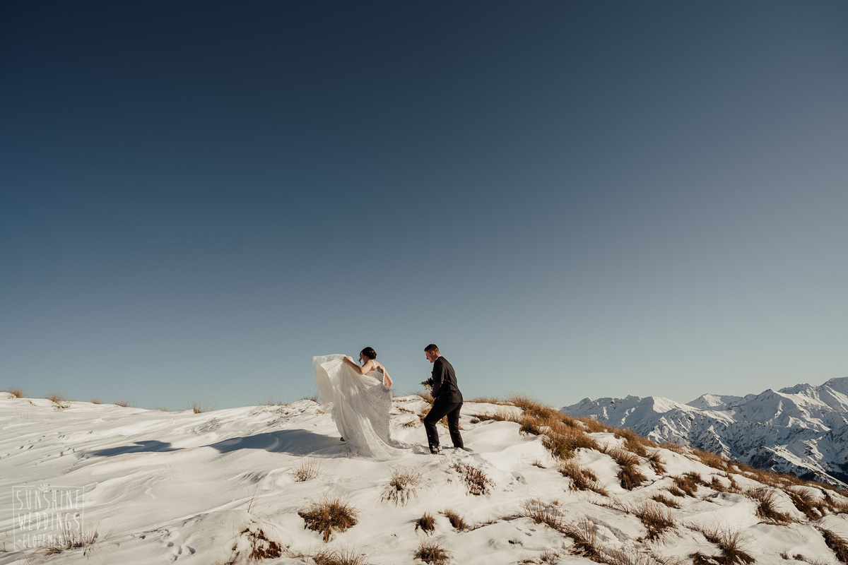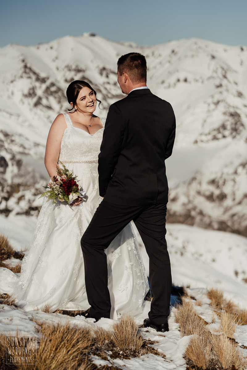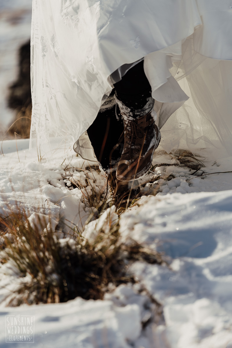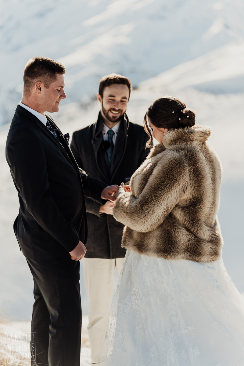 Brynee and Alex not only got married at one of our favourite locations, they also spilled some pretty big news! The flew with Brynee’s dad to Vanguard Peak for a ceremony surrounded by snow, snow and more snow! Before they flew over from Australia they had arranged for a smoke cannon to be sent to us. Scott took it along for a special gender reveal moment for Brynee to find out the sex of their new baby. It’s a boy!