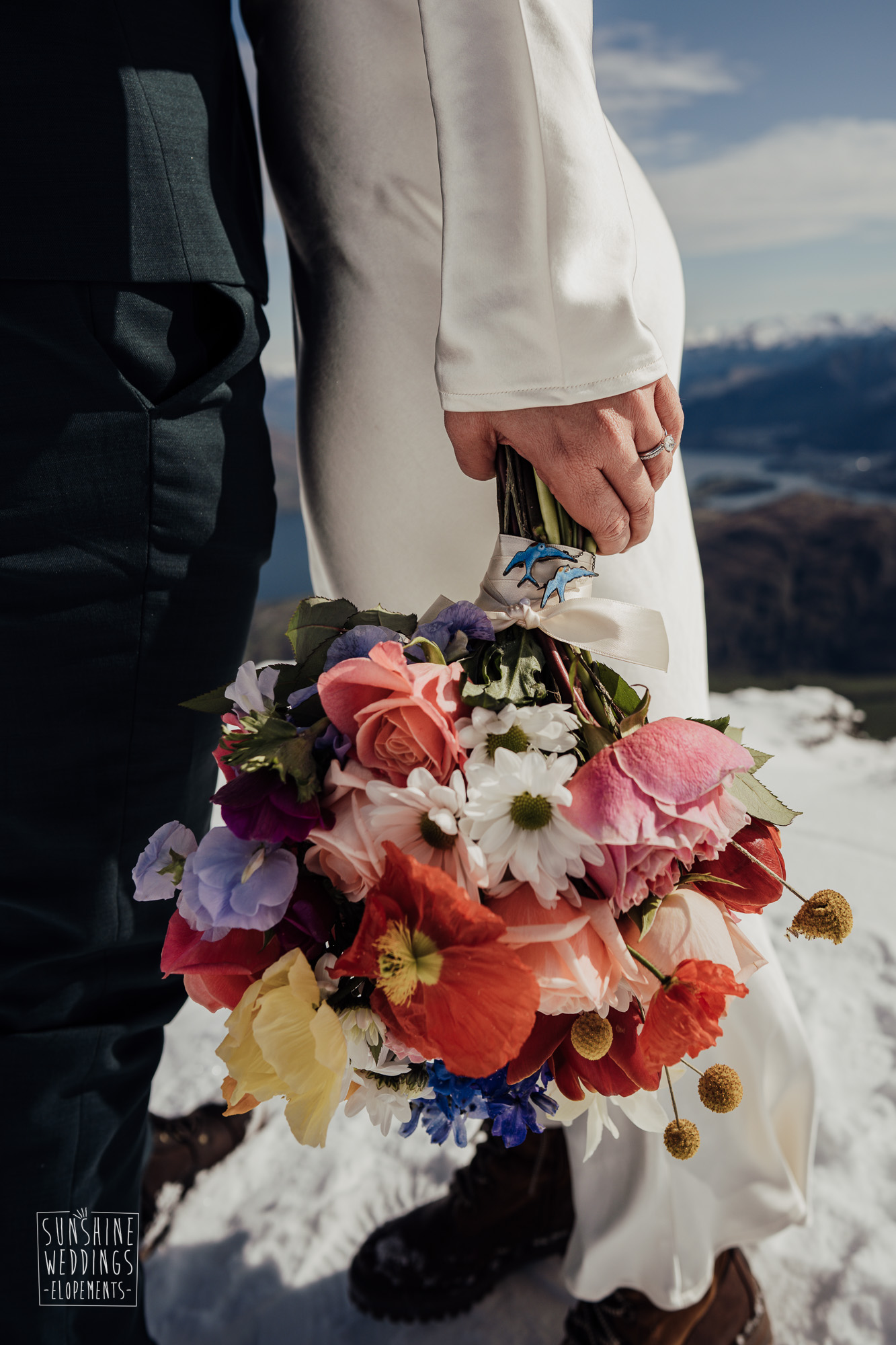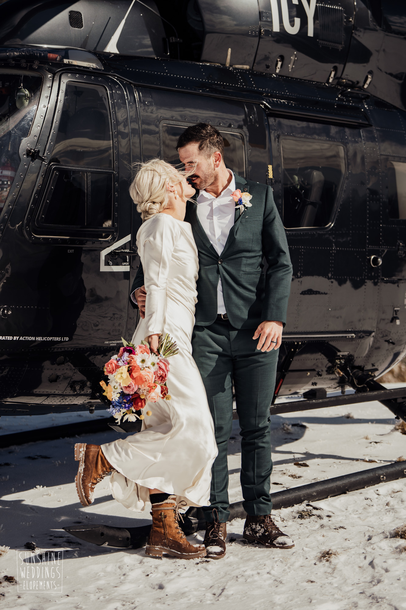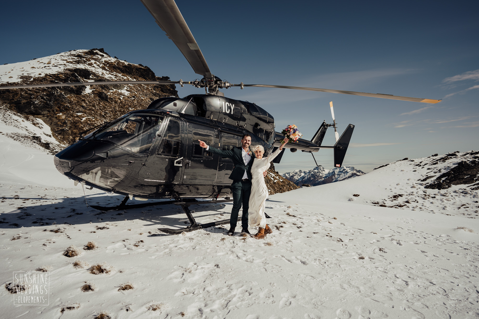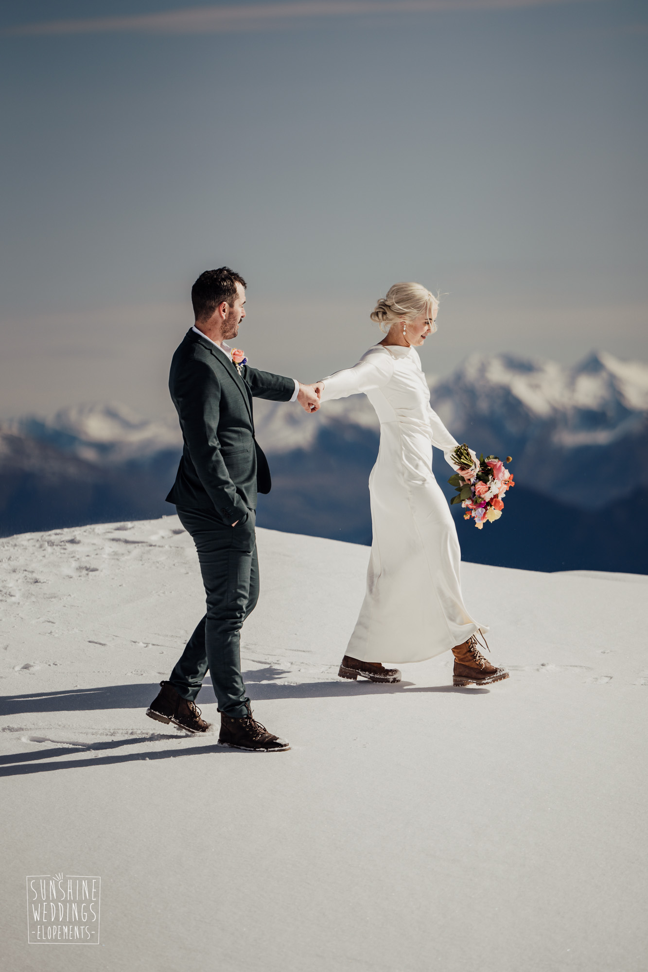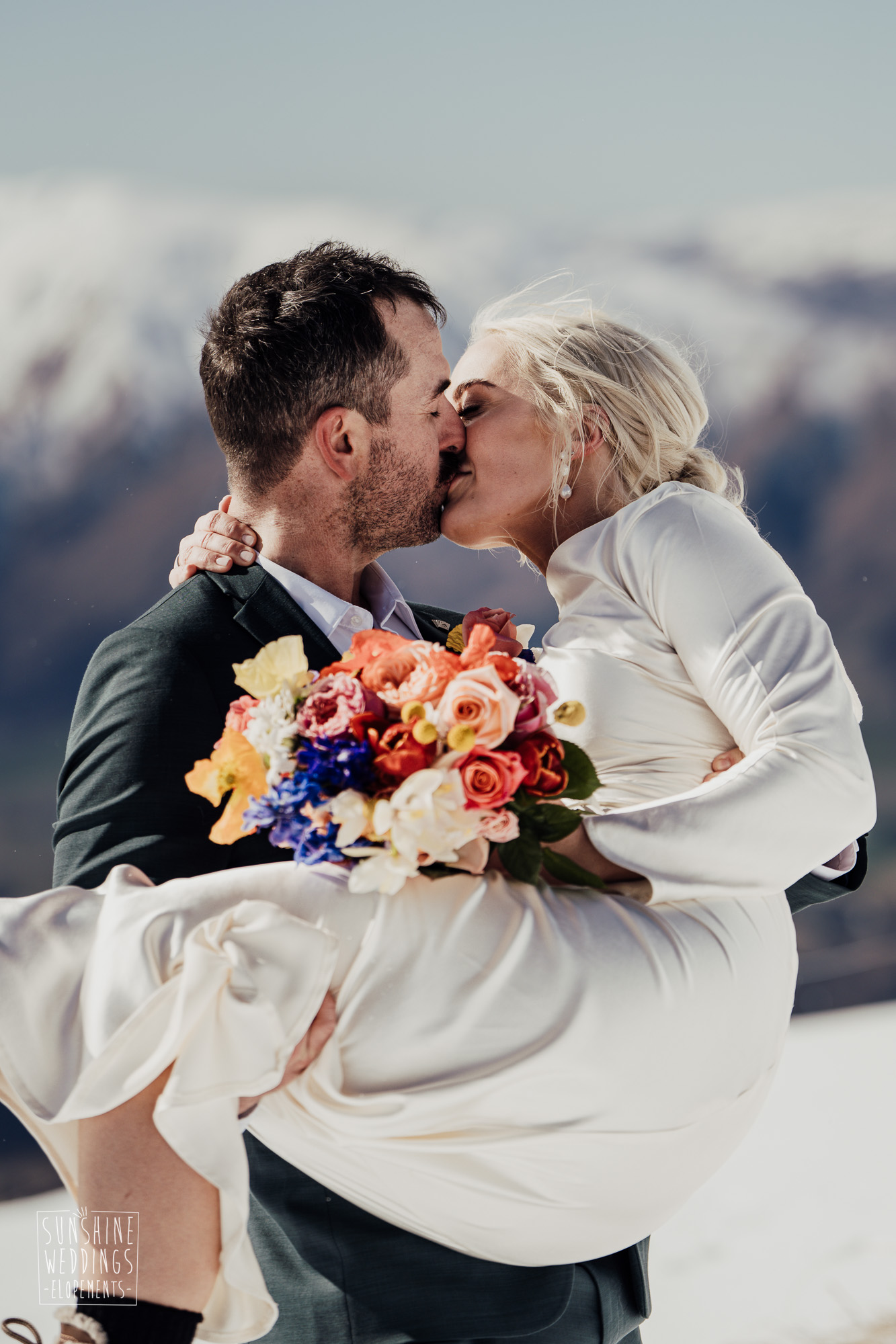 This Queenstown winter elopement had it all. They landed on a lesser known spot on The Remarkables for something a little different and high altitude views right across Lake Wakatipu and down to the township. Despite coming from North Queensland and more used to t-shirt temperatures than needing layers of thermals, these two toughed out the cold in elegant style. And it was bitterly cold with wind chill whipping straight from Antarctica. Even hardened photographer Scott and celebrant Phillipa had a shiver going on.